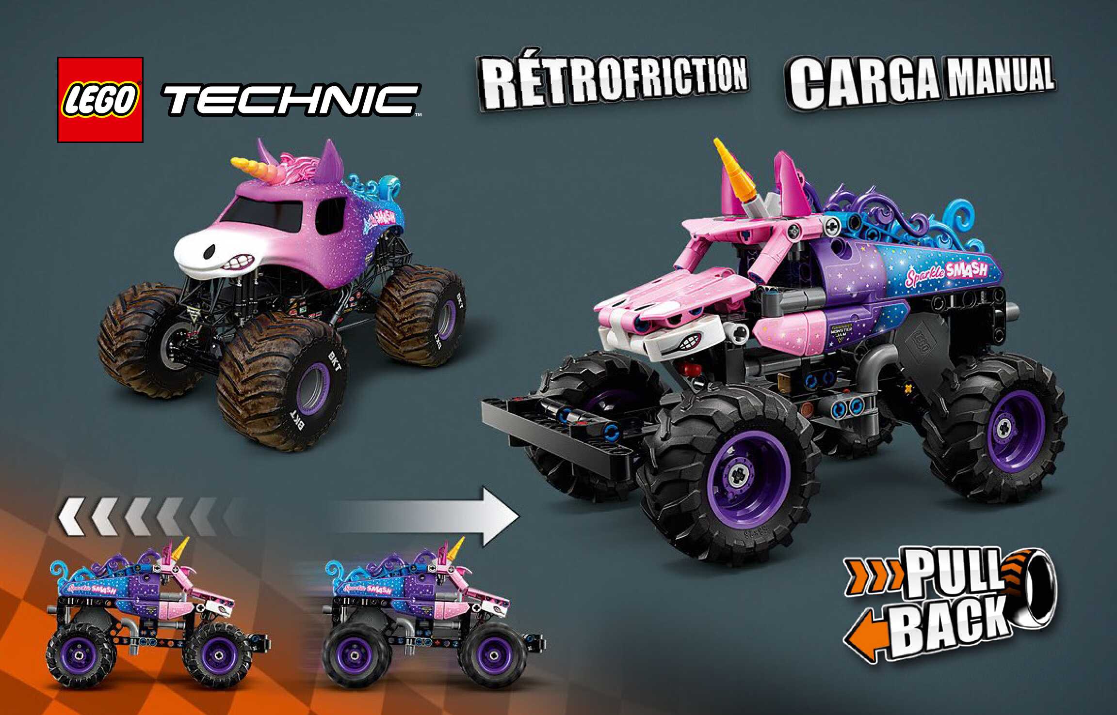 This page shares information about LEGO Monster Jam™ Sparkle Smash™ Pull-Back manual, LEGO 42220 PDF instructions, LEGO Monster Jam™ Sparkle Smash™ Pull-Back building guide online, How to build Monster Jam™ Sparkle Smash™ Pull-Back LEGO.
