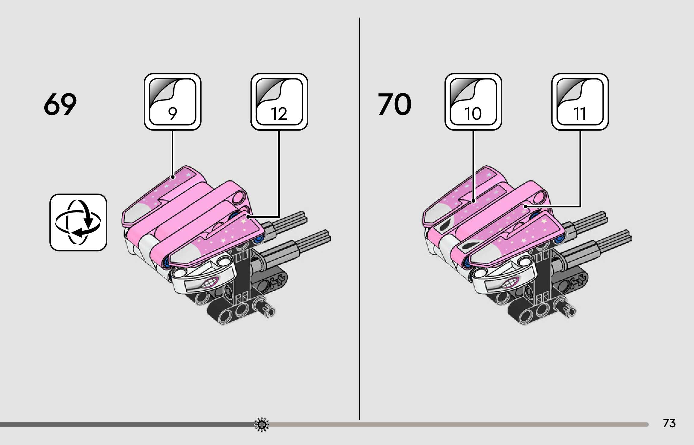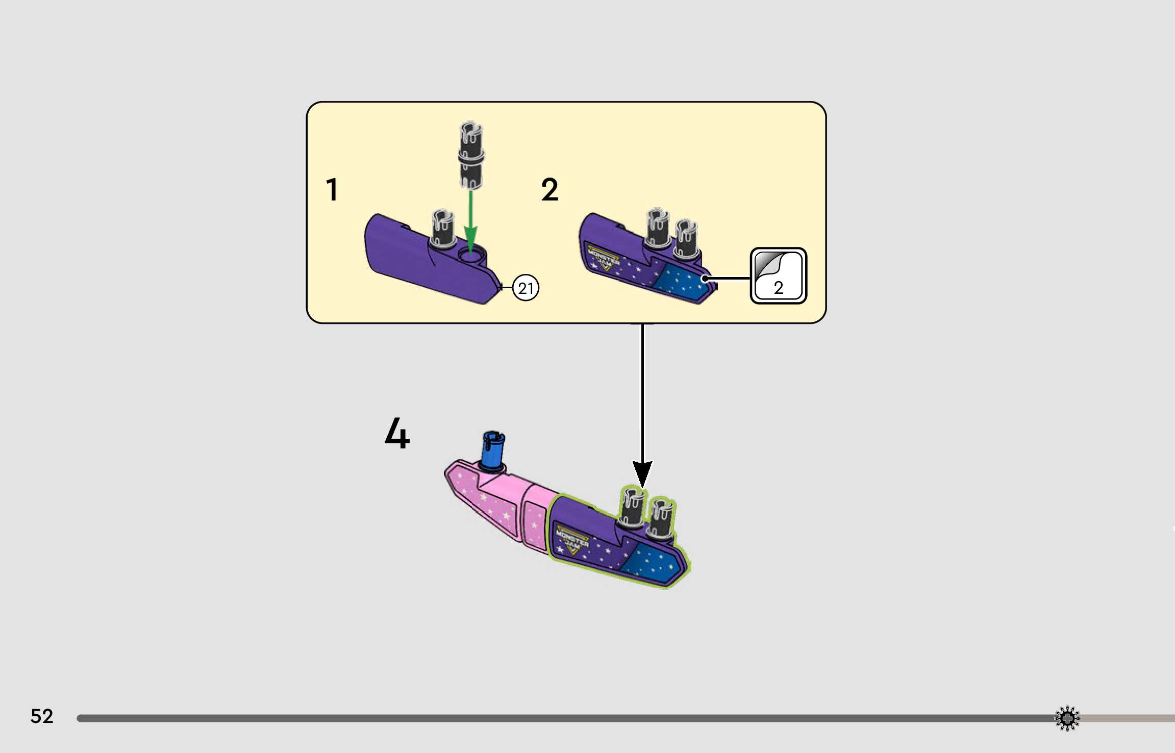 The assembly guide is prepared in a very understandable way for children and adult LEGO enthusiasts. A total of 108 picture galleries are shown, explaining the step-by-step construction stages for 1 different structures.