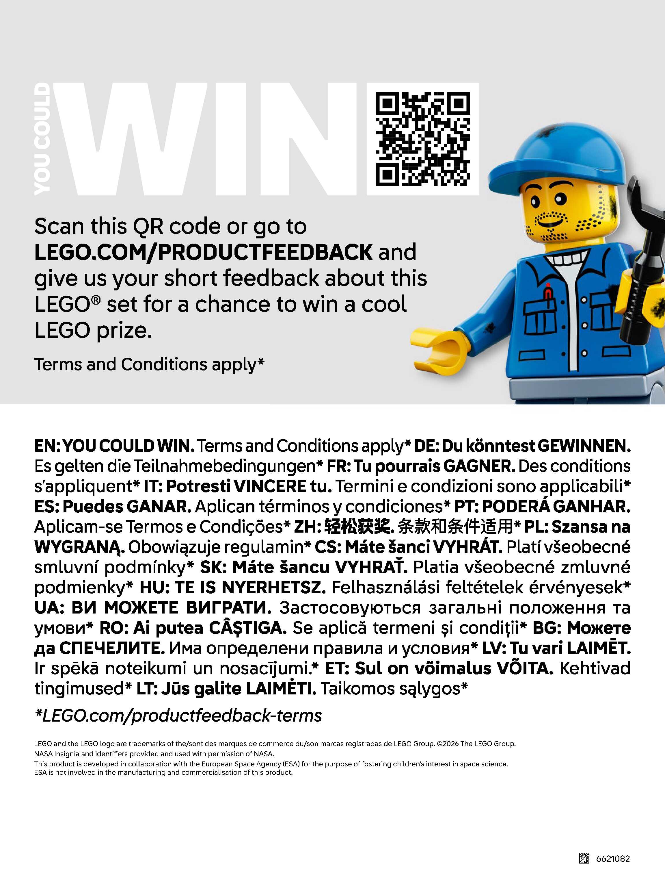 On this page you can find the original construction manual for the LEGO 42221 set. With the assembly manual you can easily learn how to build the NASA Artemis Space Launch System Rocket step by step. The set was released in 2026.