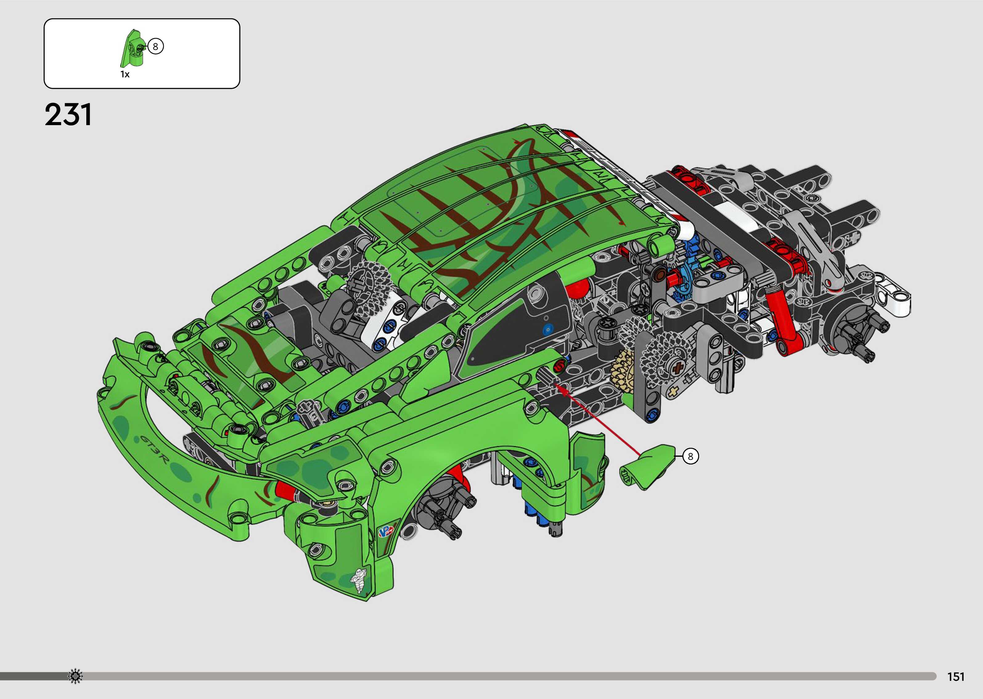 On this page you can find the original construction manual for the LEGO 42224 set. With the assembly manual you can easily learn how to build the Porsche 911 GT3 R REXY AO Racing Car step by step. The set was released in 2026.