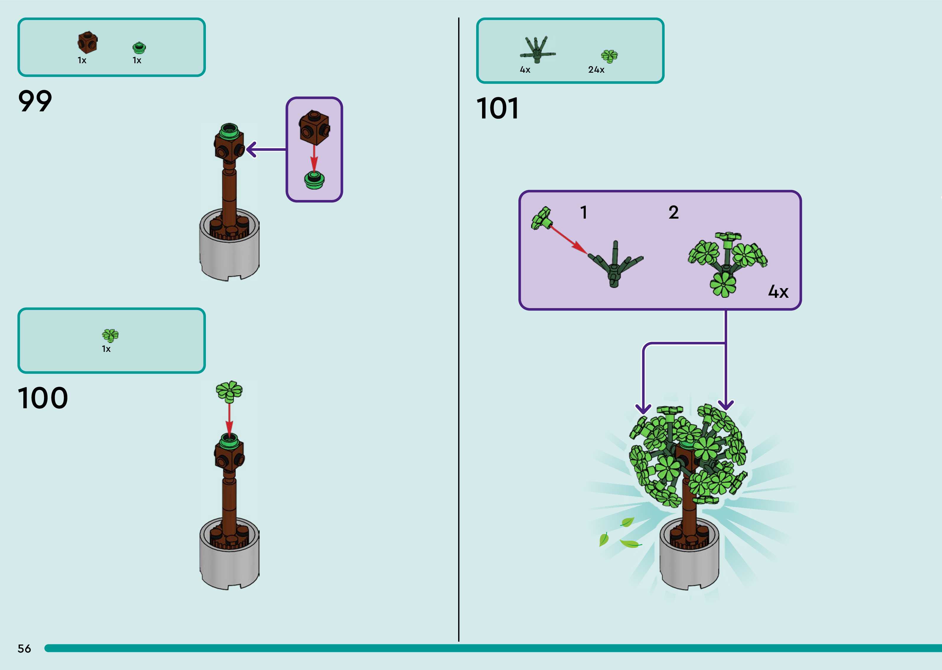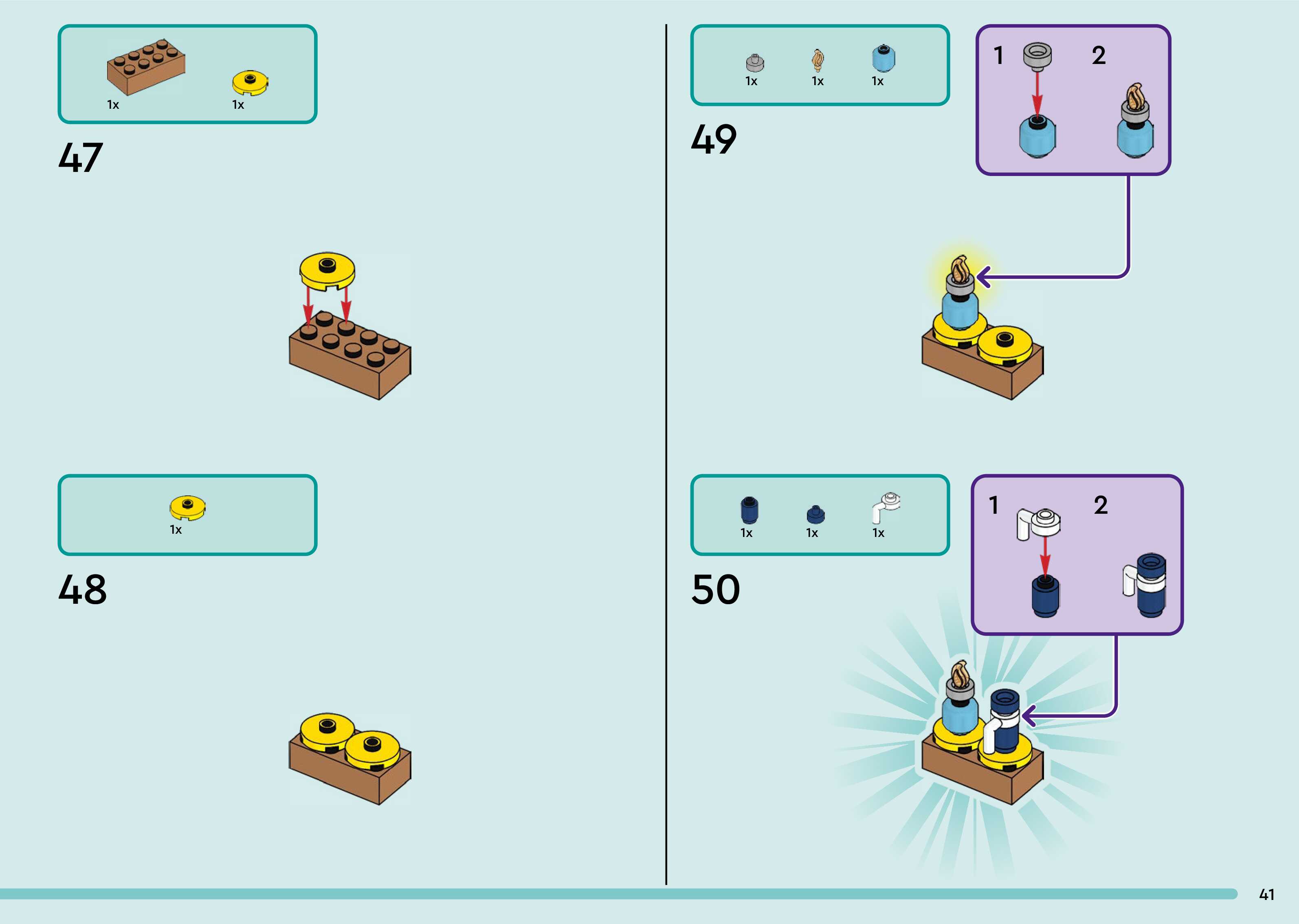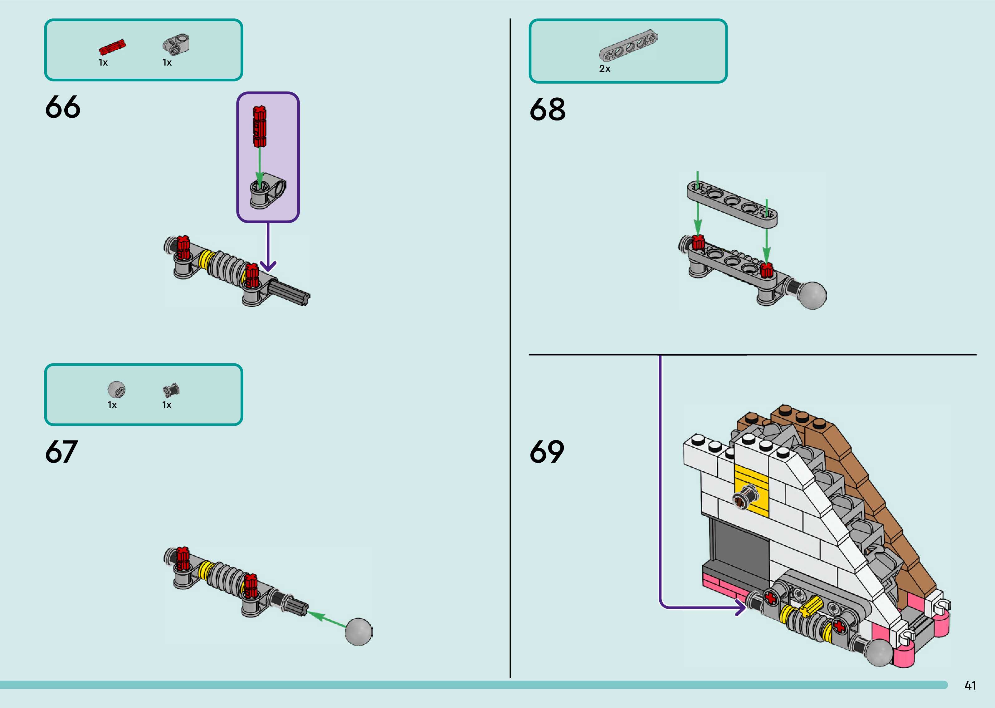 The assembly guide is prepared in a very understandable way for children and adult LEGO enthusiasts. A total of 316 picture galleries are shown, explaining the step-by-step construction stages for 3 different structures.