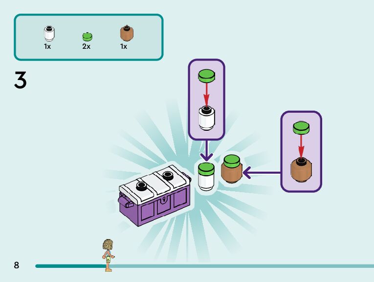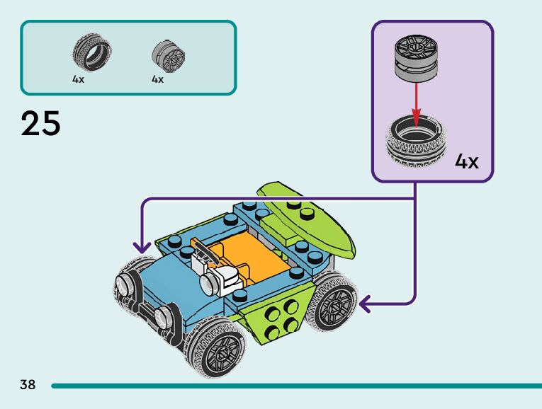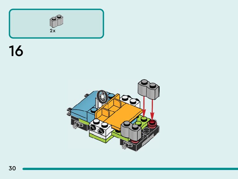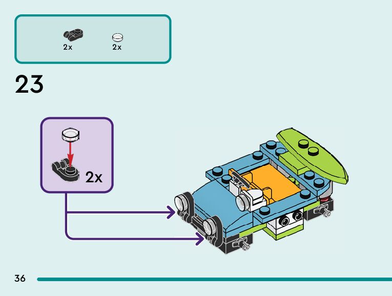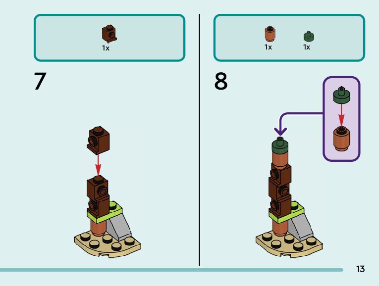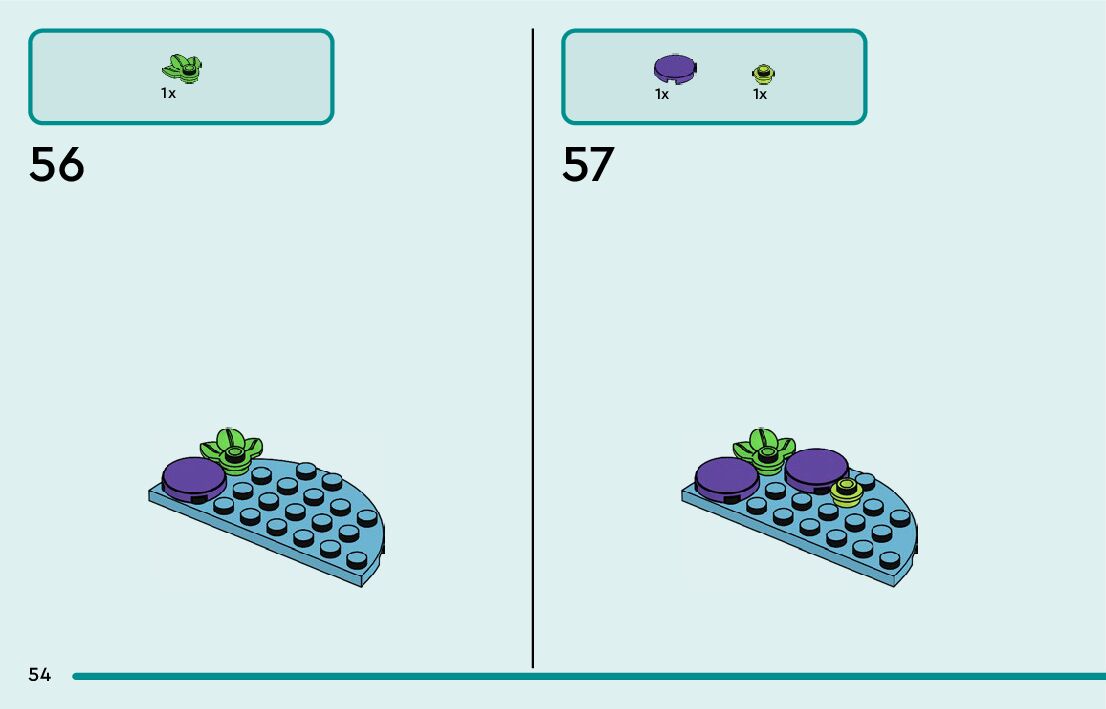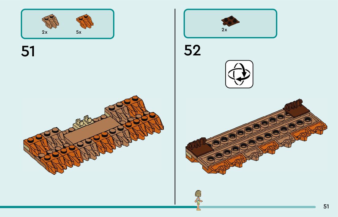 The assembly guide is prepared in a very understandable way for children and adult LEGO enthusiasts. A total of 108 picture galleries are shown, explaining the step-by-step construction stages for 2 different structures.