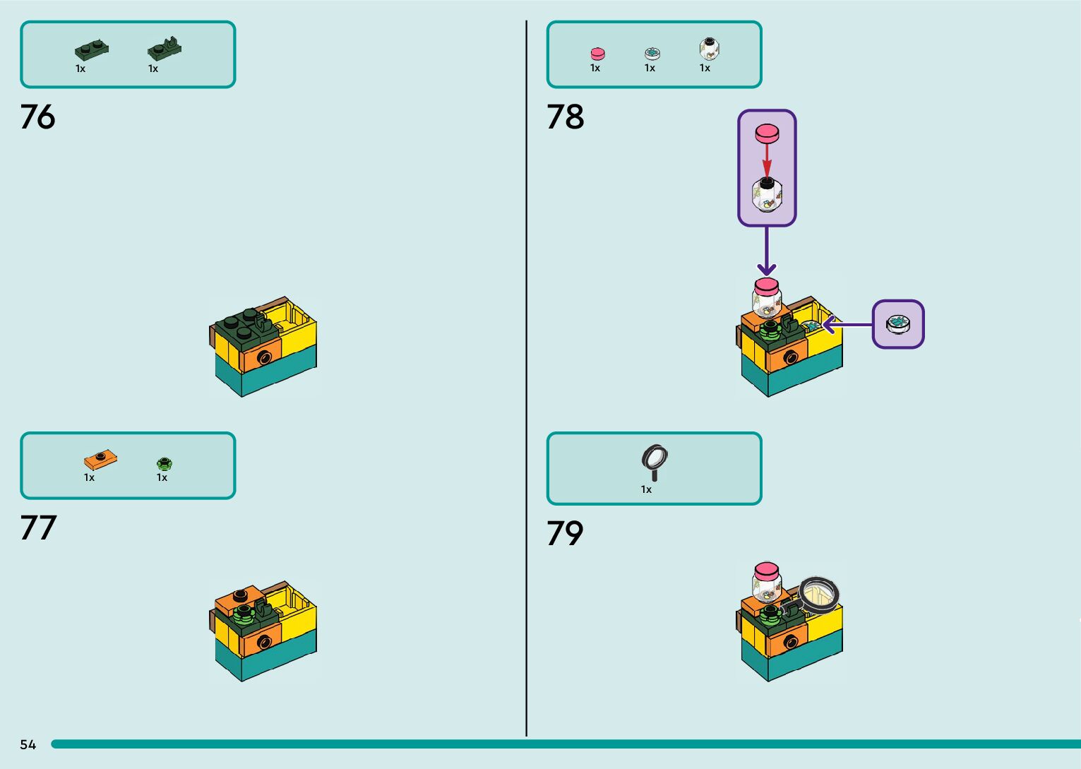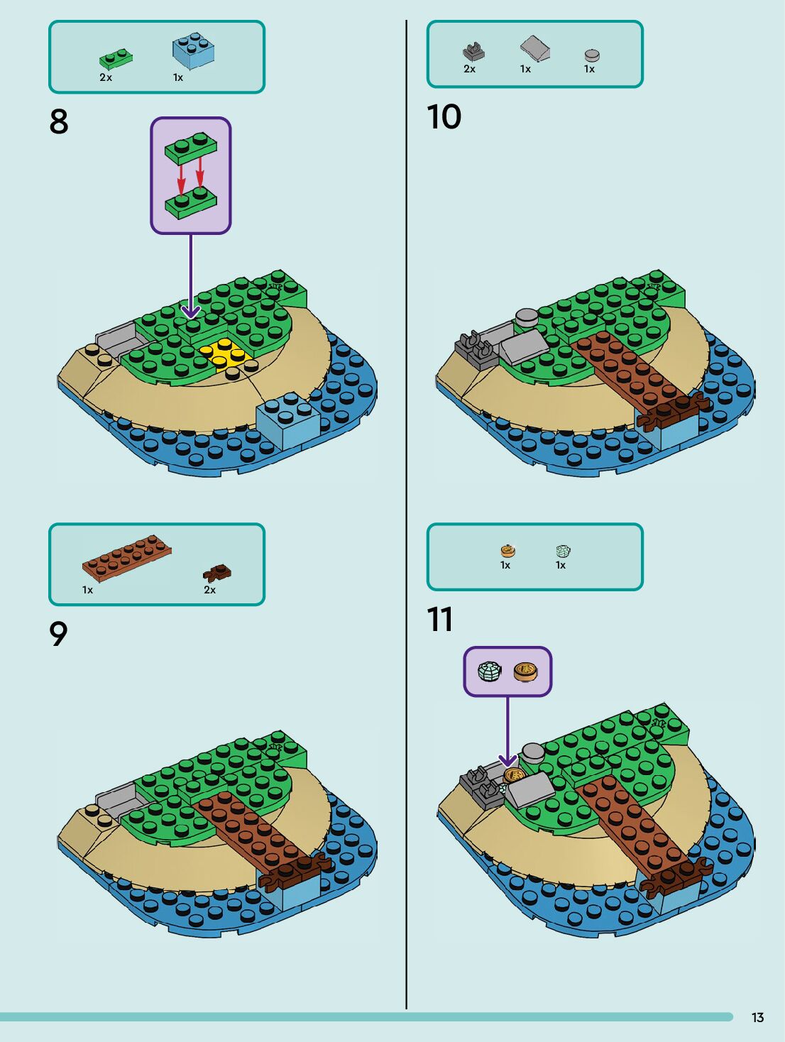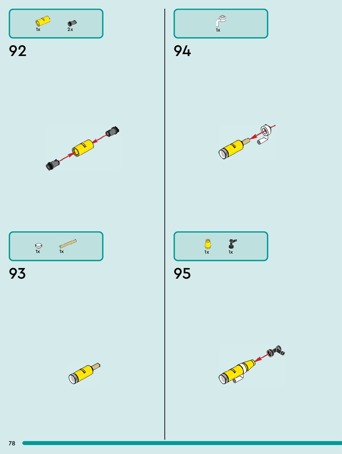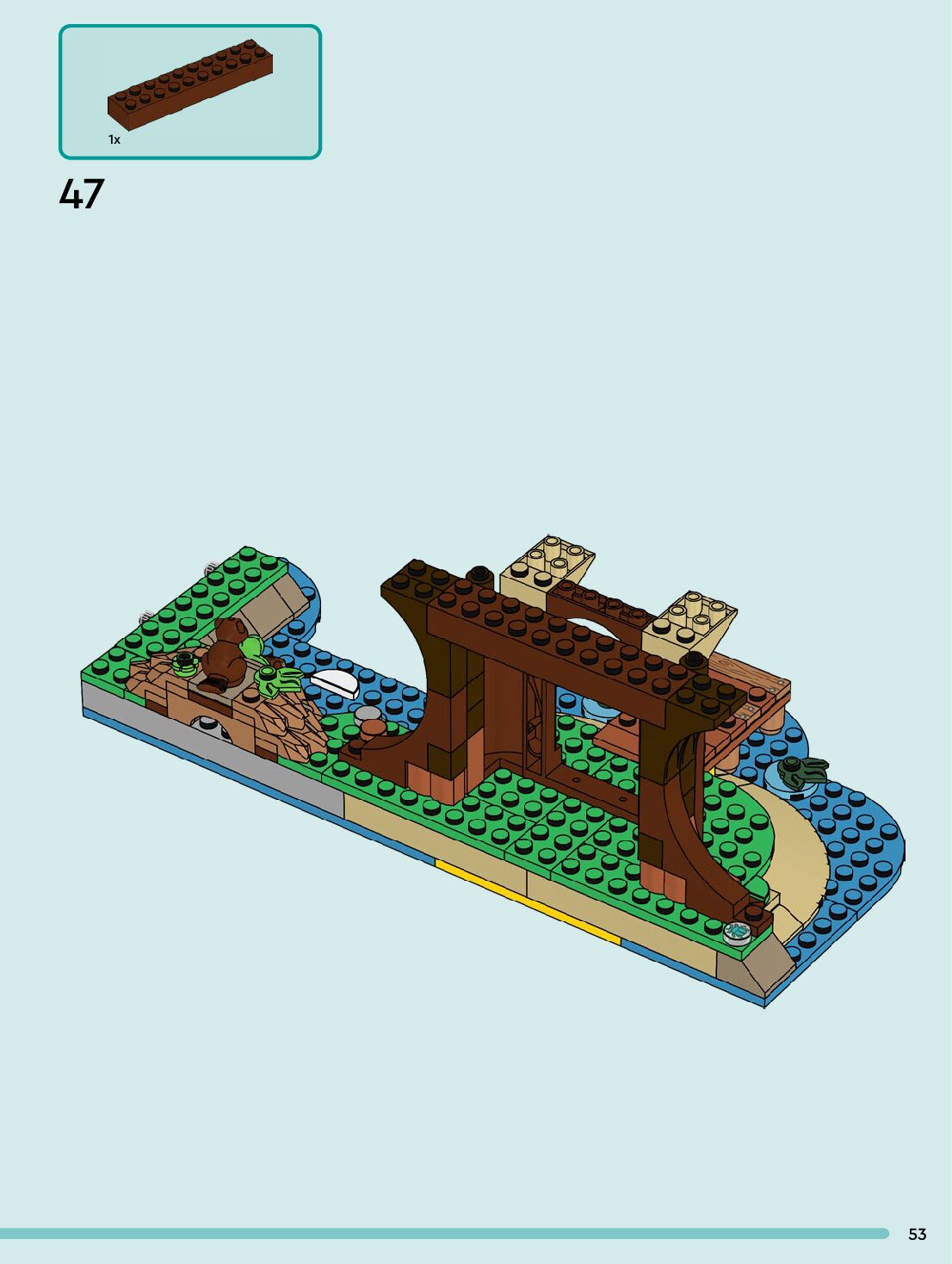 The assembly guide is prepared in a very understandable way for children and adult LEGO enthusiasts. A total of 328 picture galleries are shown, explaining the step-by-step construction stages for 3 different structures.