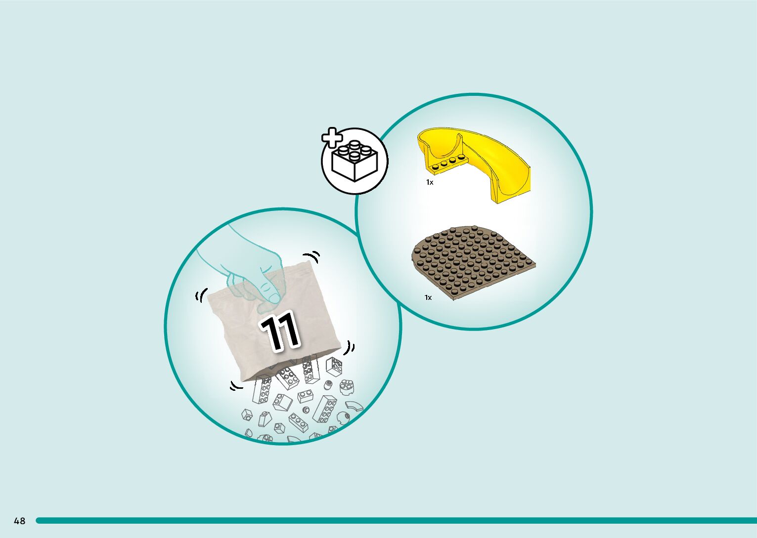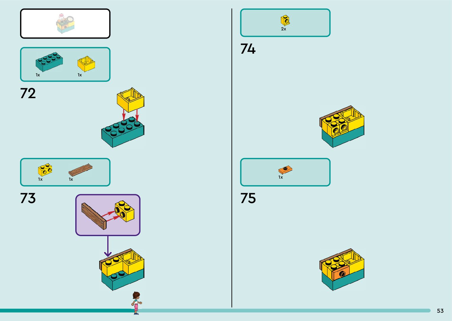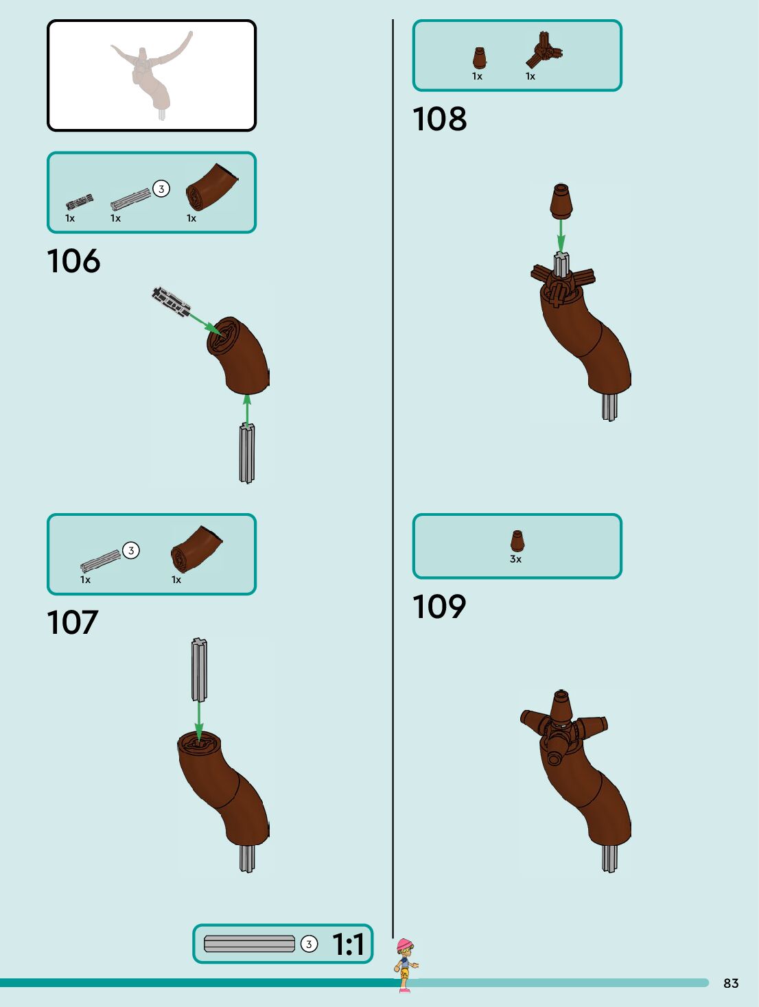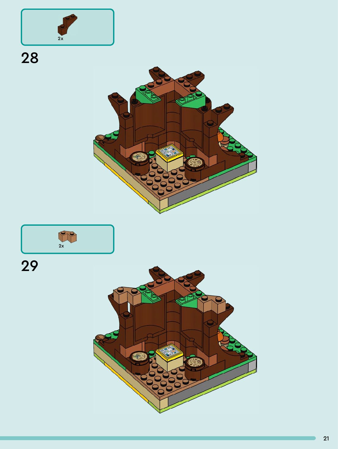 The assembly guide is prepared in a very understandable way for children and adult LEGO enthusiasts. A total of 328 picture galleries are shown, explaining the step-by-step construction stages for 3 different structures.