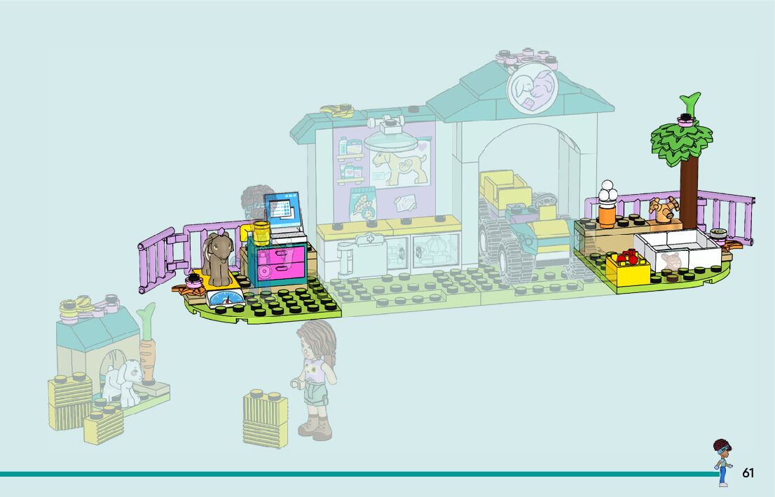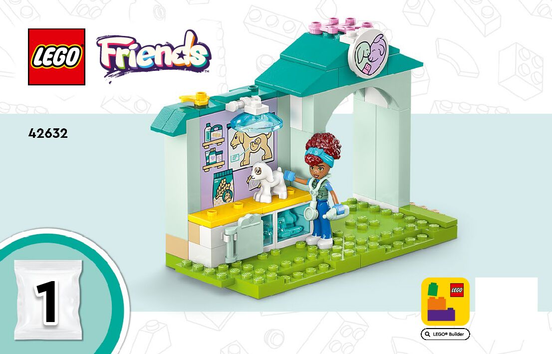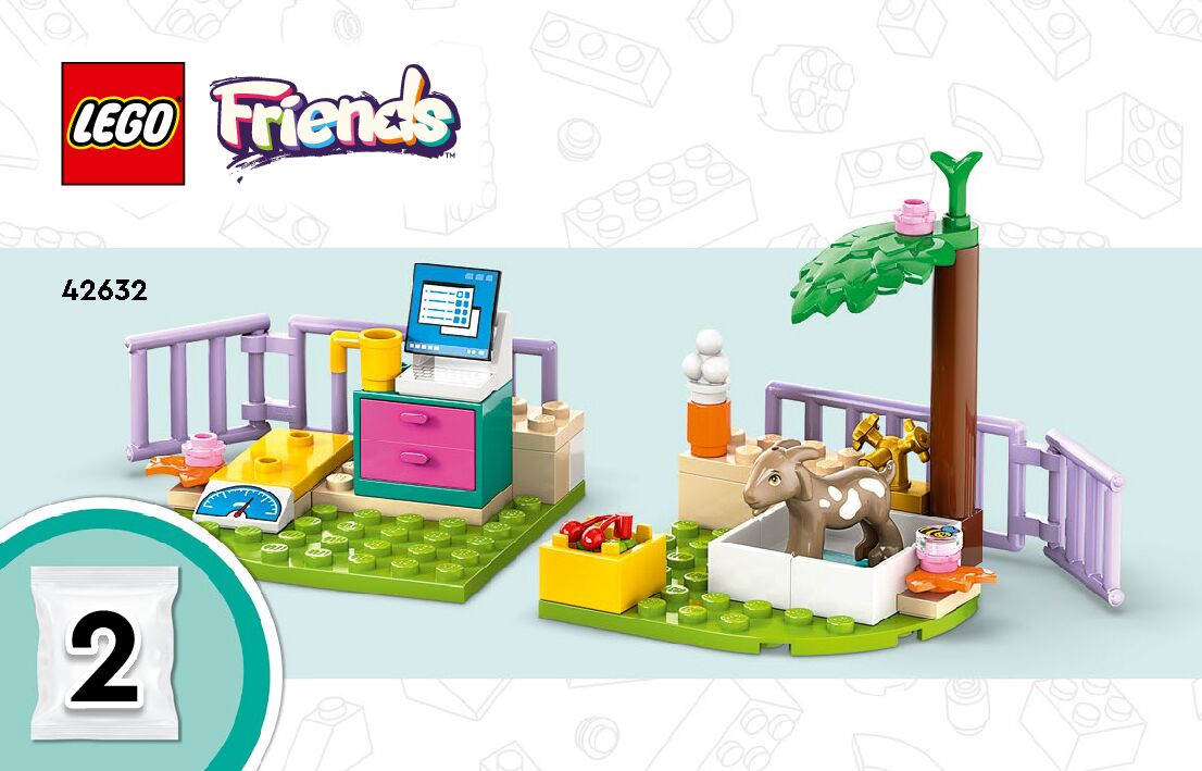 On this page you can find the original construction manual for the LEGO 42632 set. With the assembly manual you can easily learn how to build the 42632 Farm Animal Vet Clinic step by step. The set was released in 2024.