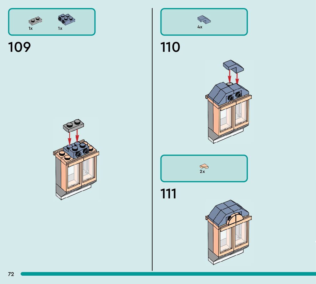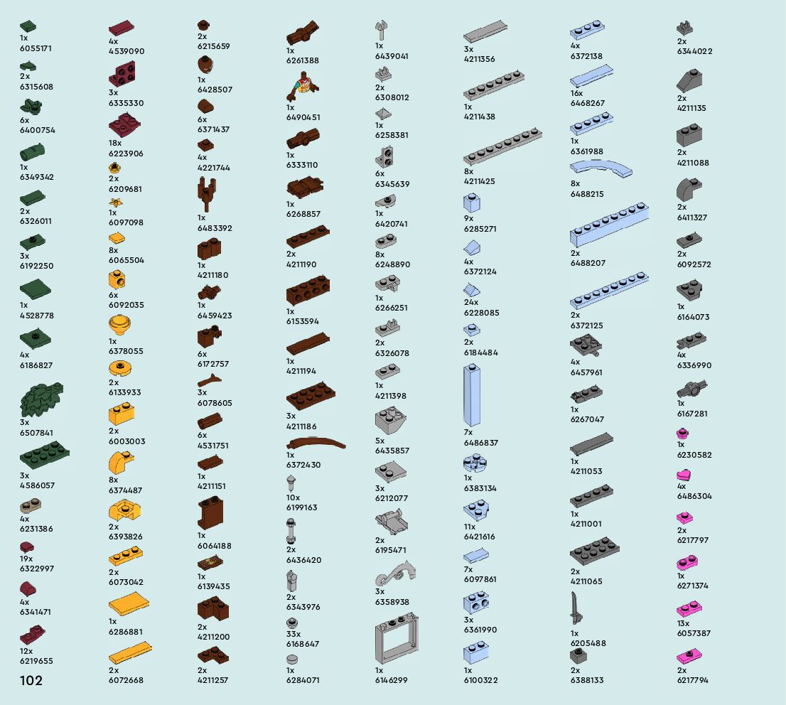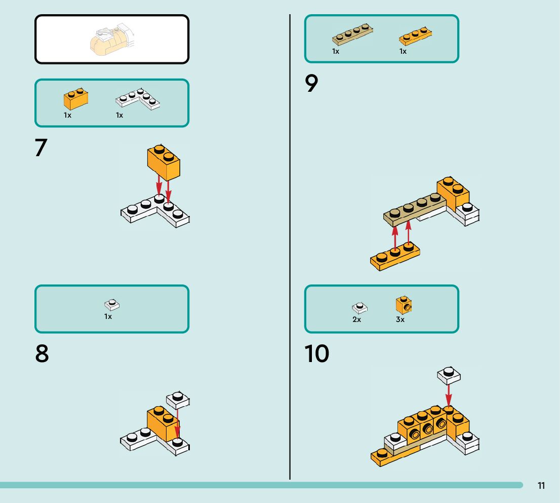 The assembly guide is prepared in a very understandable way for children and adult LEGO enthusiasts. A total of 316 picture galleries are shown, explaining the step-by-step construction stages for 3 different structures.