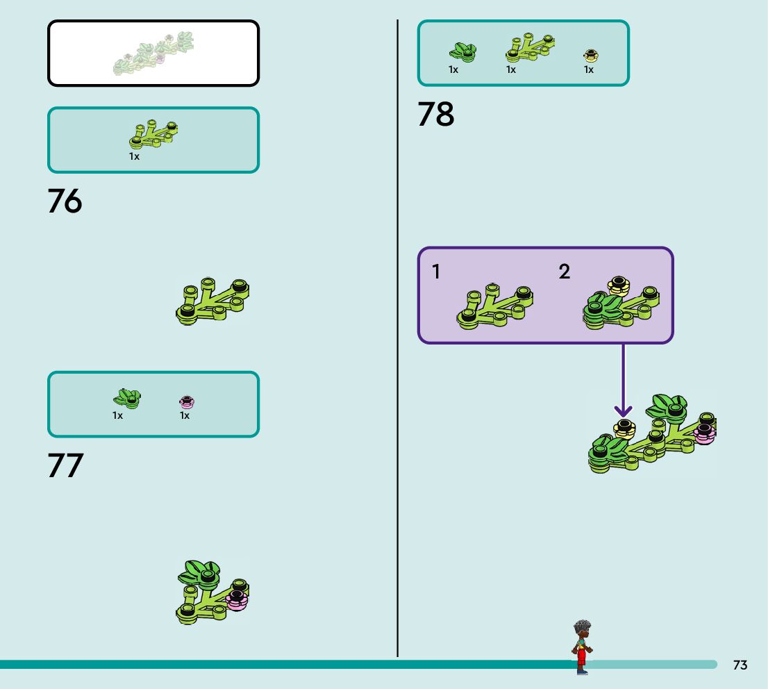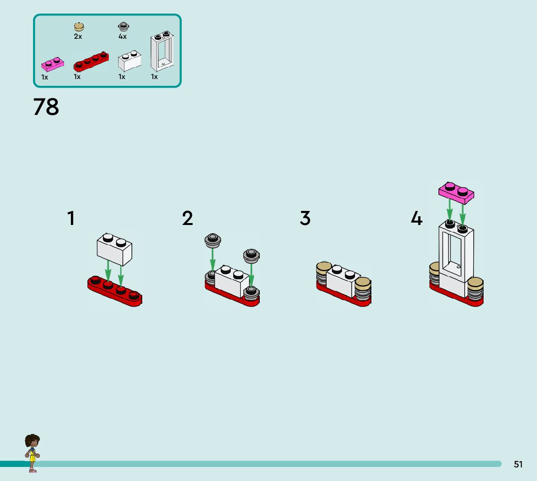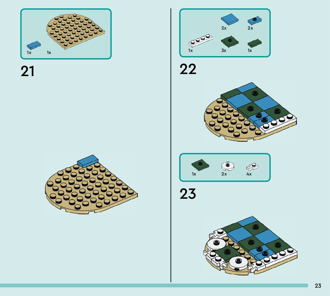The assembly guide is prepared in a very understandable way for children and adult LEGO enthusiasts. A total of 316 picture galleries are shown, explaining the step-by-step construction stages for 3 different structures.