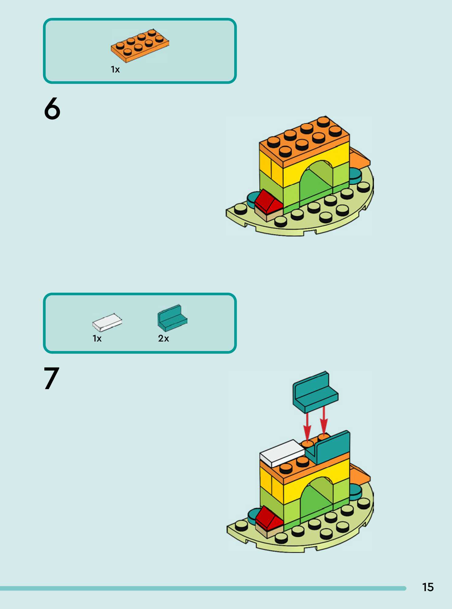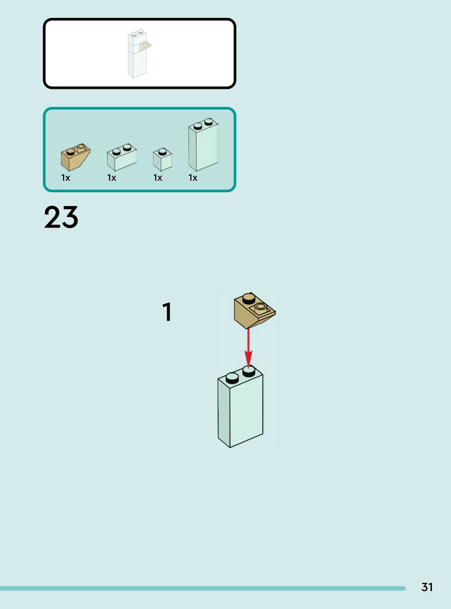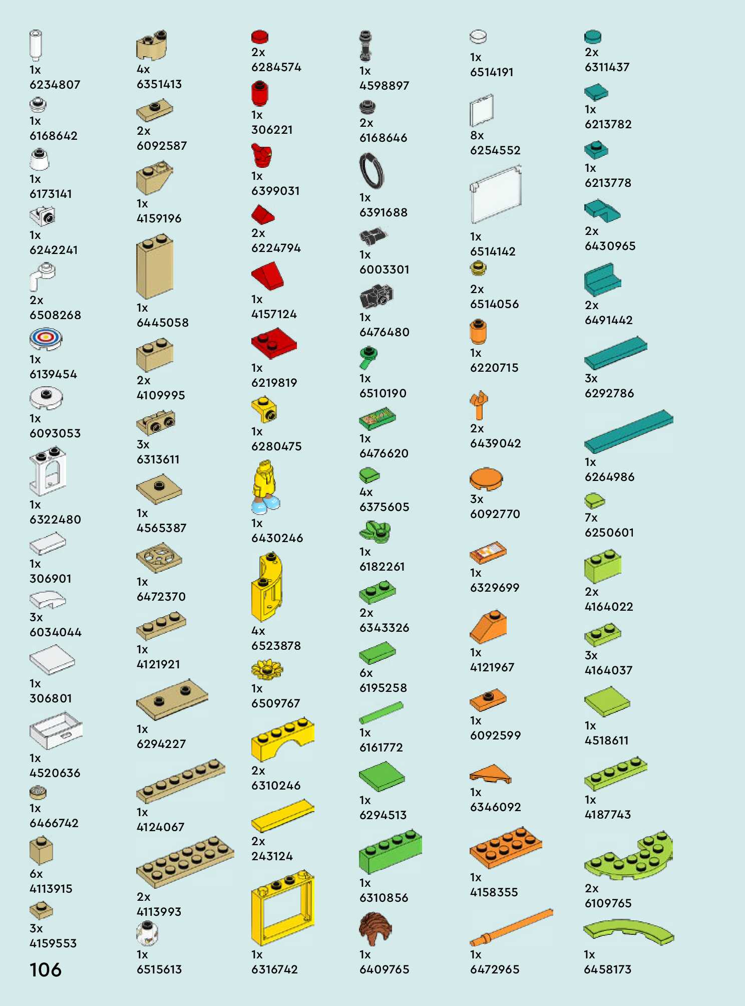 The assembly guide is prepared in a very understandable way for children and adult LEGO enthusiasts. A total of 108 picture galleries are shown, explaining the step-by-step construction stages for 1 different structures.