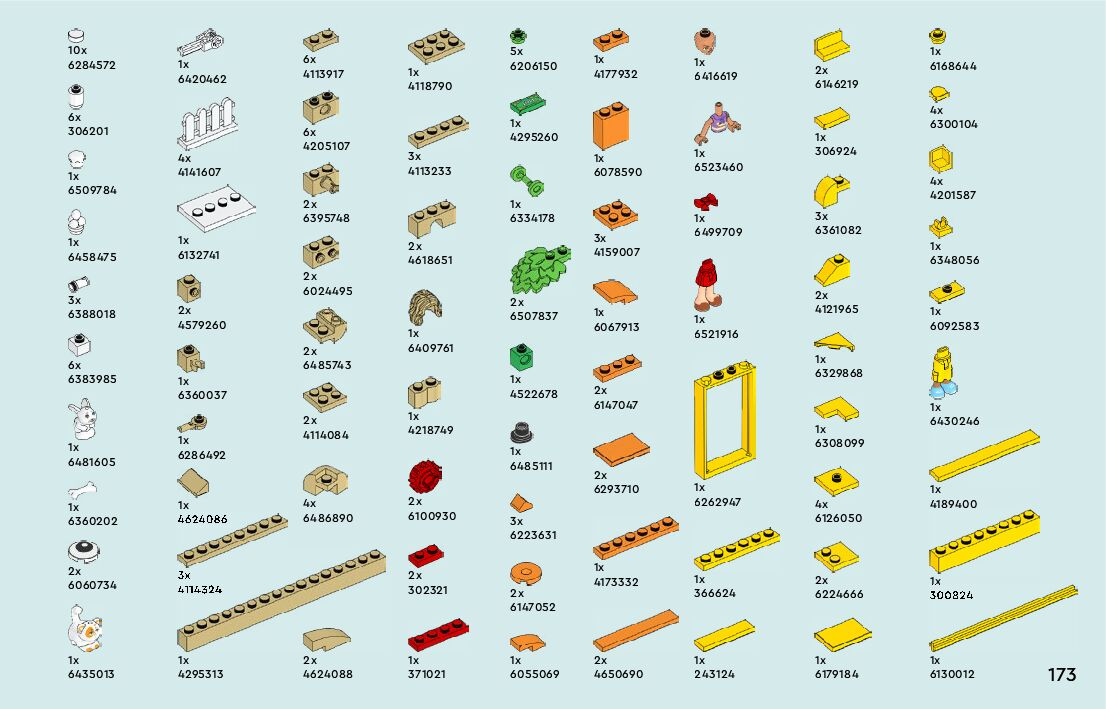 The assembly guide is prepared in a very understandable way for children and adult LEGO enthusiasts. A total of 176 picture galleries are shown, explaining the step-by-step construction stages for 1 different structures.