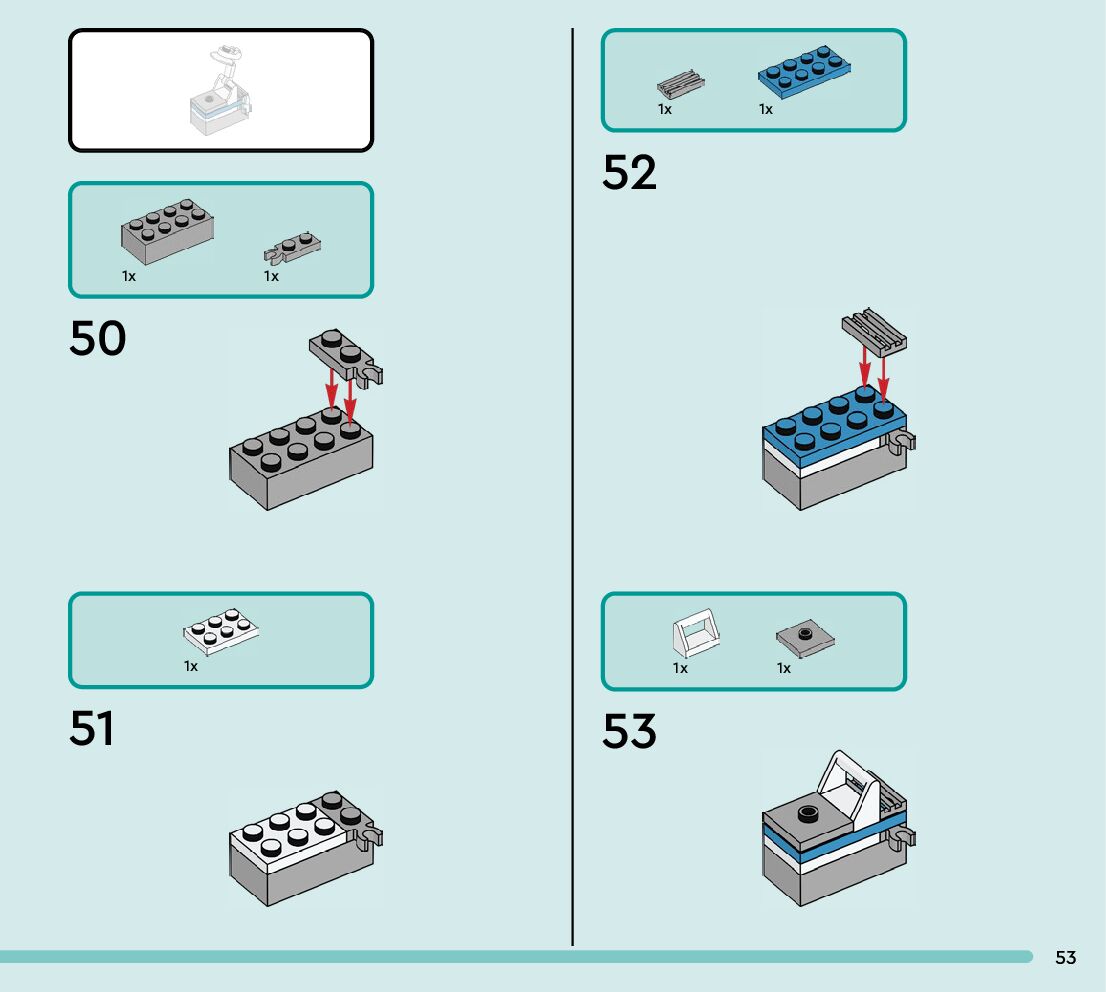 The assembly guide is prepared in a very understandable way for children and adult LEGO enthusiasts. A total of 148 picture galleries are shown, explaining the step-by-step construction stages for 1 different structures.