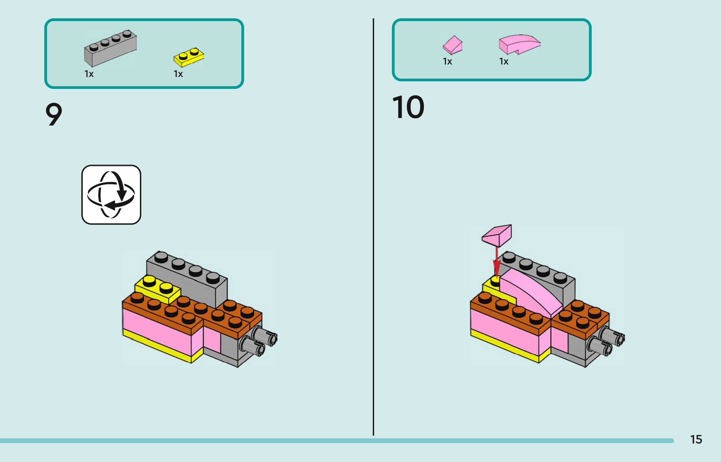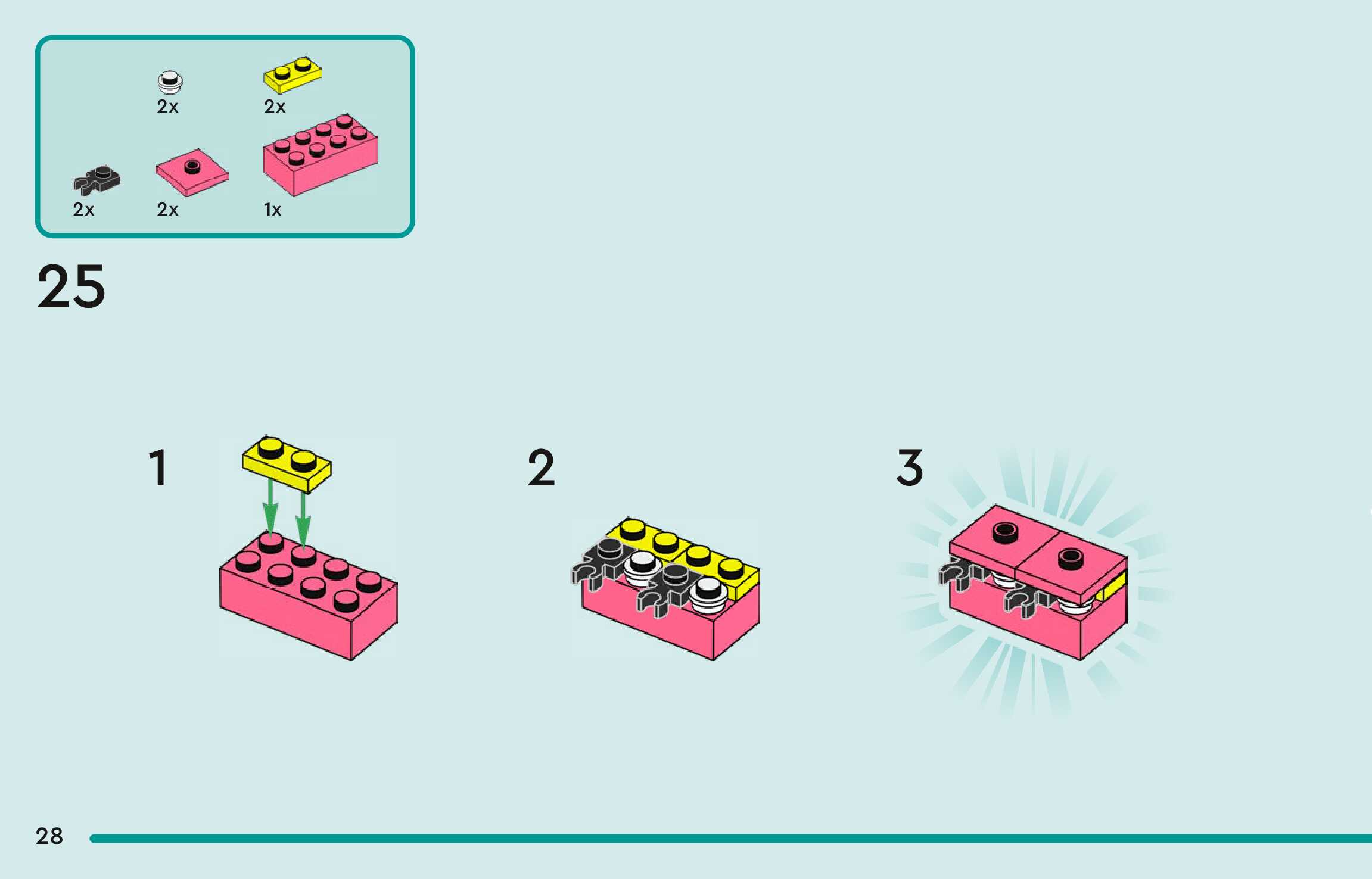 The assembly guide is prepared in a very understandable way for children and adult LEGO enthusiasts. A total of 140 picture galleries are shown, explaining the step-by-step construction stages for 3 different structures.