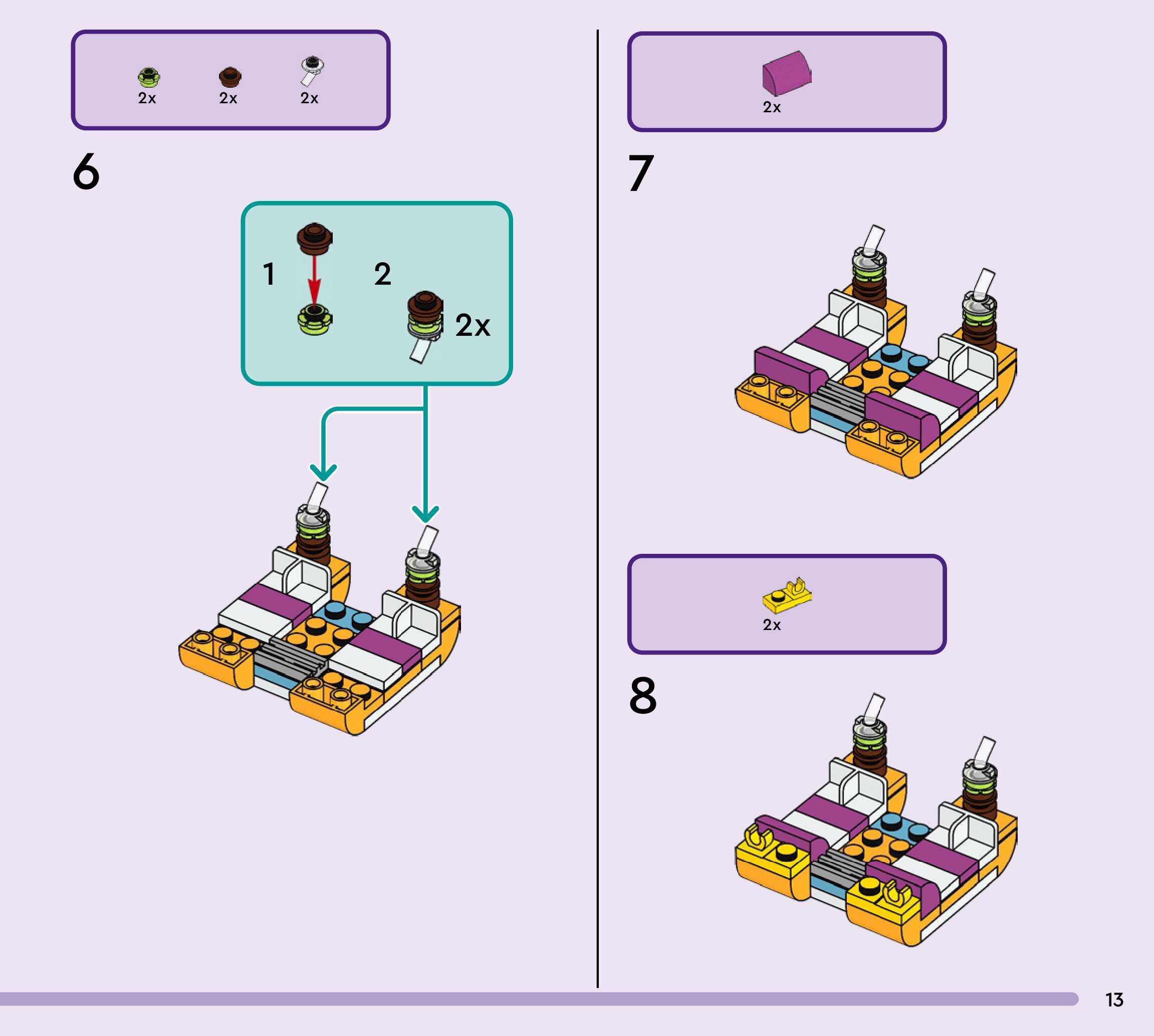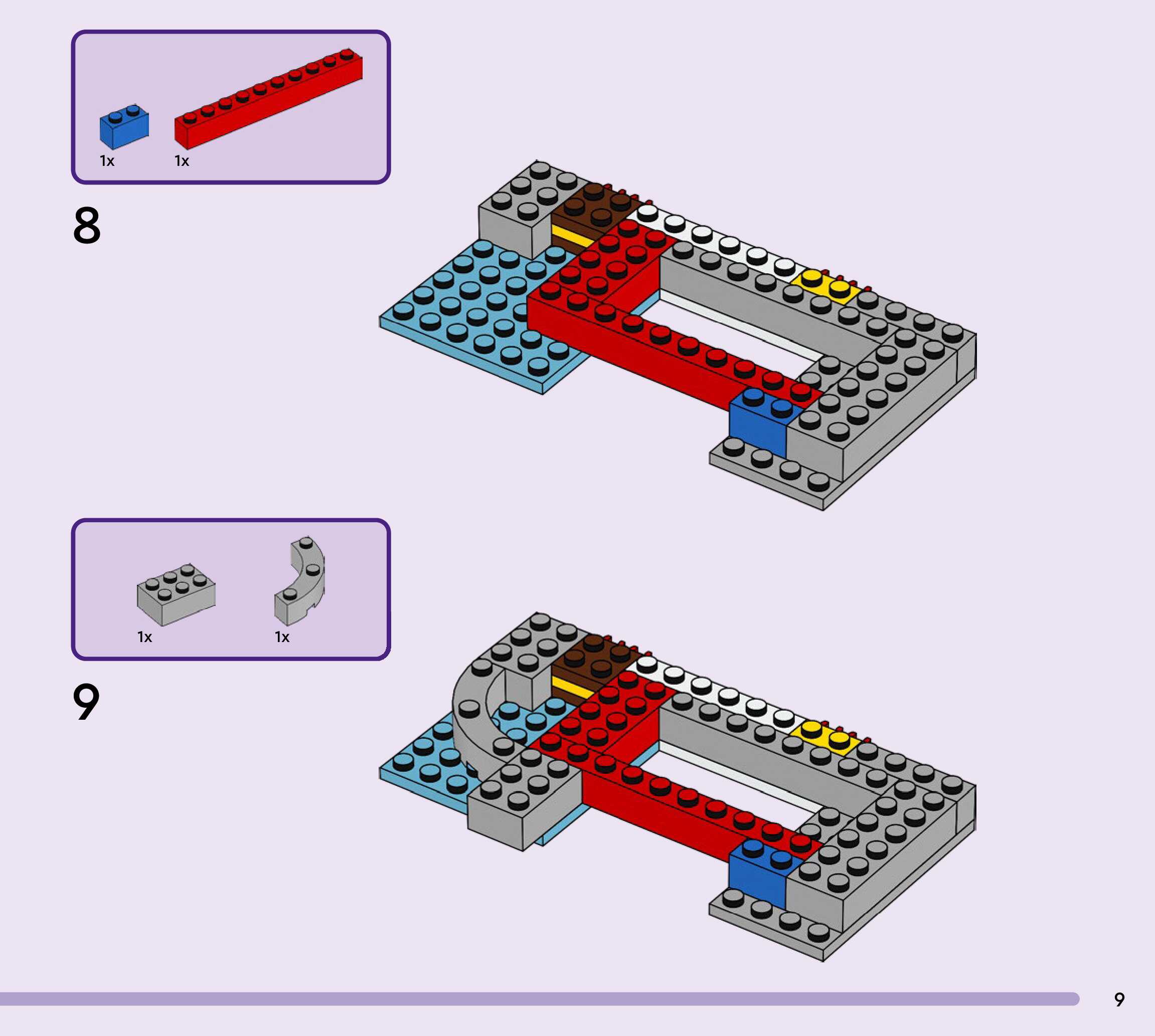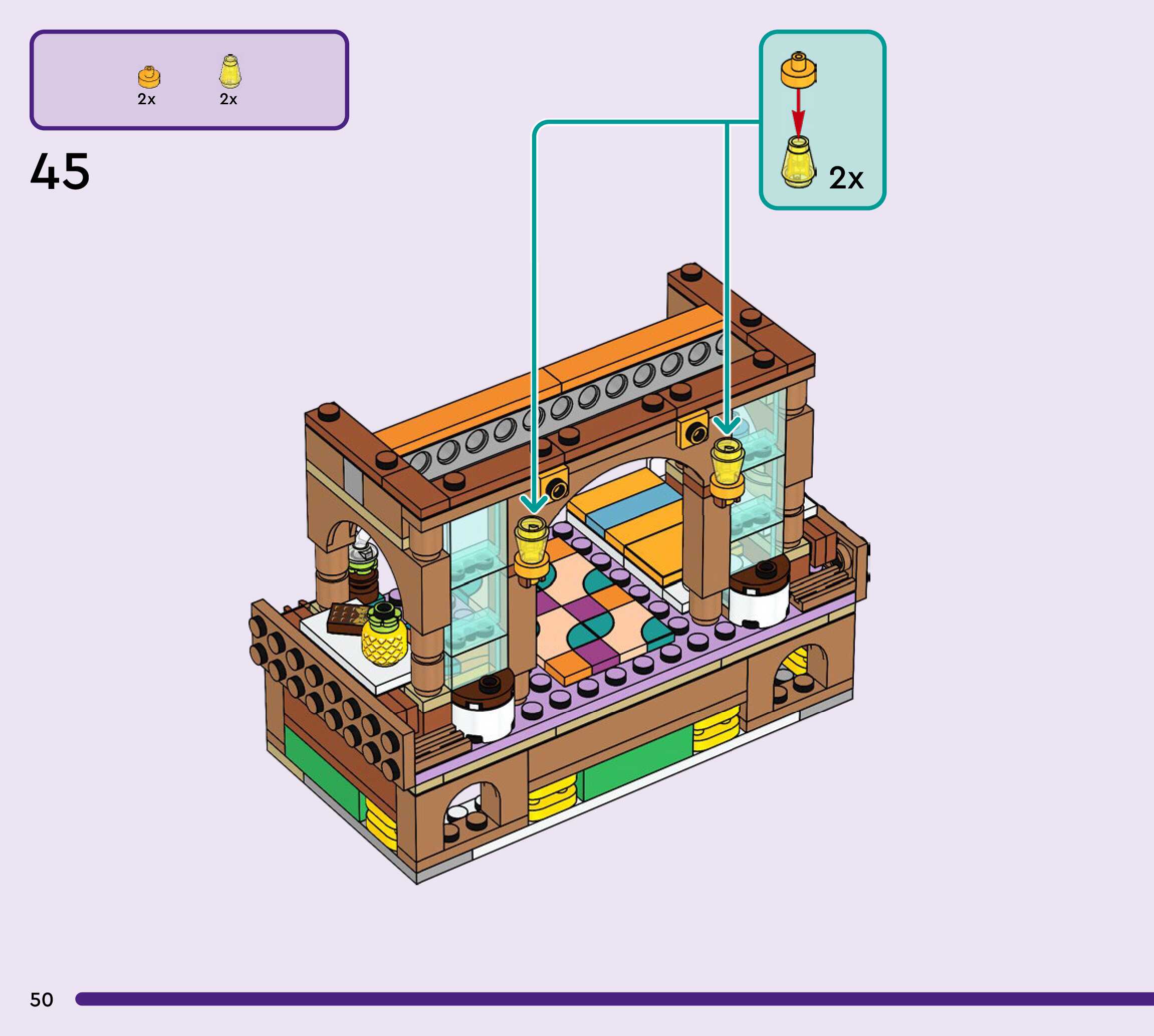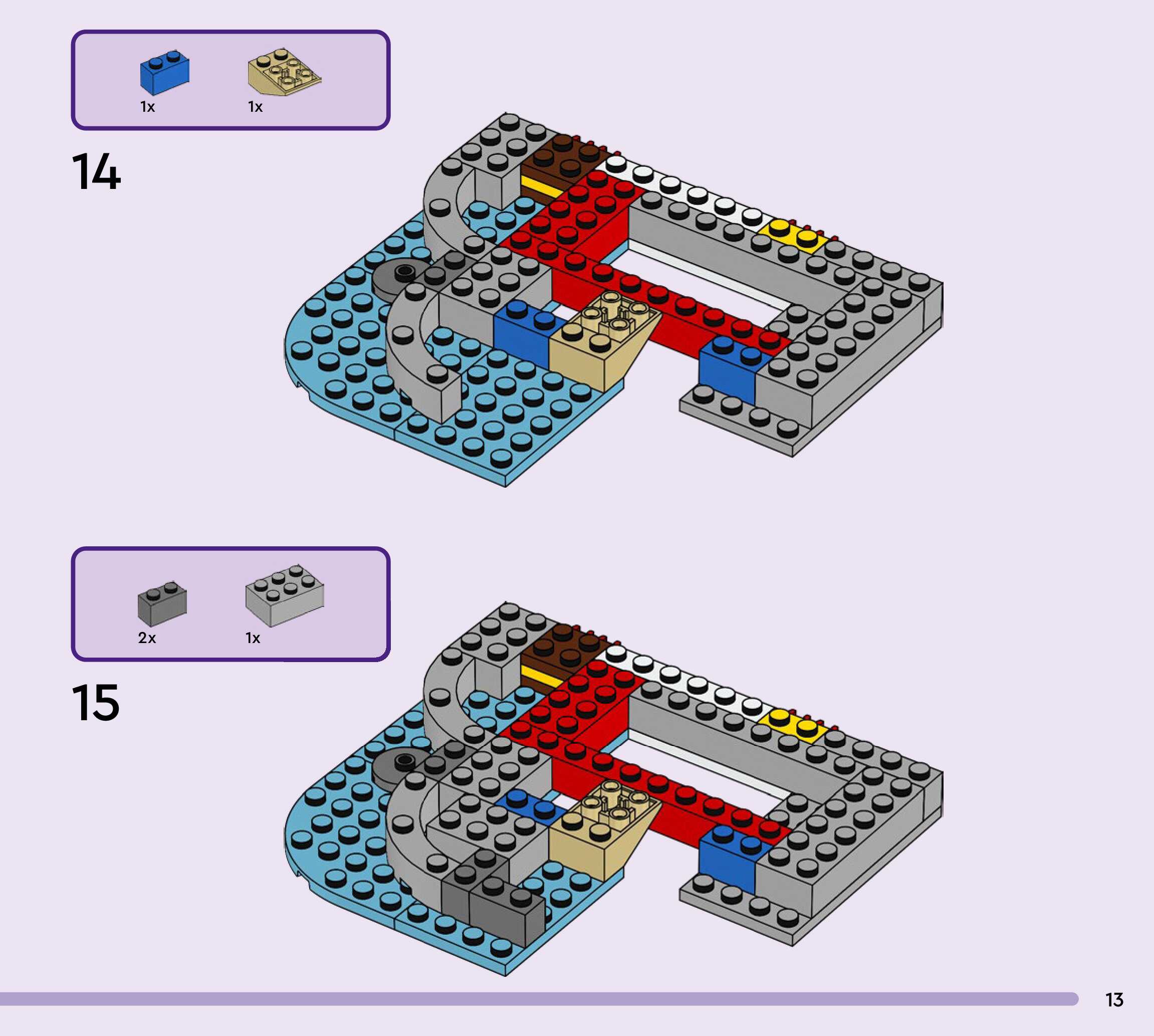 The assembly guide is prepared in a very understandable way for children and adult LEGO enthusiasts. A total of 348 picture galleries are shown, explaining the step-by-step construction stages for 6 different structures.