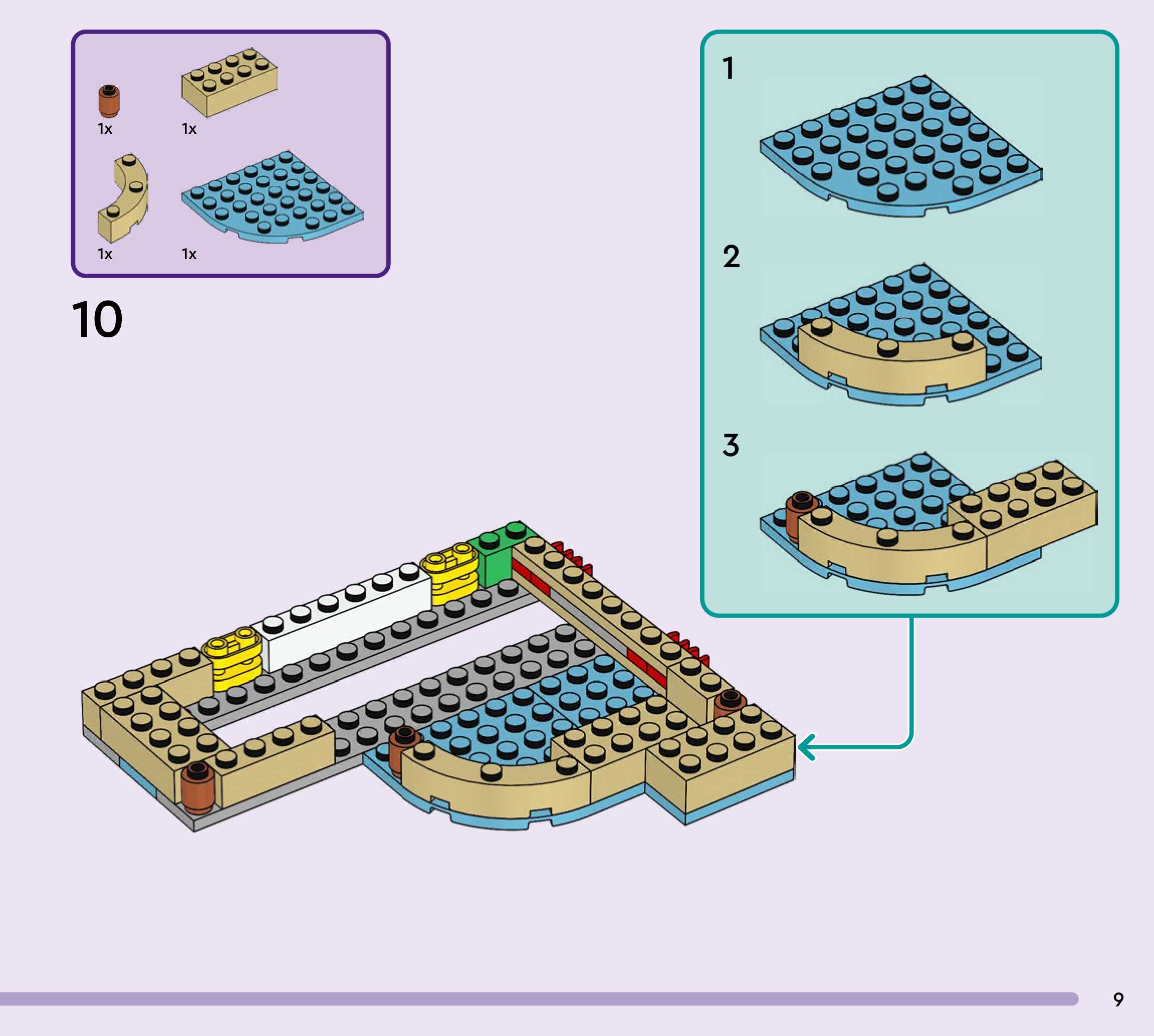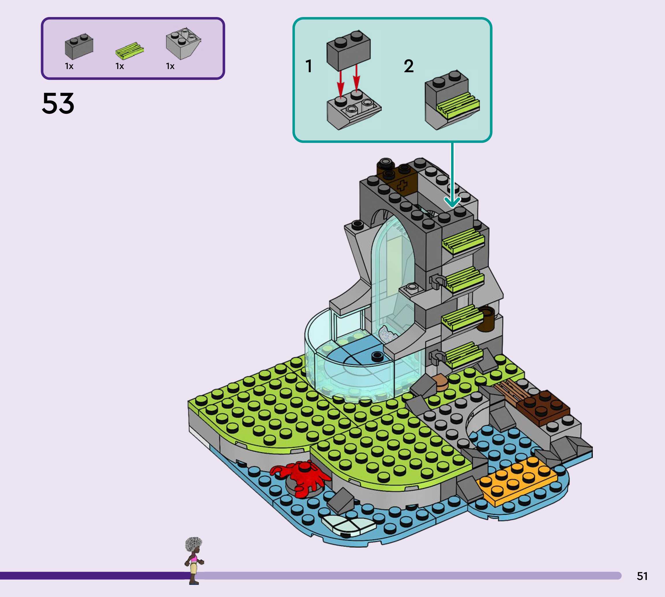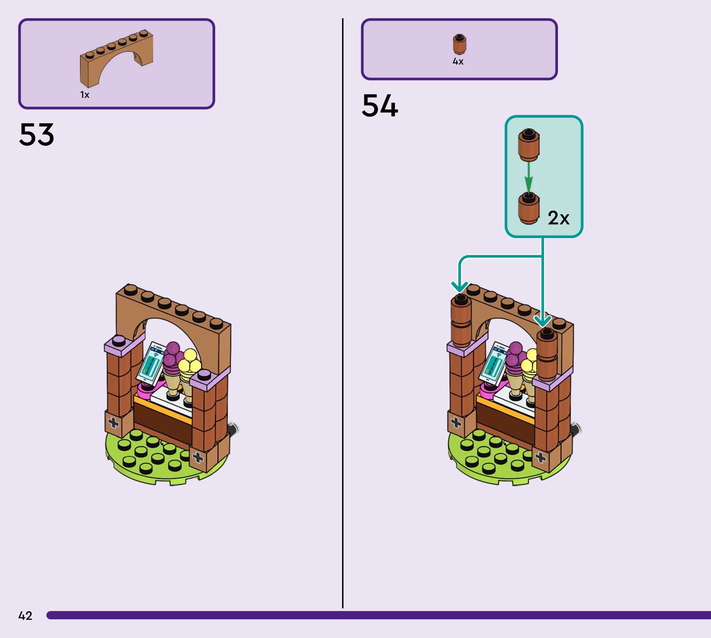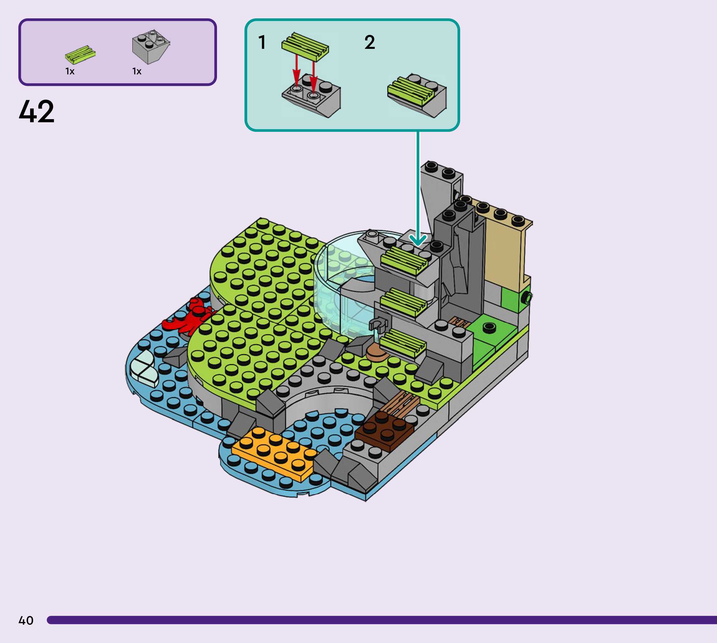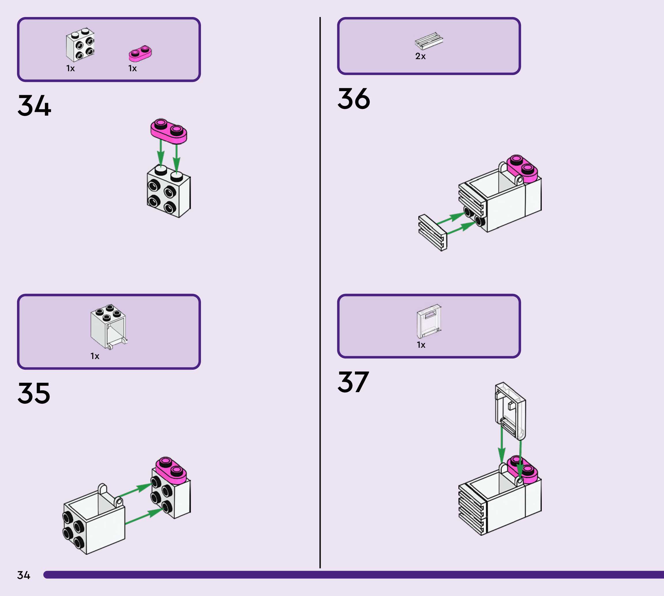The assembly guide is prepared in a very understandable way for children and adult LEGO enthusiasts. A total of 348 picture galleries are shown, explaining the step-by-step construction stages for 6 different structures.