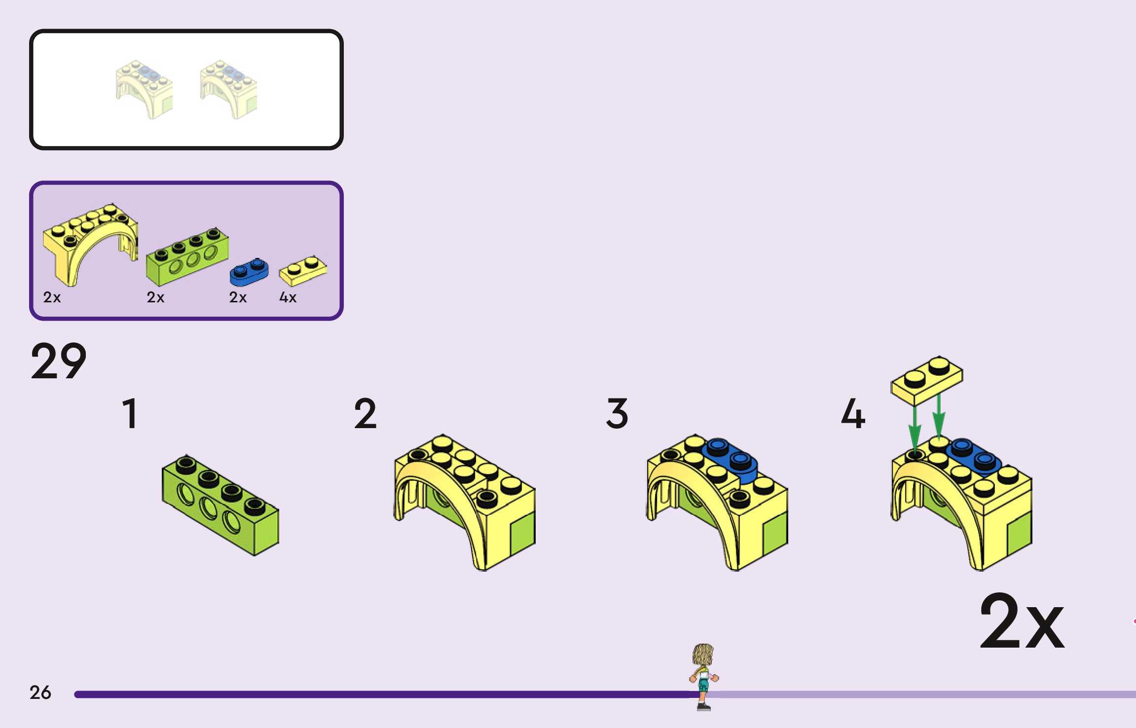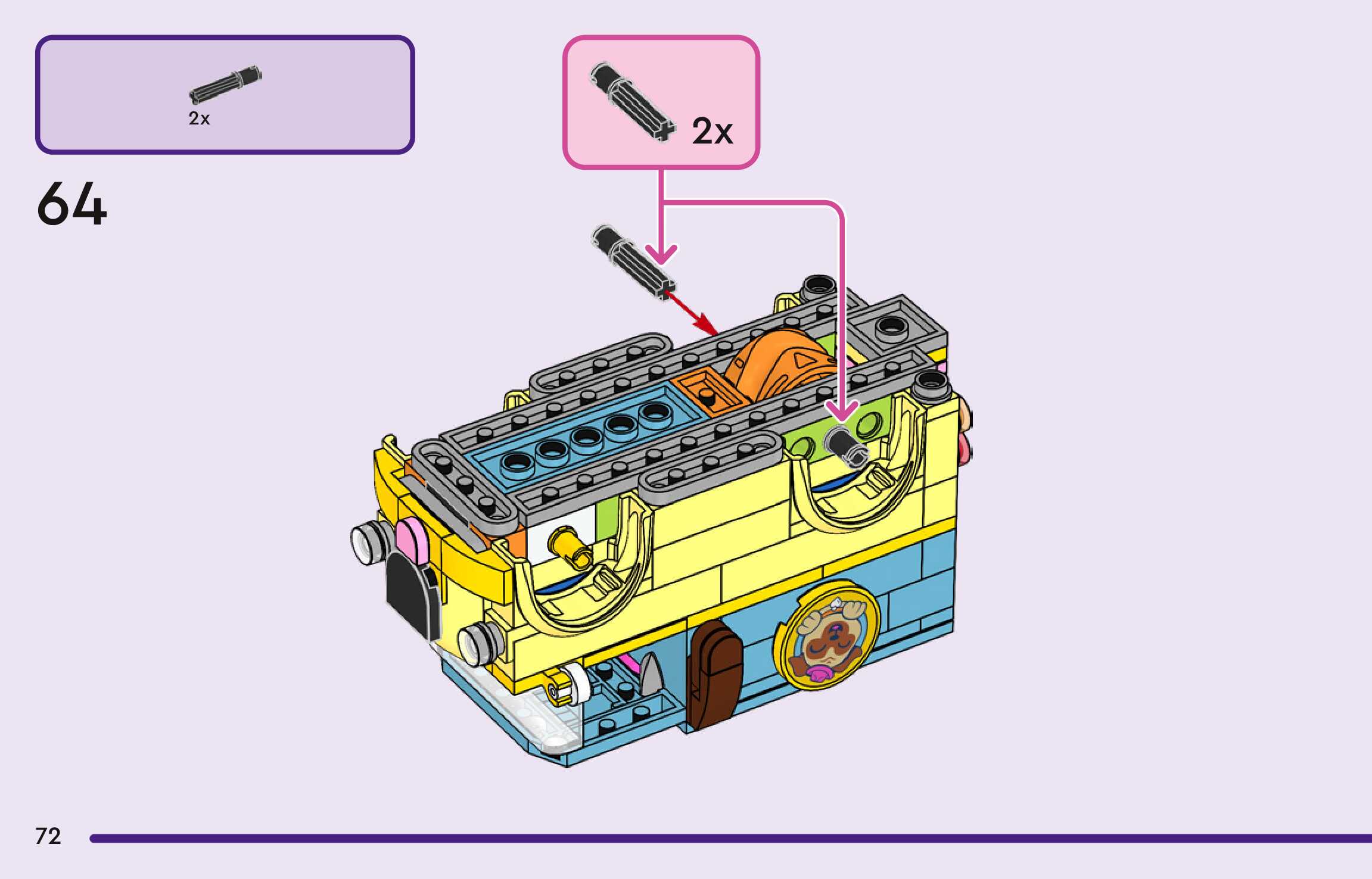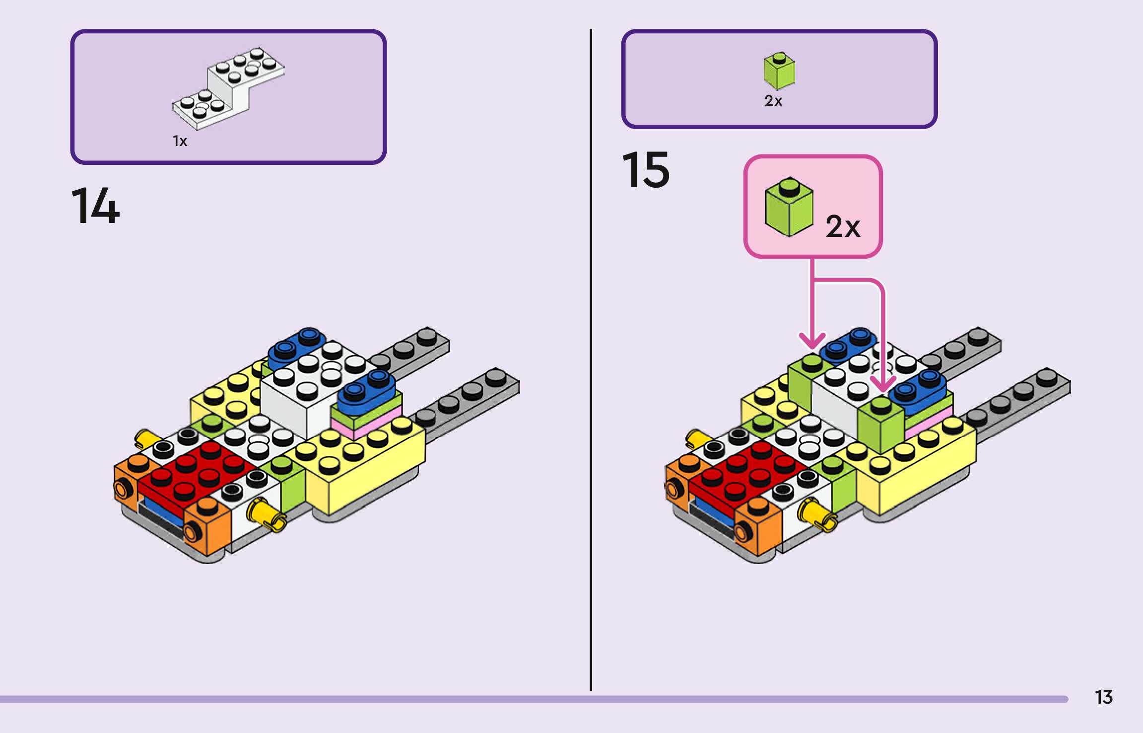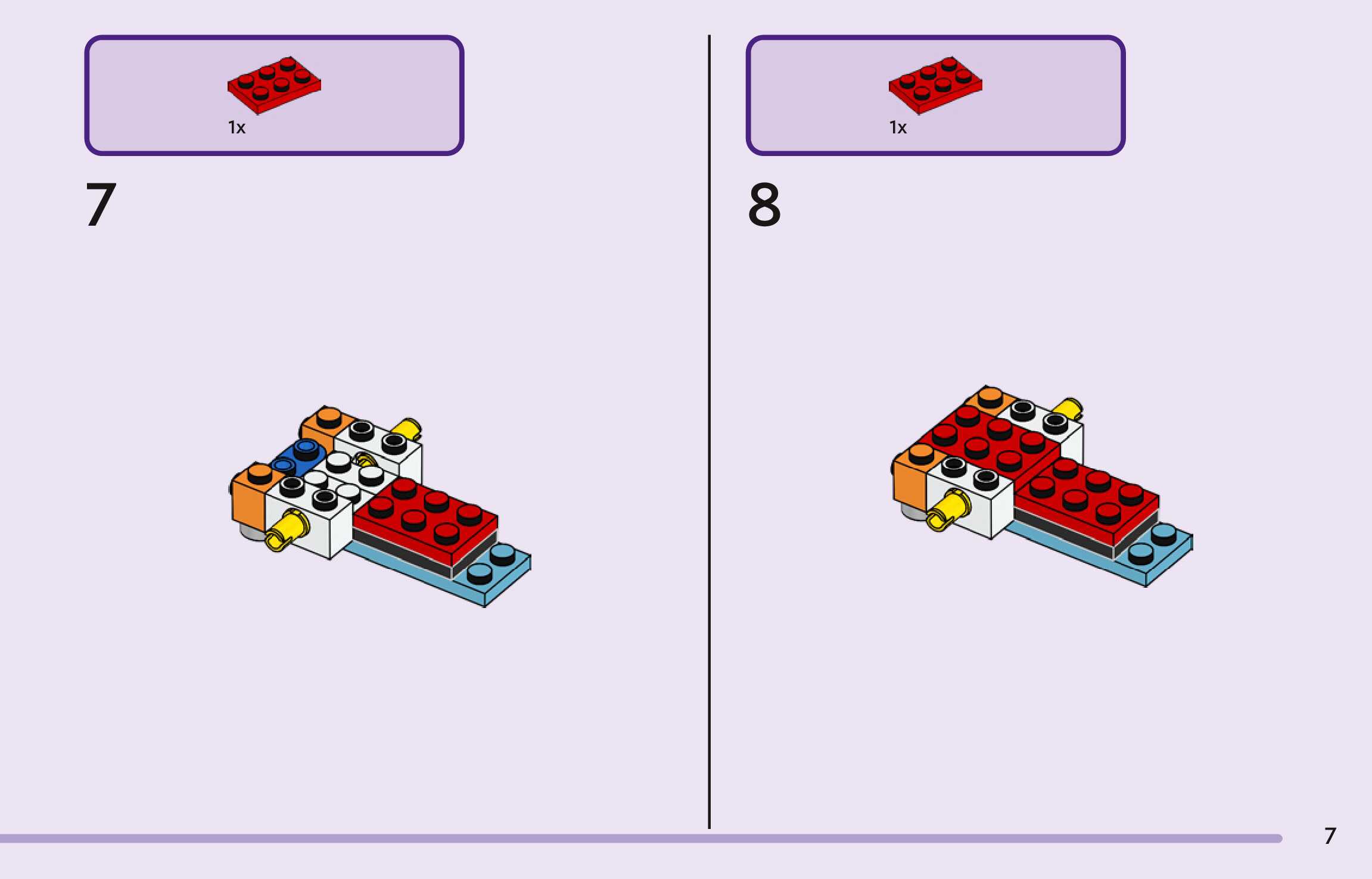 The assembly guide is prepared in a very understandable way for children and adult LEGO enthusiasts. A total of 100 picture galleries are shown, explaining the step-by-step construction stages for 2 different structures.