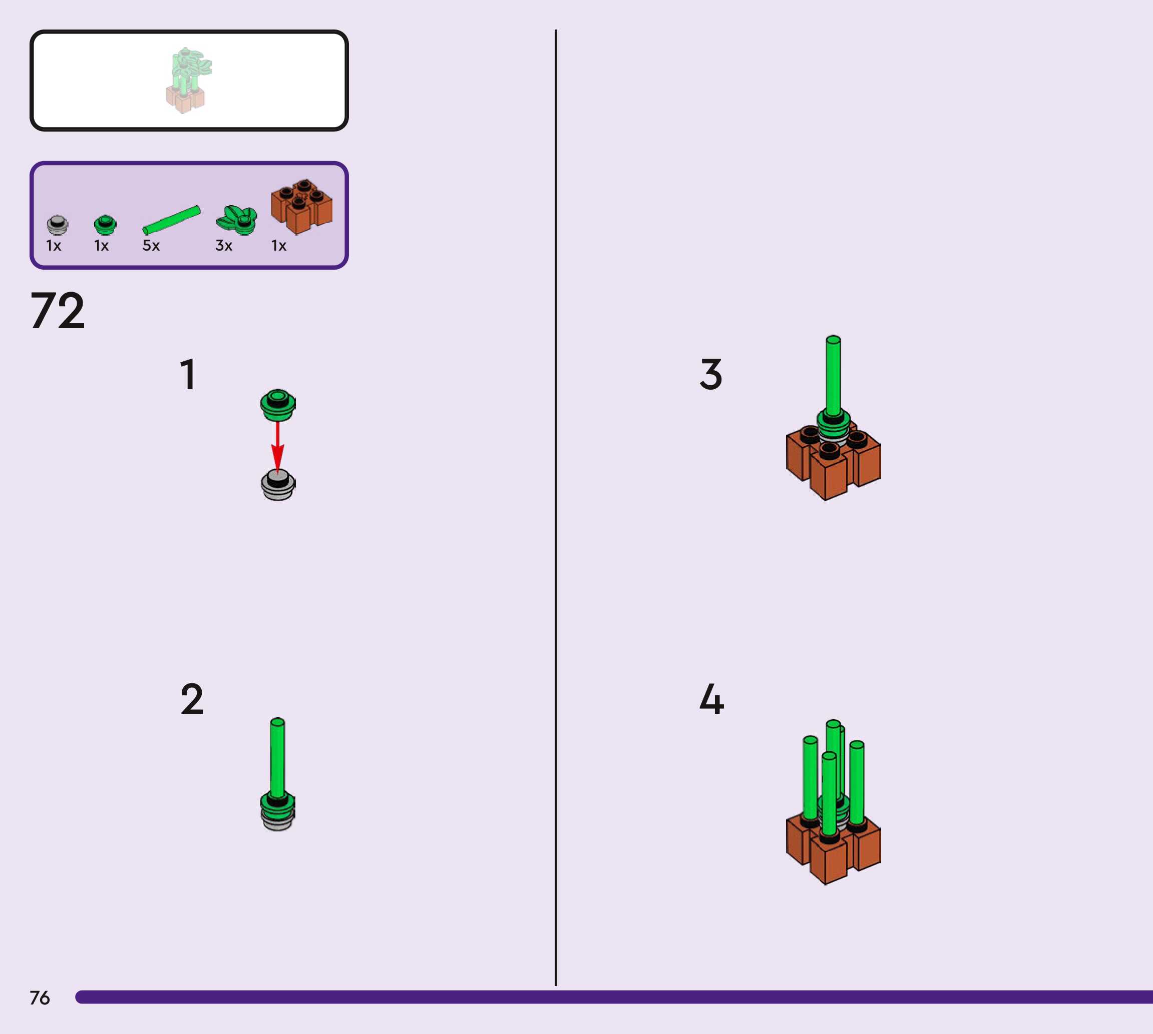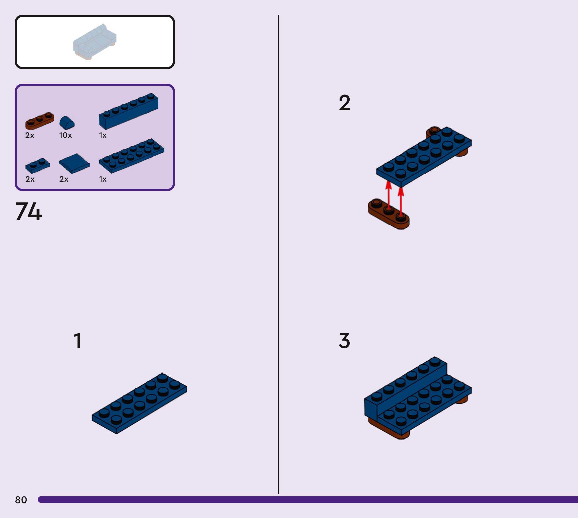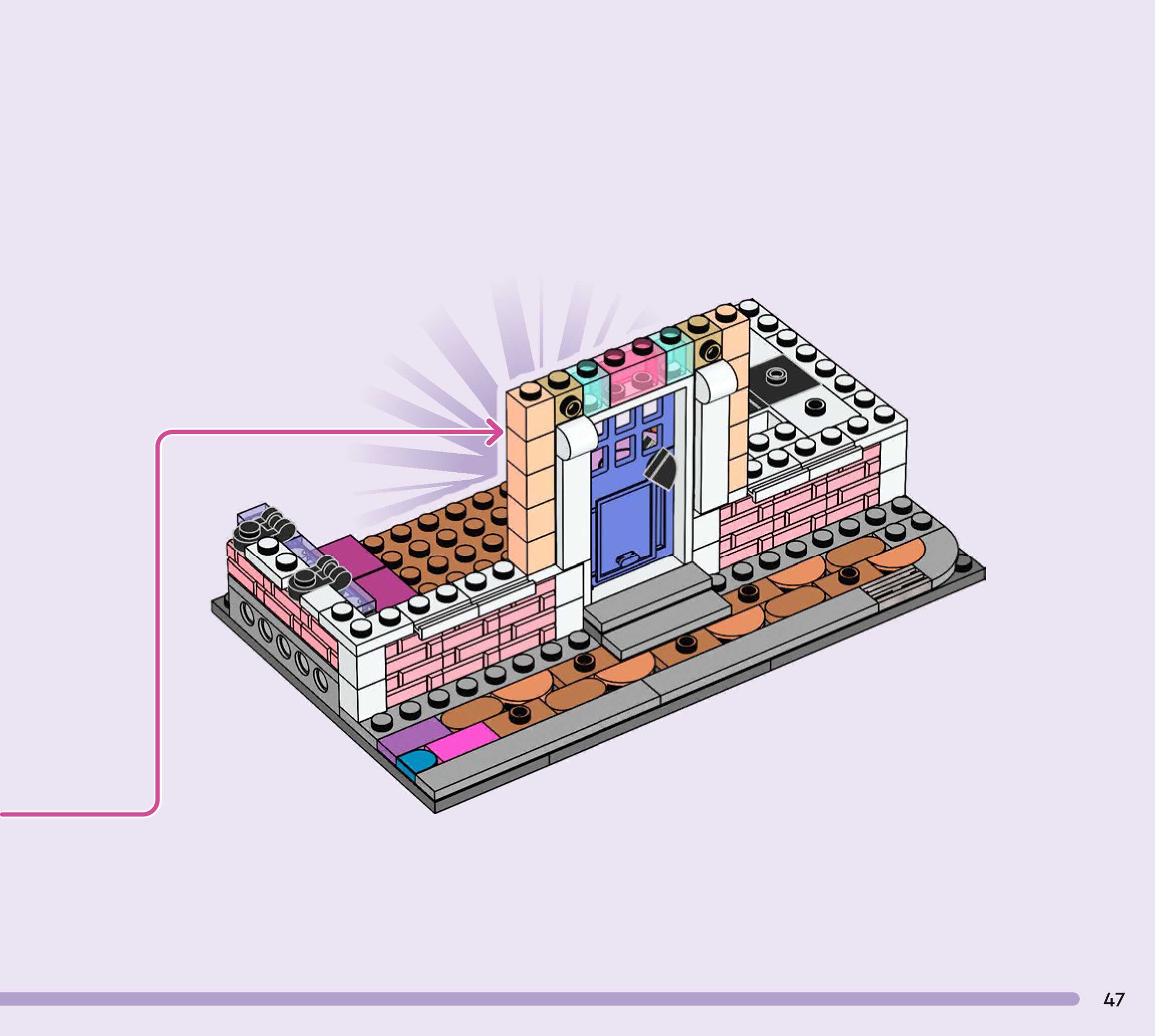 The assembly guide is prepared in a very understandable way for children and adult LEGO enthusiasts. A total of 272 picture galleries are shown, explaining the step-by-step construction stages for 3 different structures.