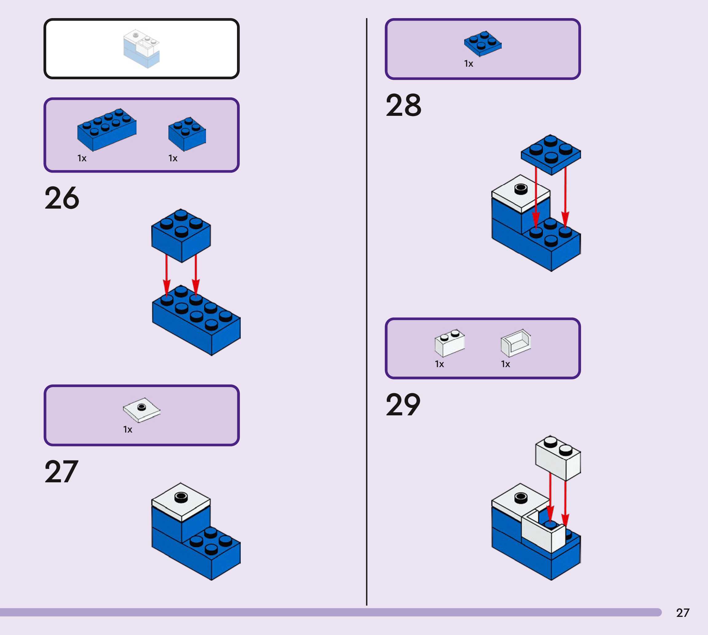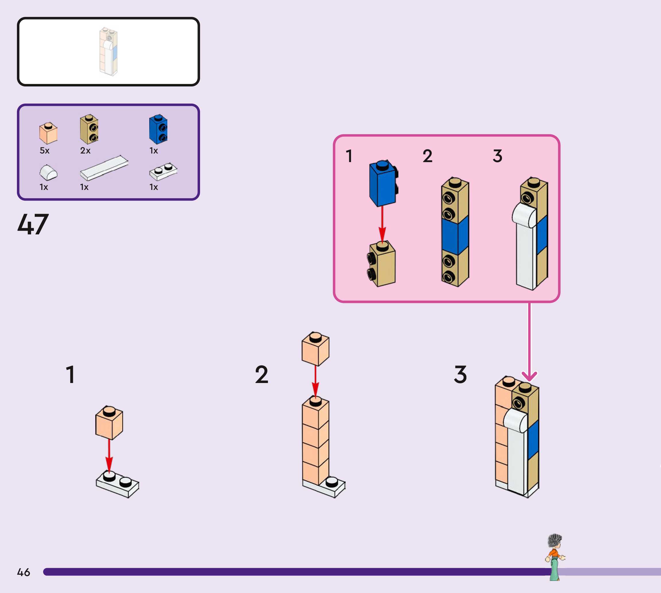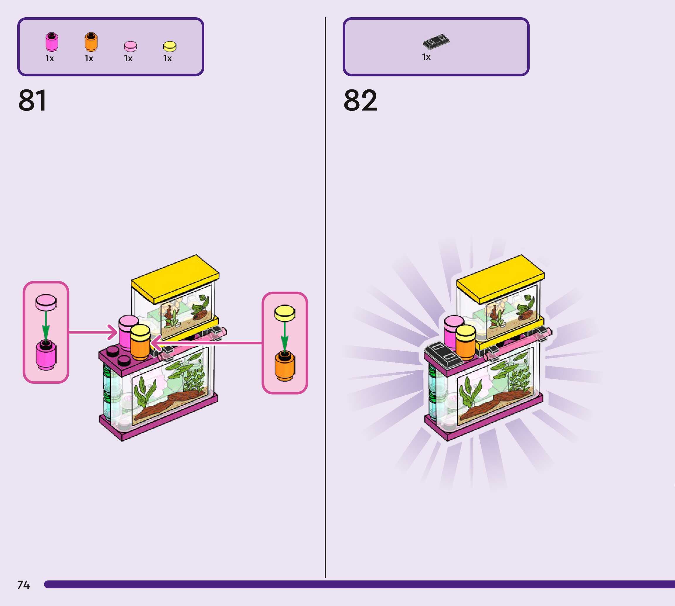 The assembly guide is prepared in a very understandable way for children and adult LEGO enthusiasts. A total of 272 picture galleries are shown, explaining the step-by-step construction stages for 3 different structures.