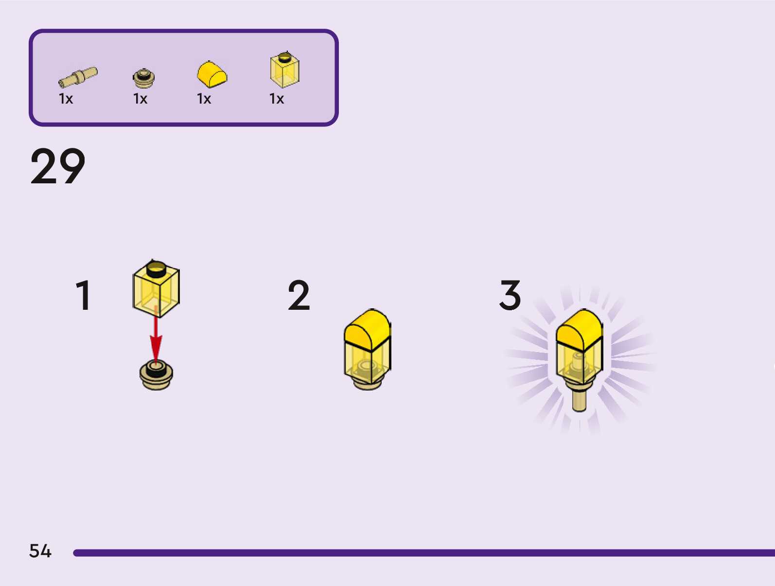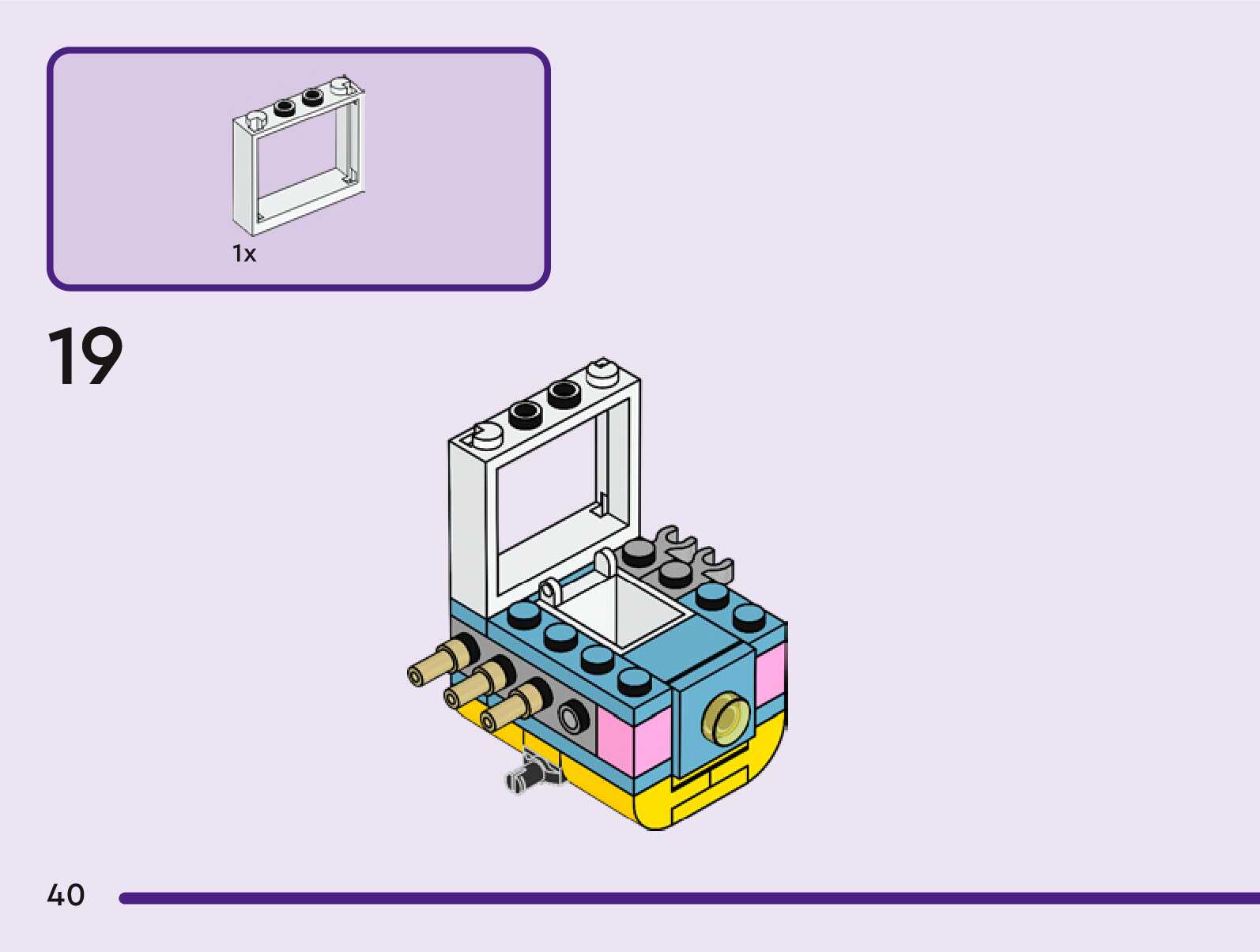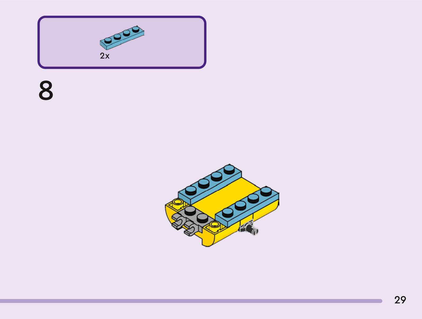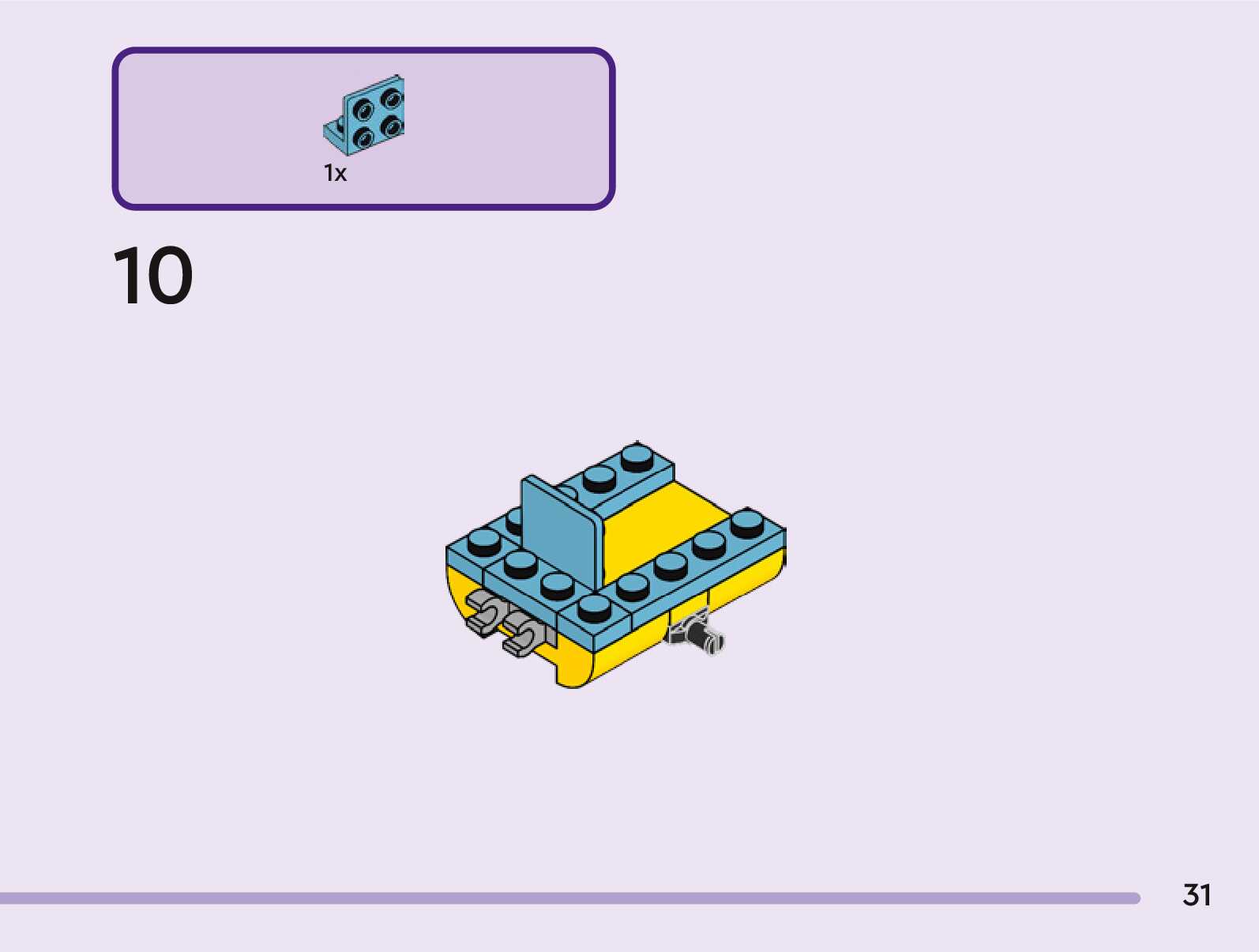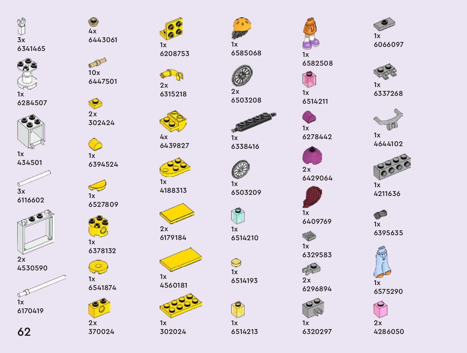 The assembly guide is prepared in a very understandable way for children and adult LEGO enthusiasts. A total of 64 picture galleries are shown, explaining the step-by-step construction stages for 1 different structures.