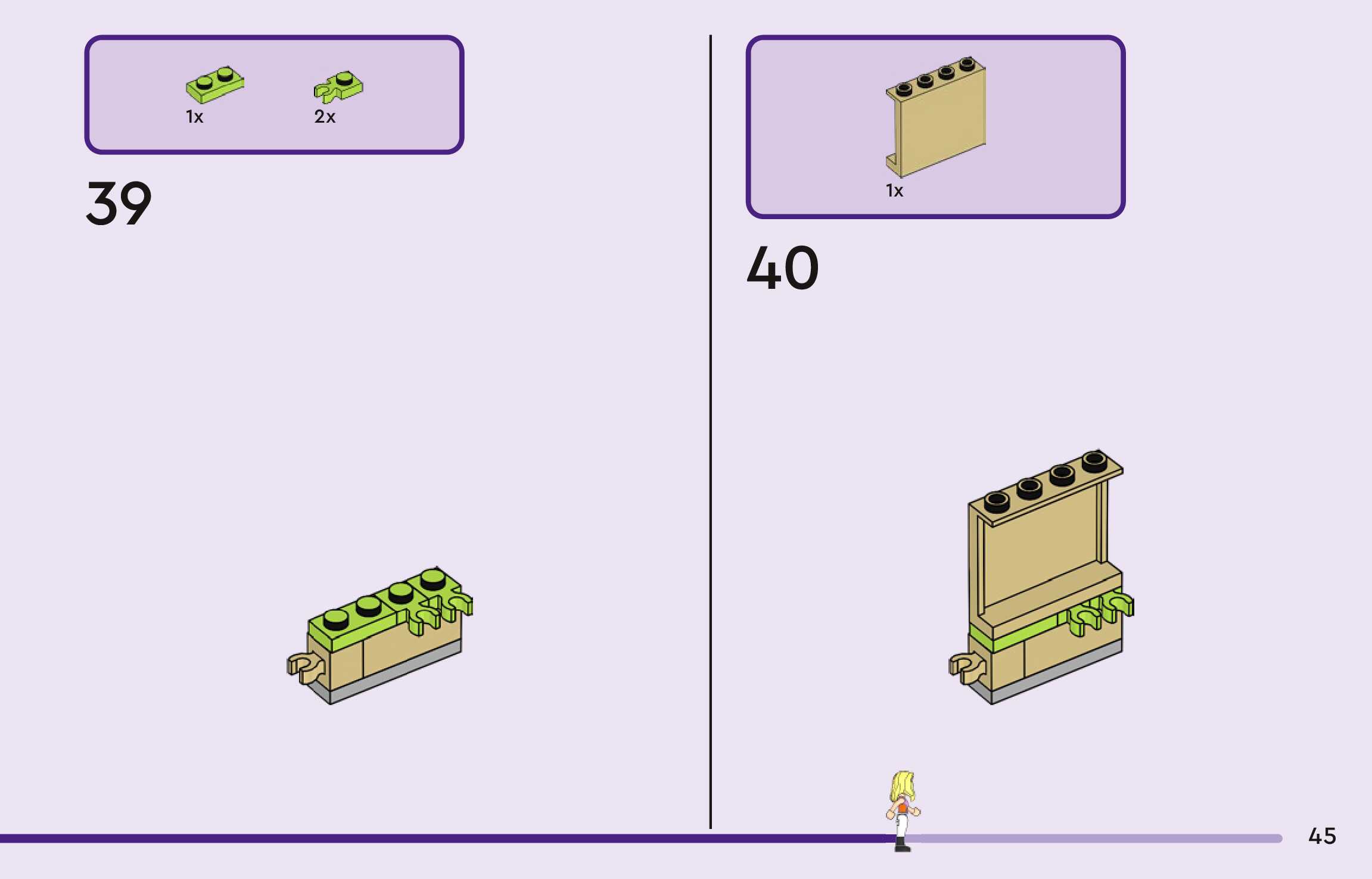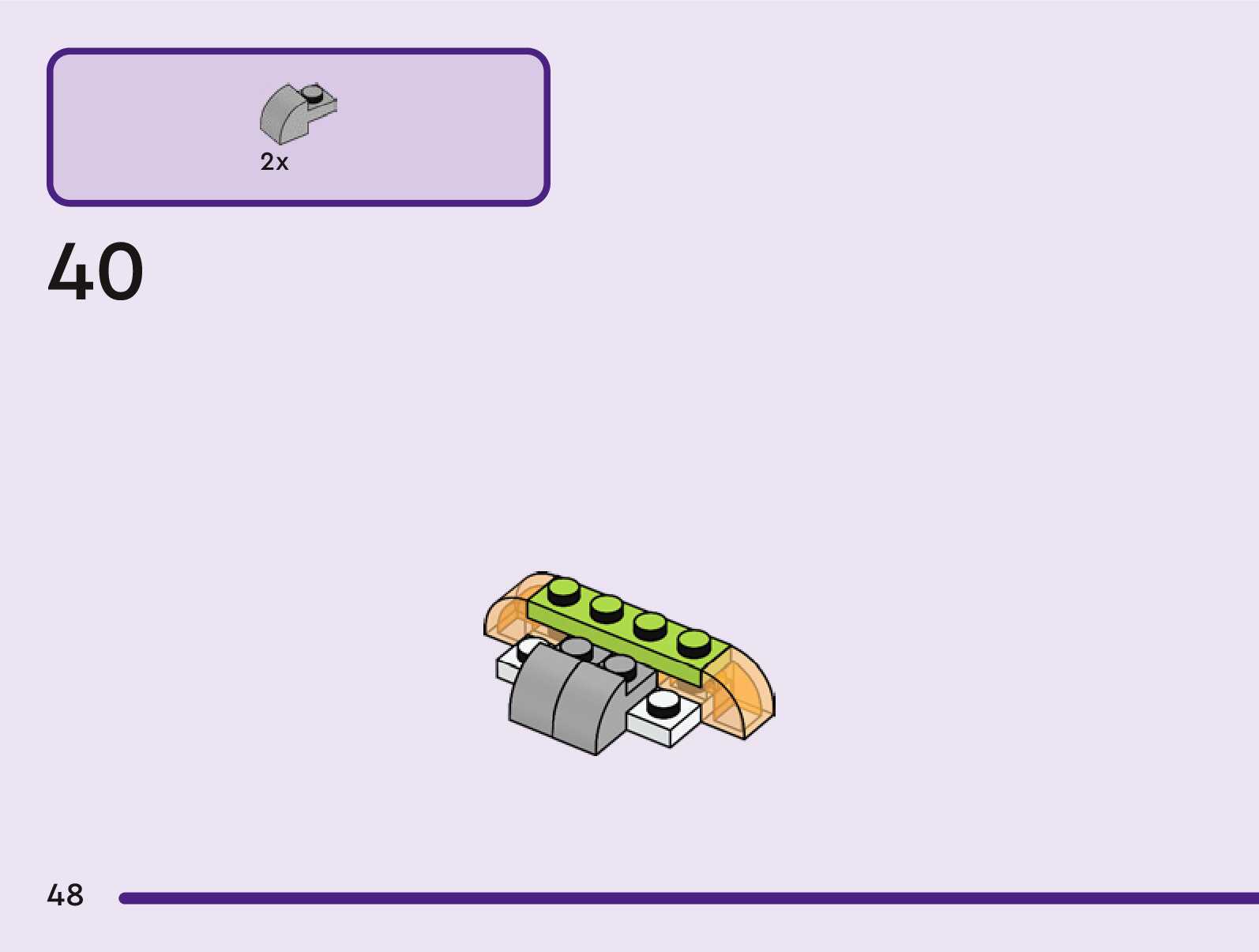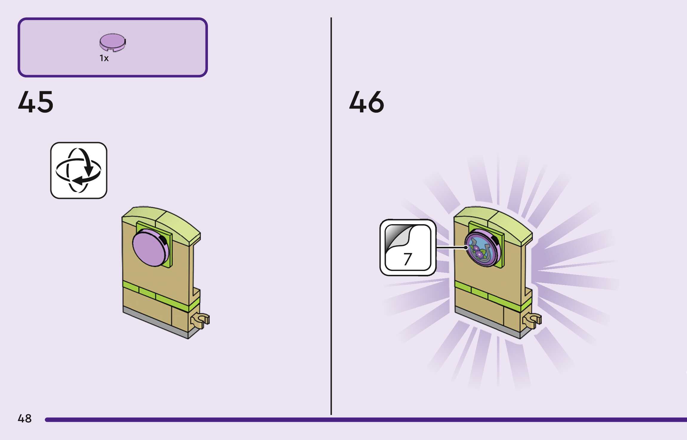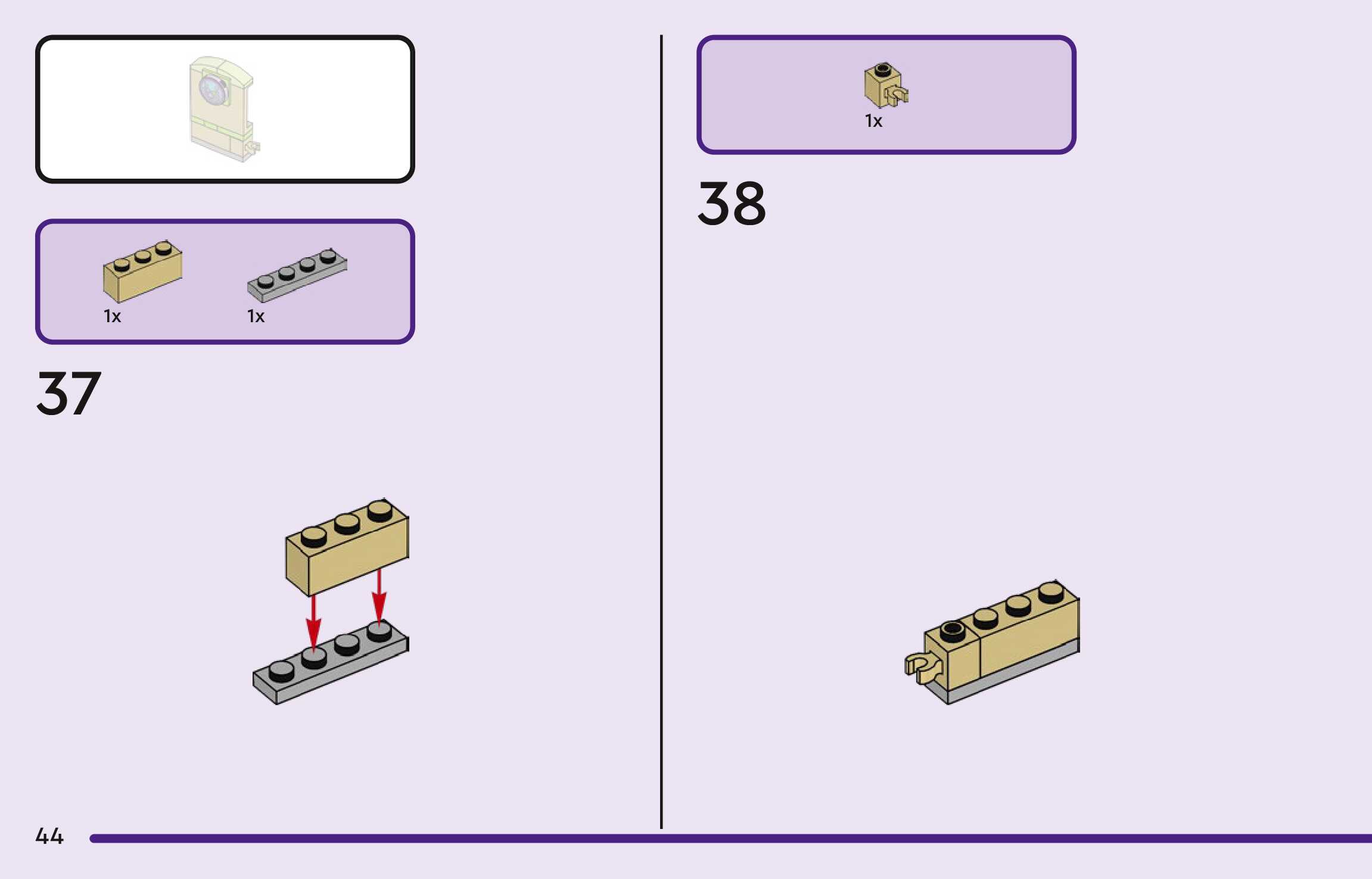 The assembly guide is prepared in a very understandable way for children and adult LEGO enthusiasts. A total of 116 picture galleries are shown, explaining the step-by-step construction stages for 2 different structures.