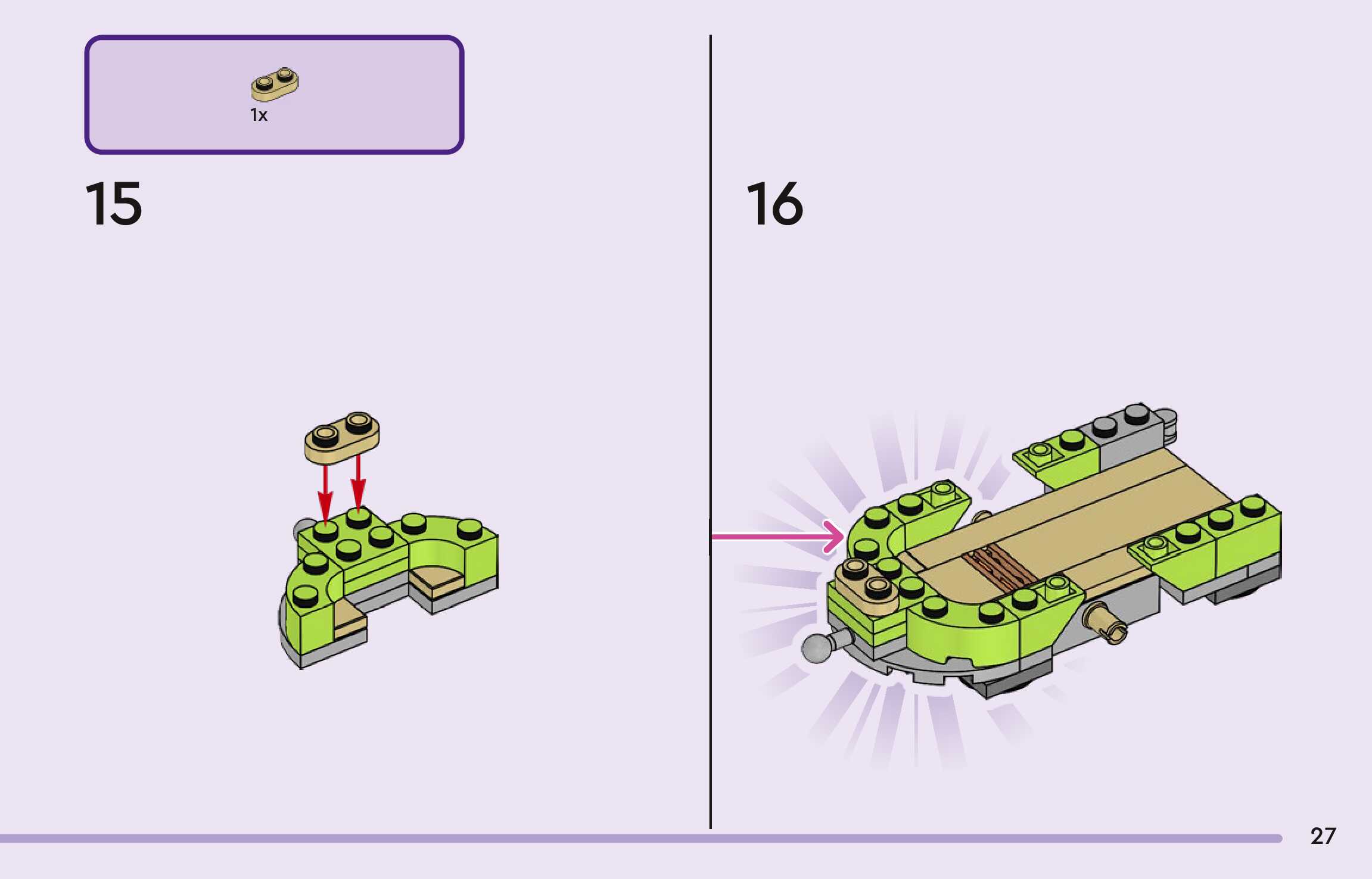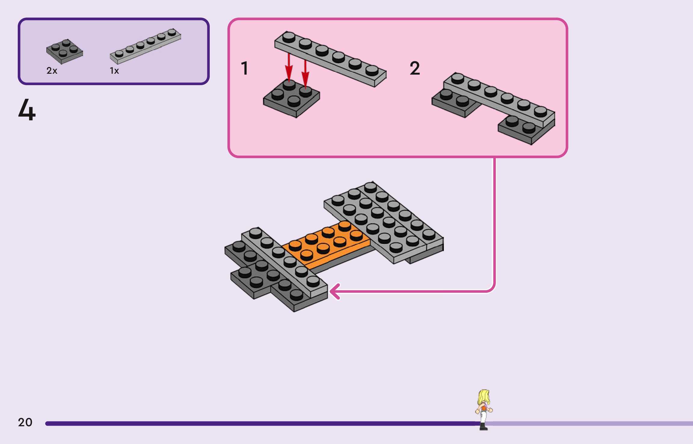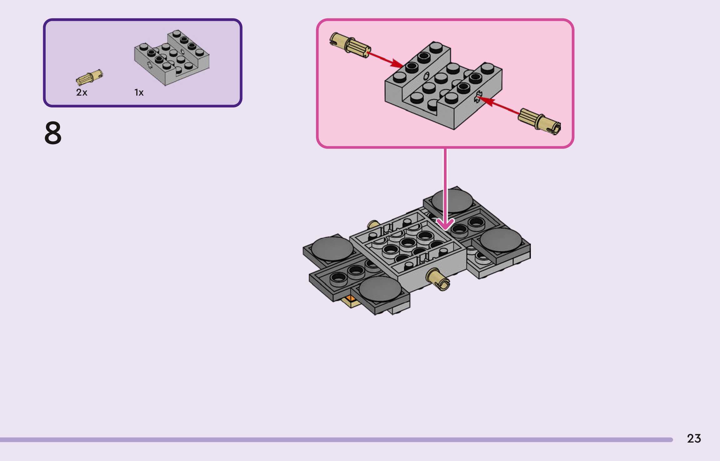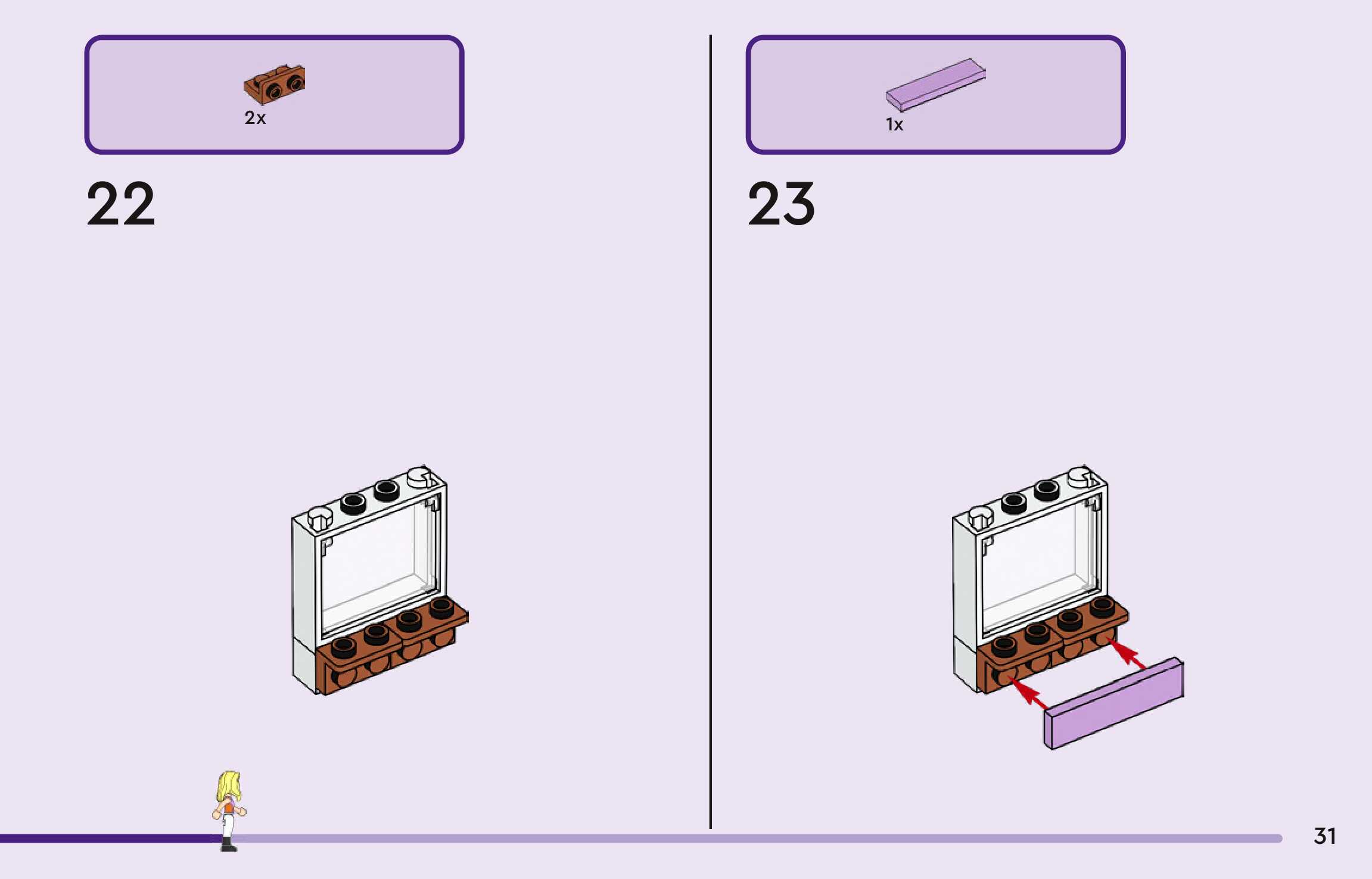 The assembly guide is prepared in a very understandable way for children and adult LEGO enthusiasts. A total of 116 picture galleries are shown, explaining the step-by-step construction stages for 2 different structures.