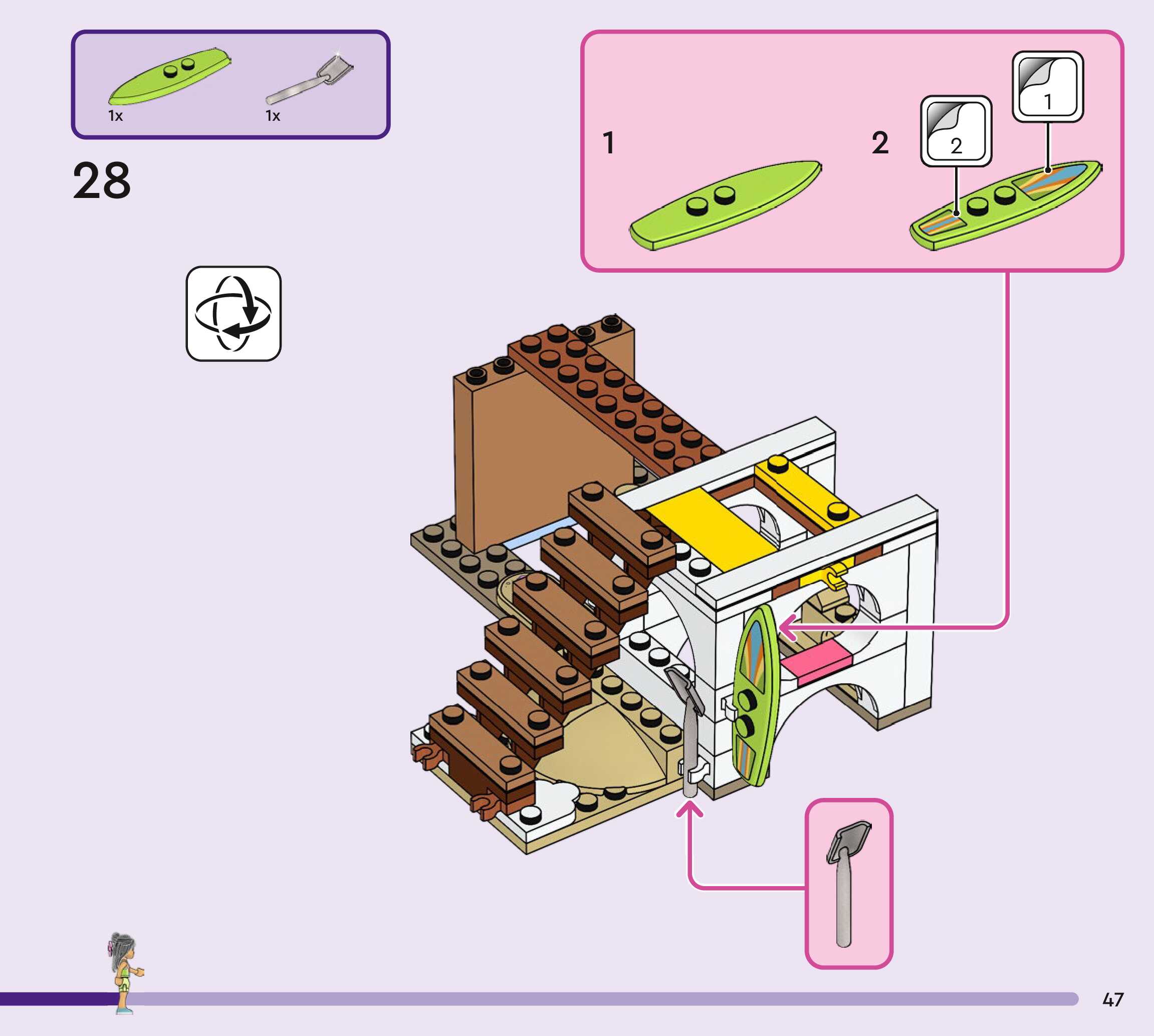 The assembly guide is prepared in a very understandable way for children and adult LEGO enthusiasts. A total of 168 picture galleries are shown, explaining the step-by-step construction stages for 2 different structures.