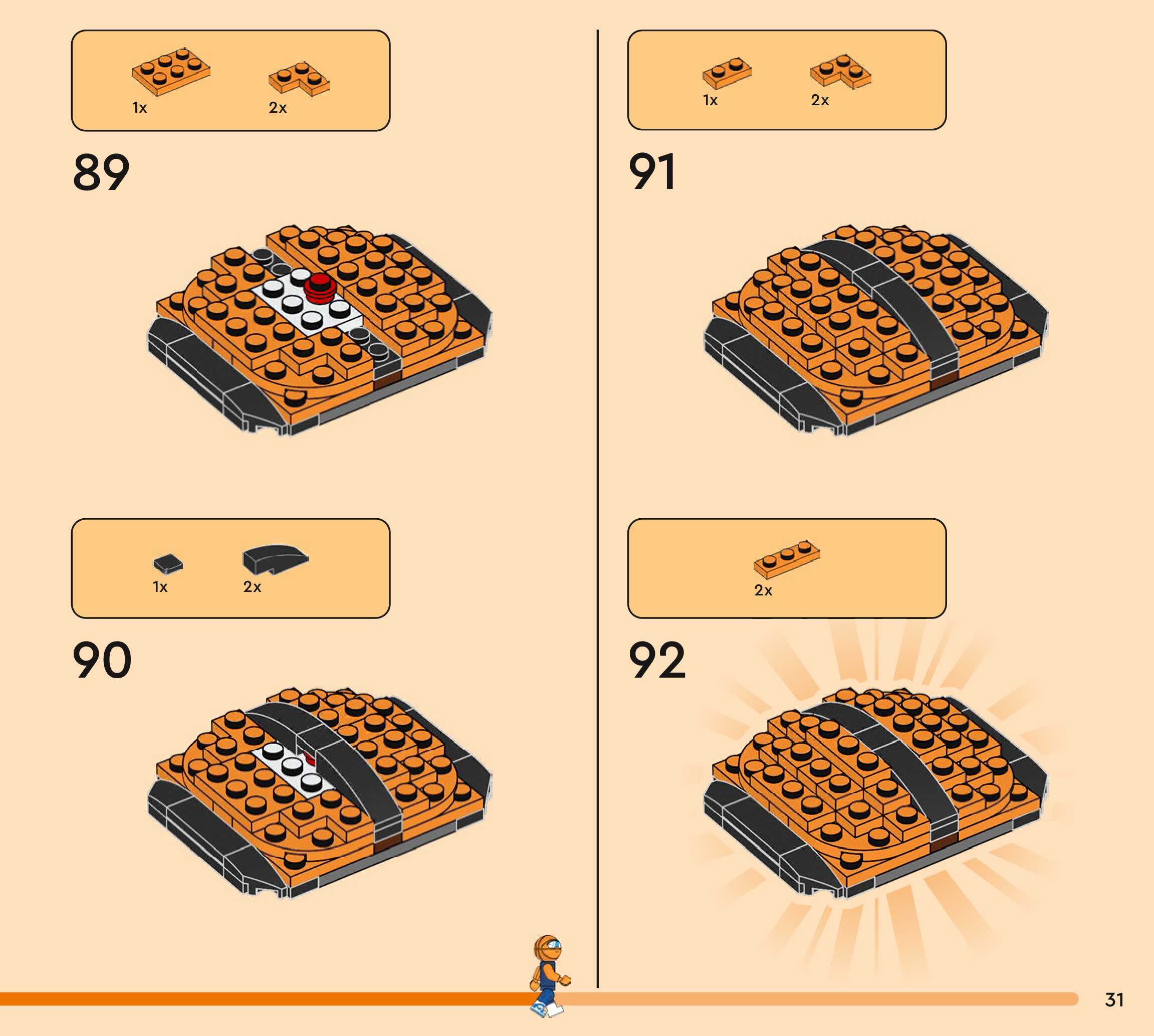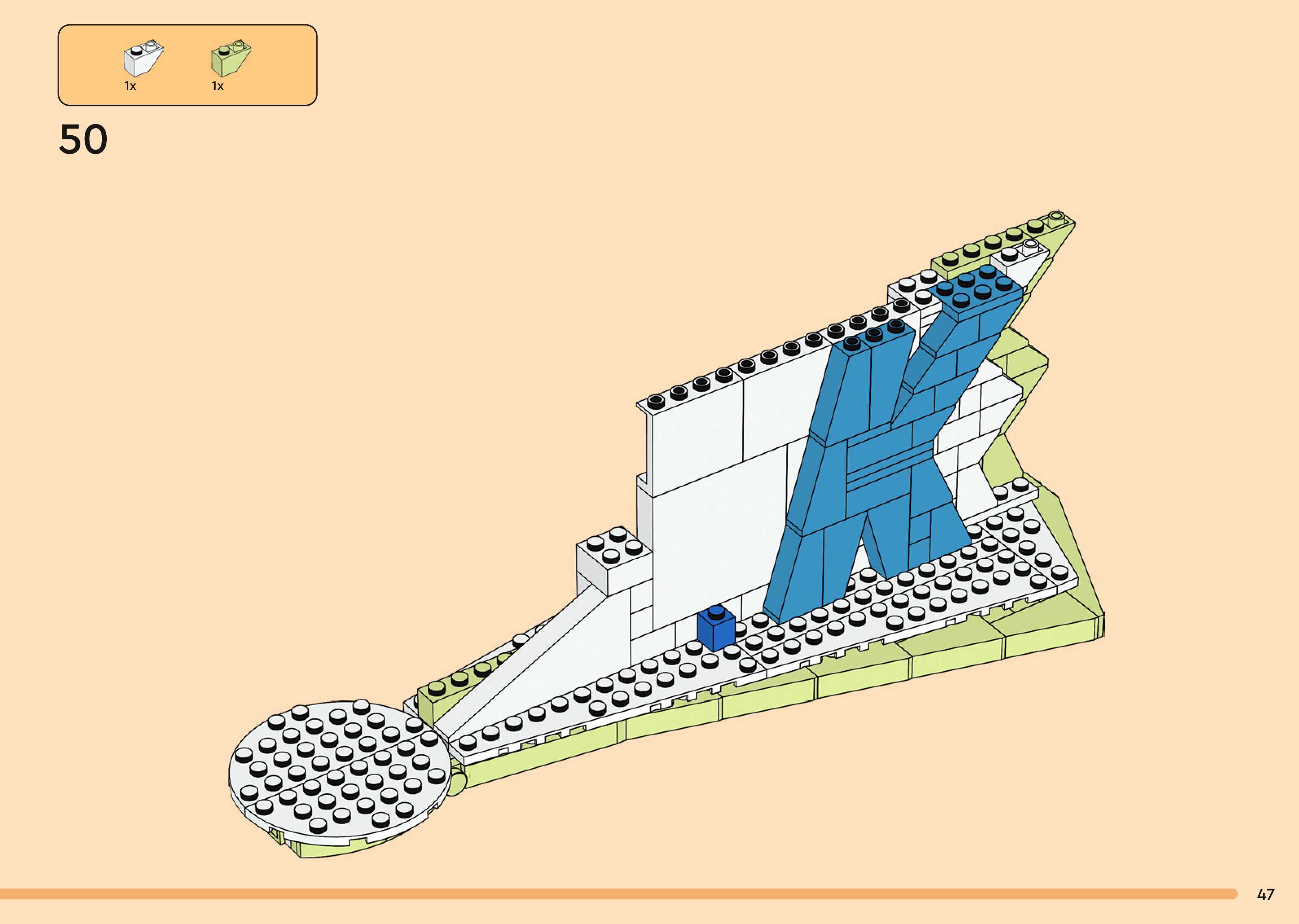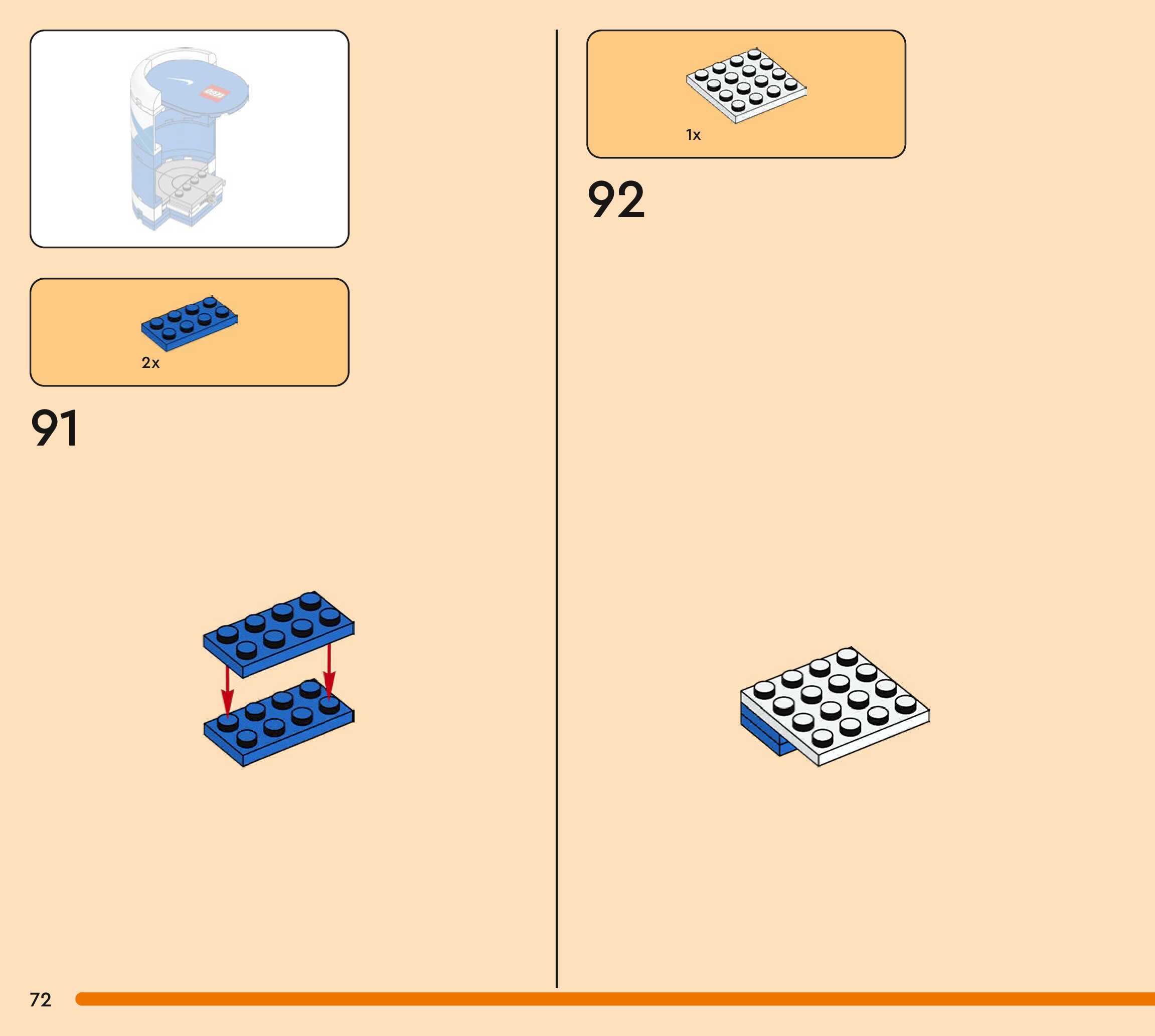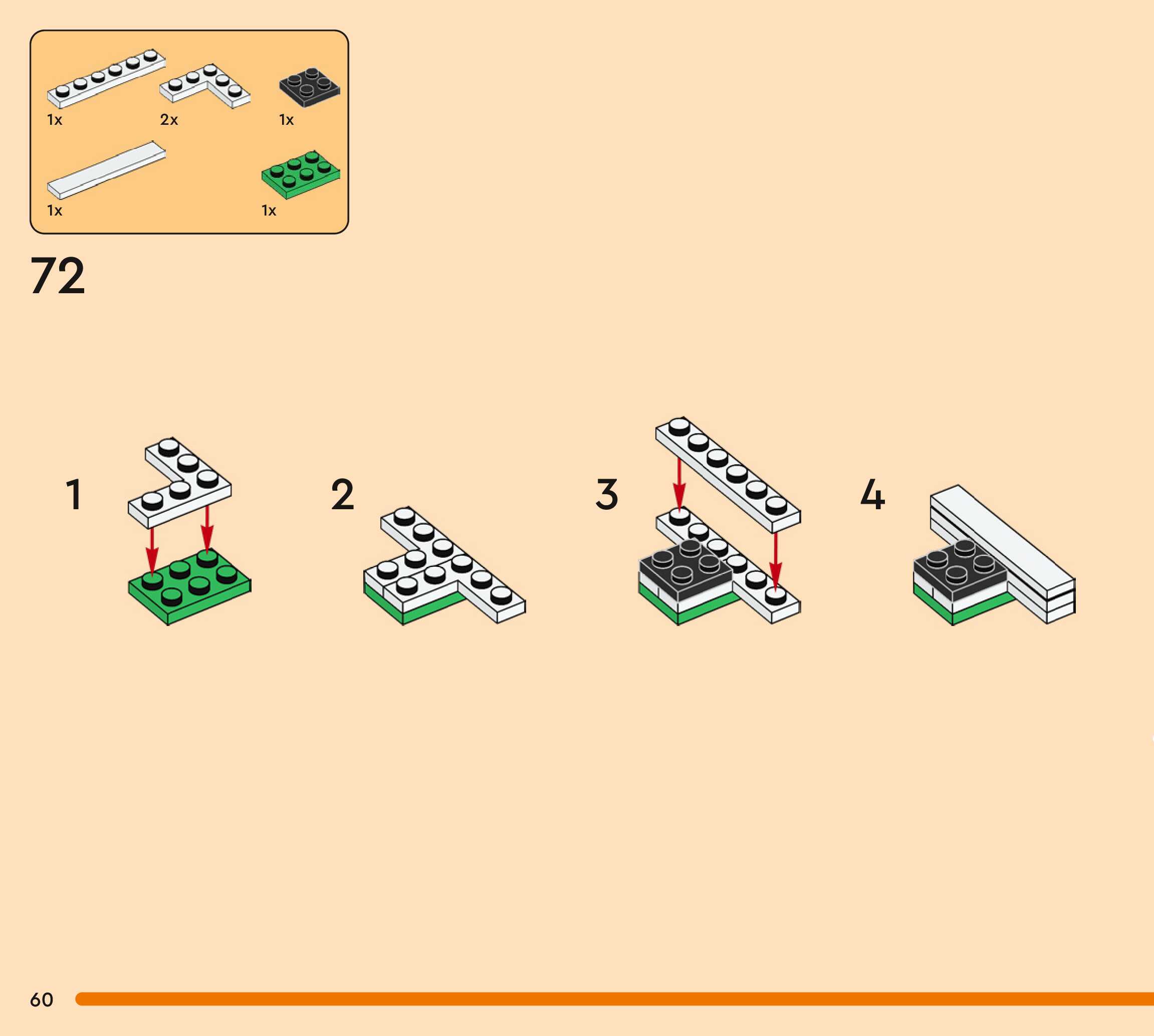 The assembly guide is prepared in a very understandable way for children and adult LEGO enthusiasts. A total of 284 picture galleries are shown, explaining the step-by-step construction stages for 3 different structures.