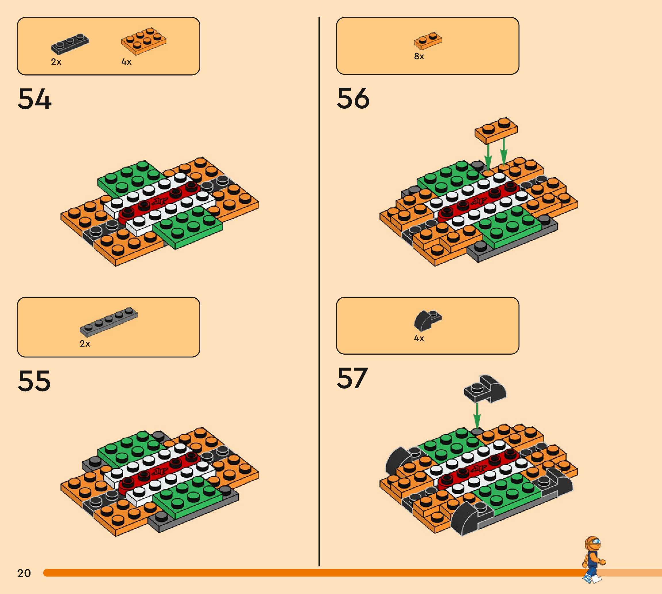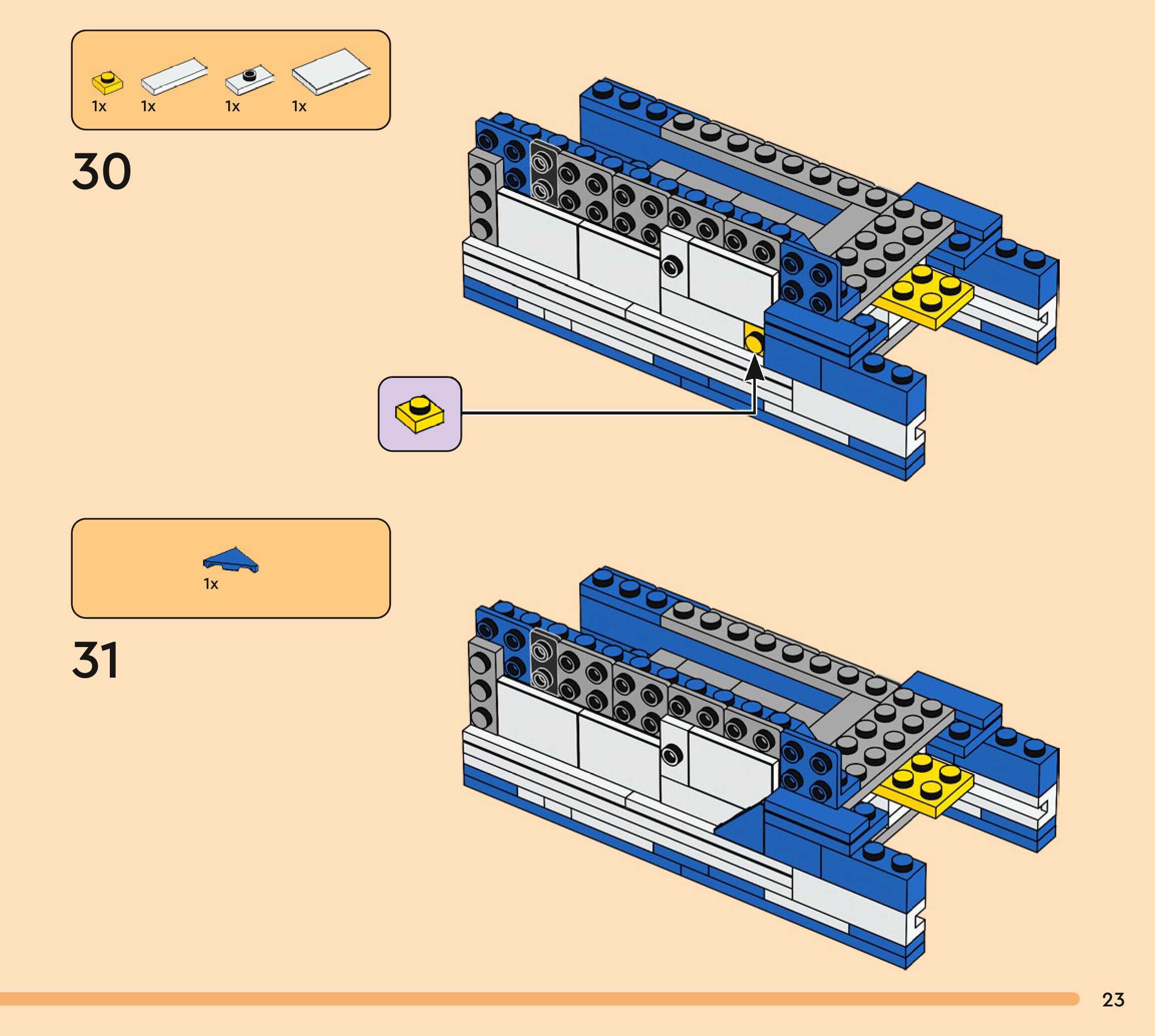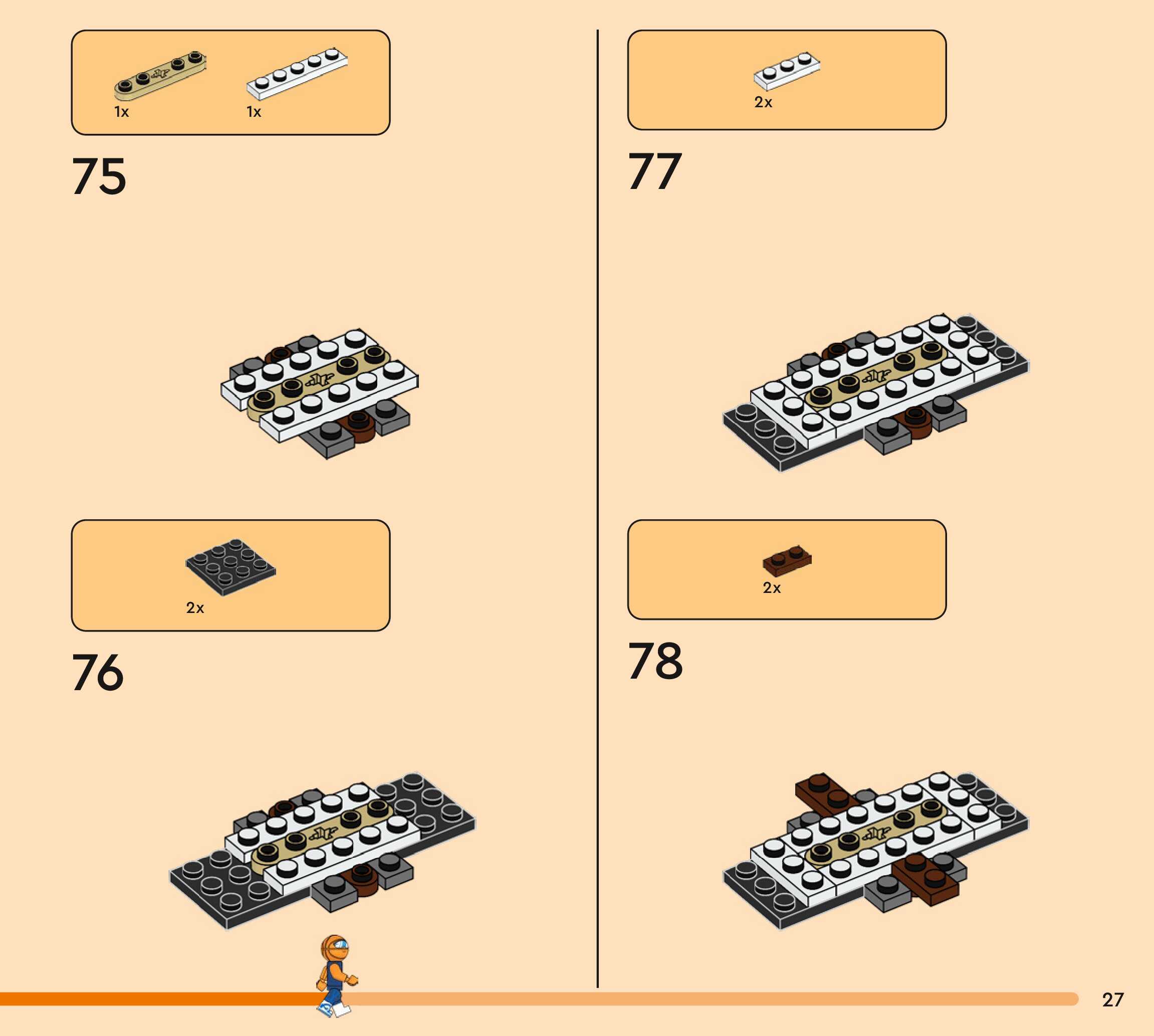 The assembly guide is prepared in a very understandable way for children and adult LEGO enthusiasts. A total of 284 picture galleries are shown, explaining the step-by-step construction stages for 3 different structures.