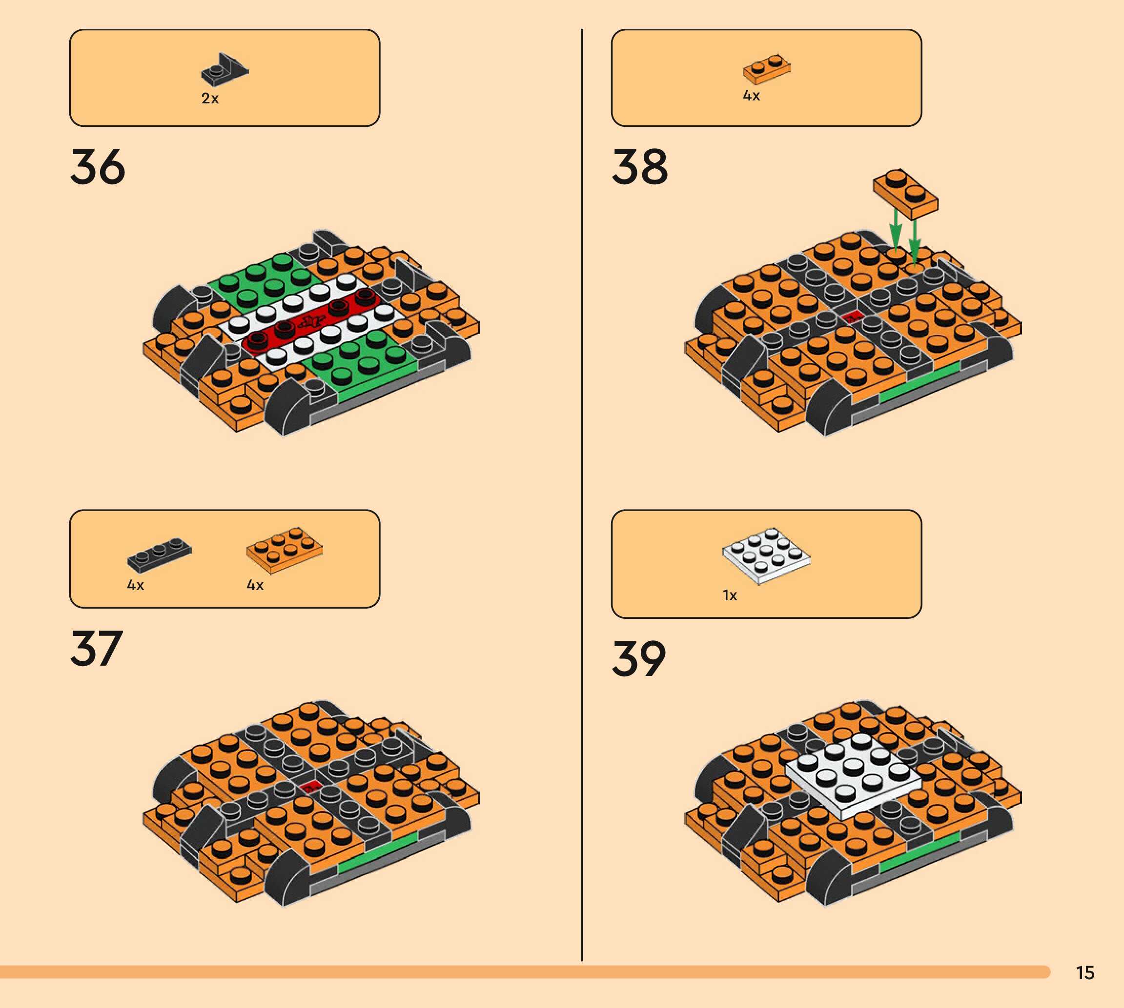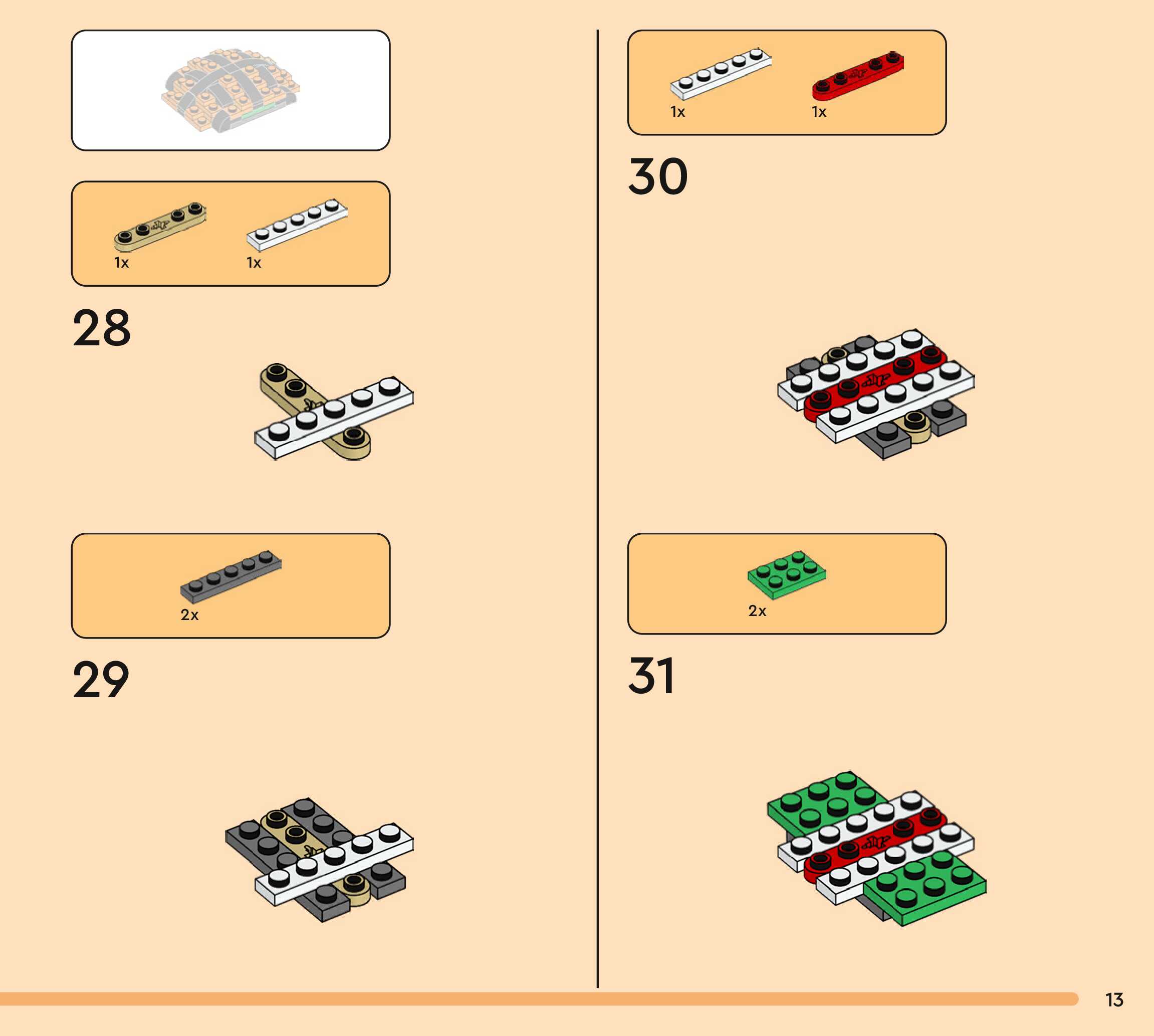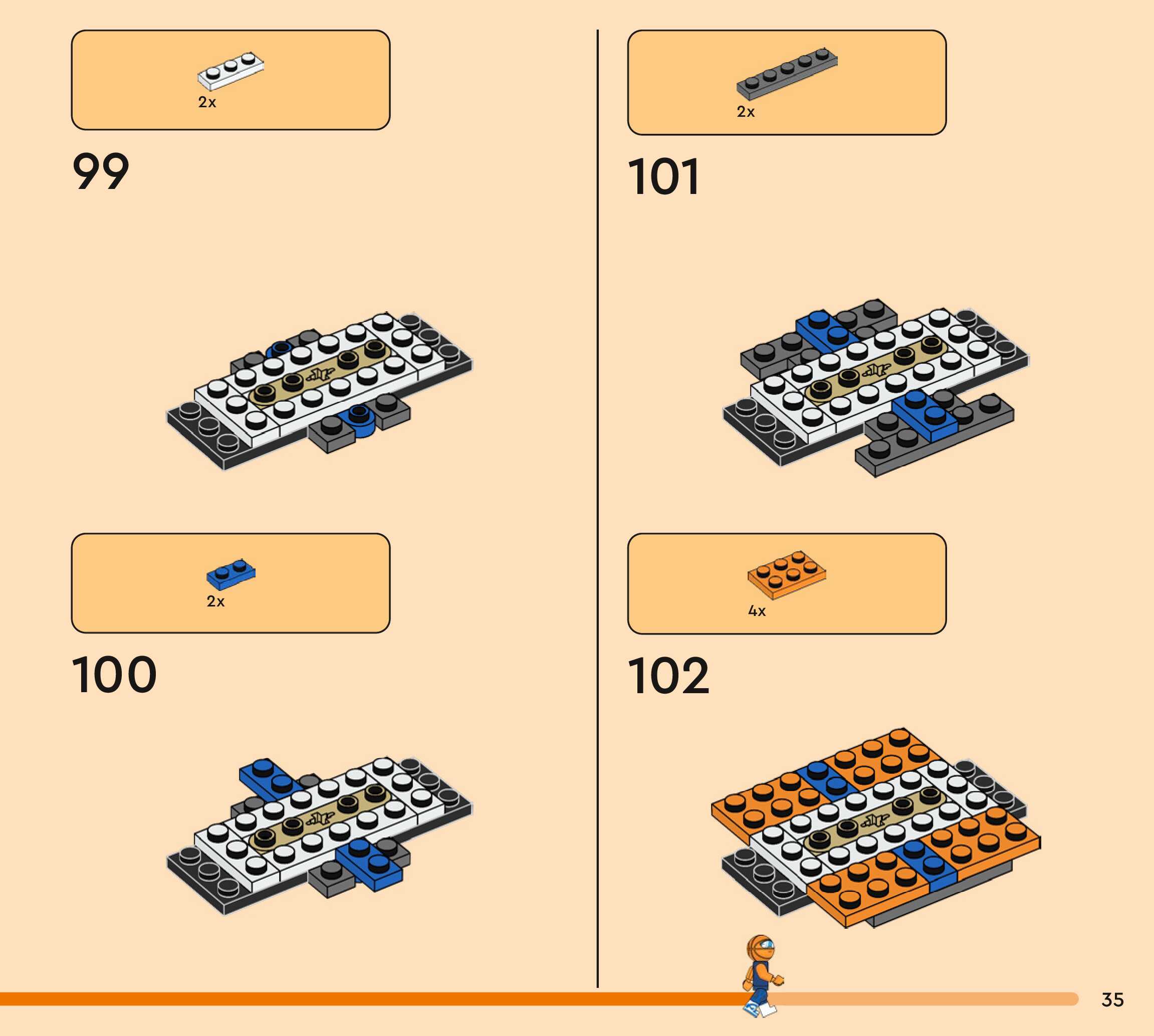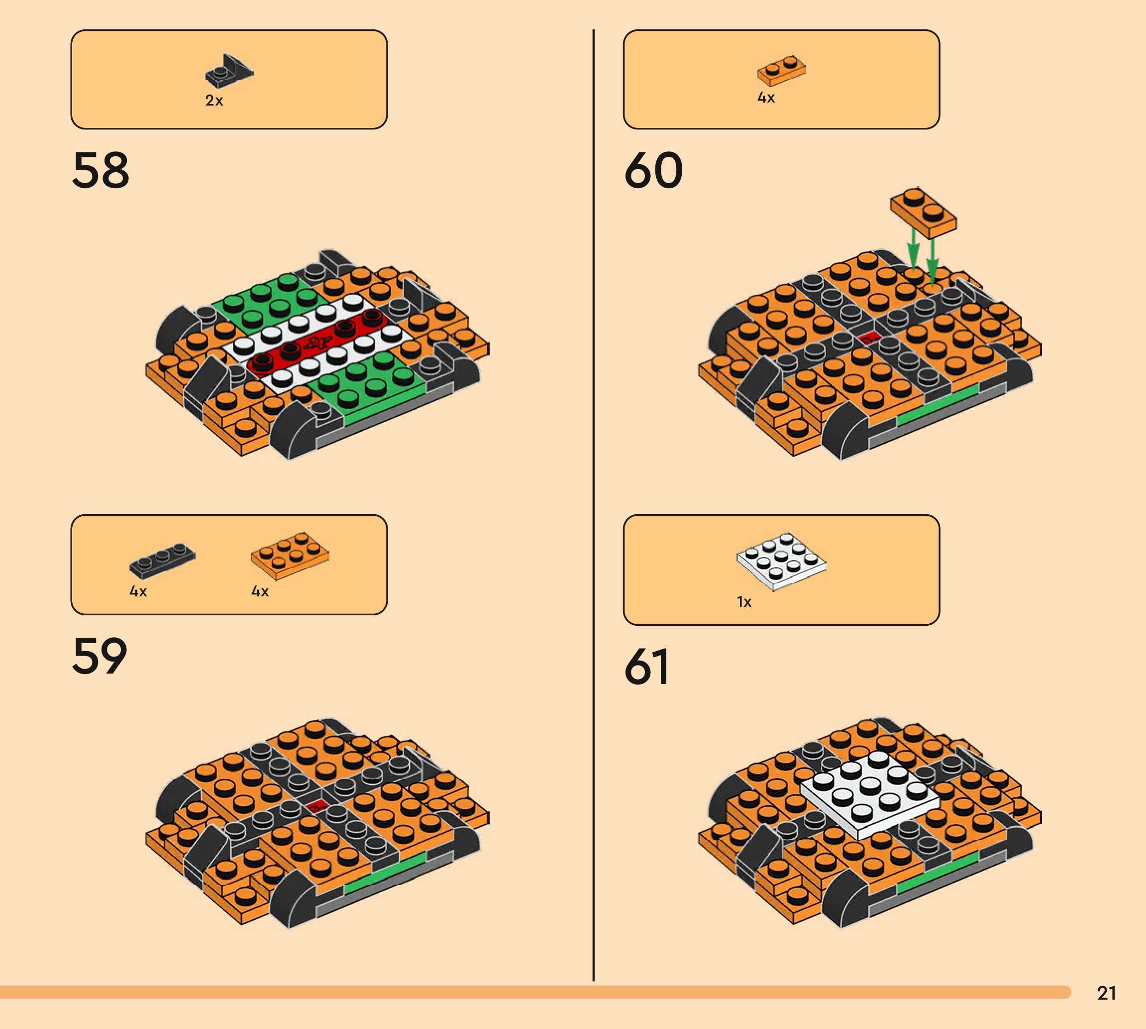 The assembly guide is prepared in a very understandable way for children and adult LEGO enthusiasts. A total of 284 picture galleries are shown, explaining the step-by-step construction stages for 3 different structures.