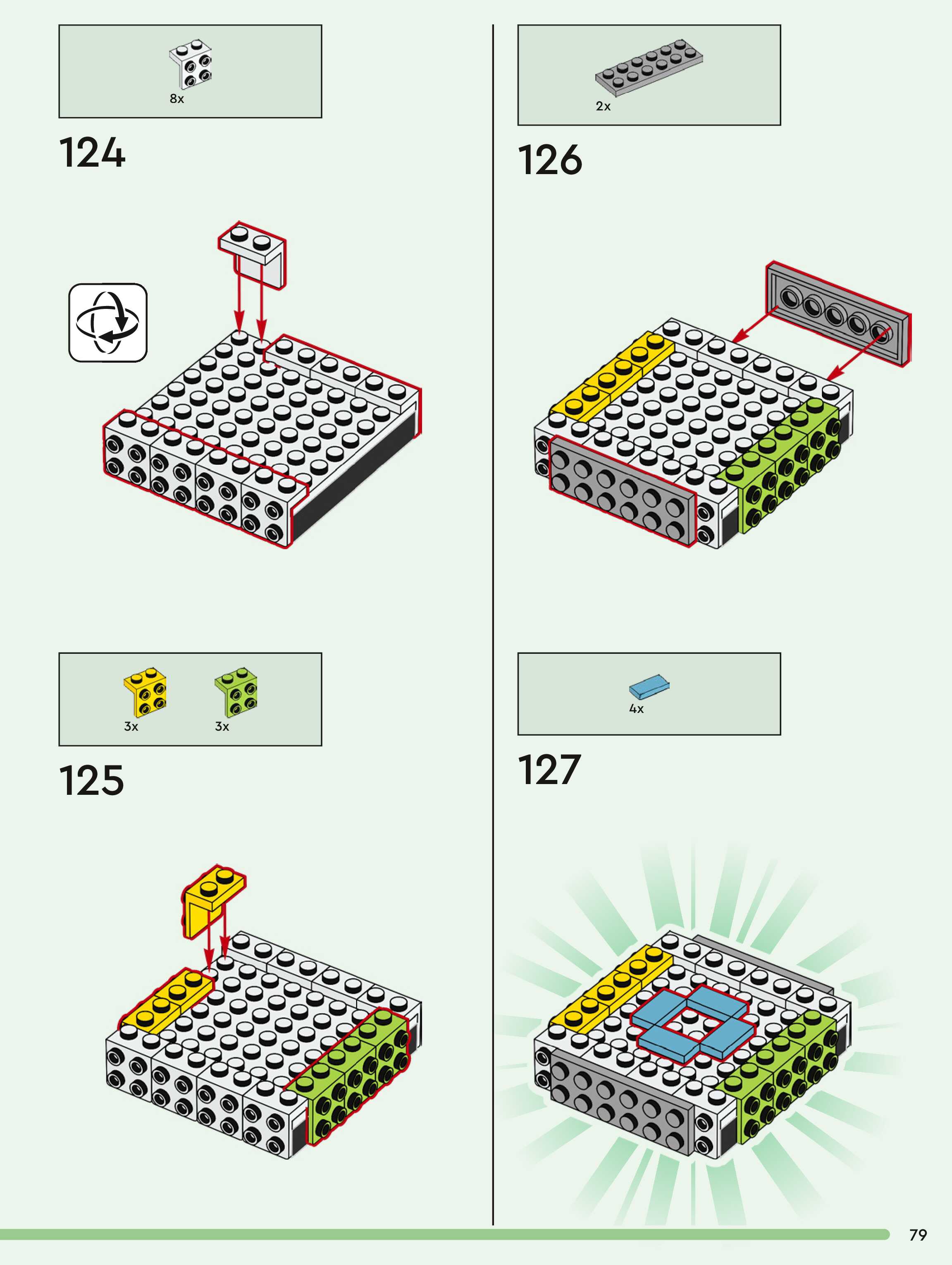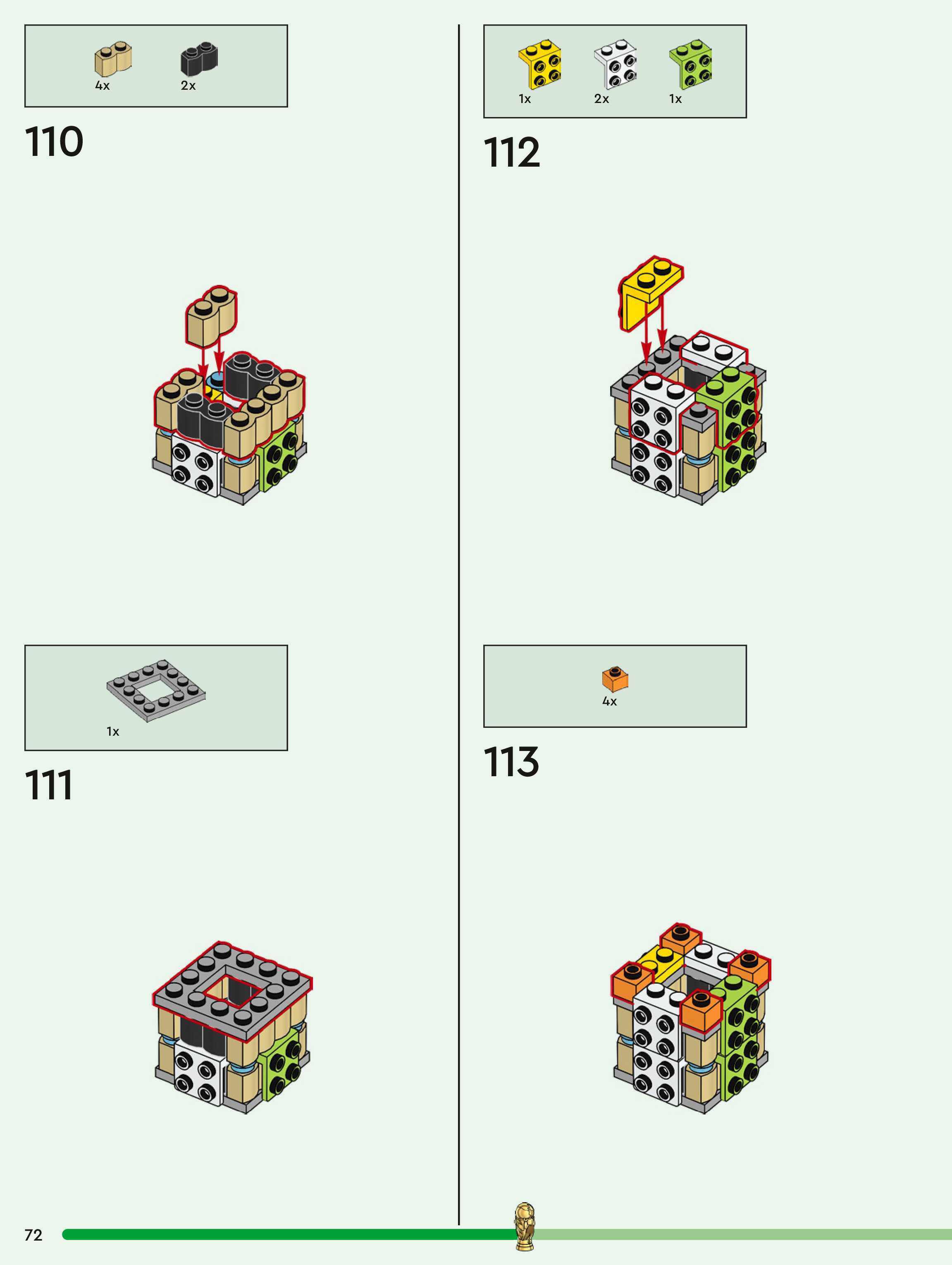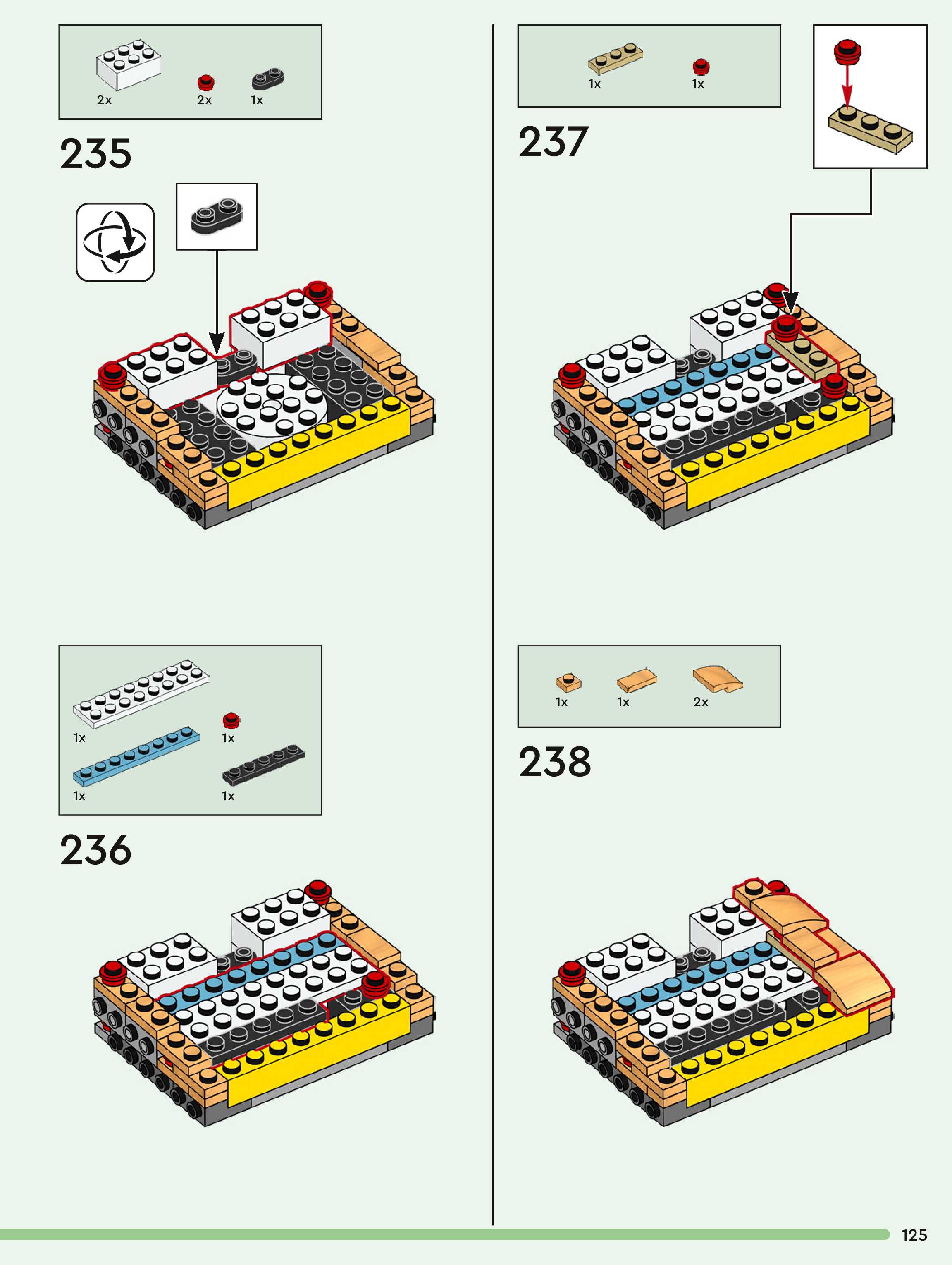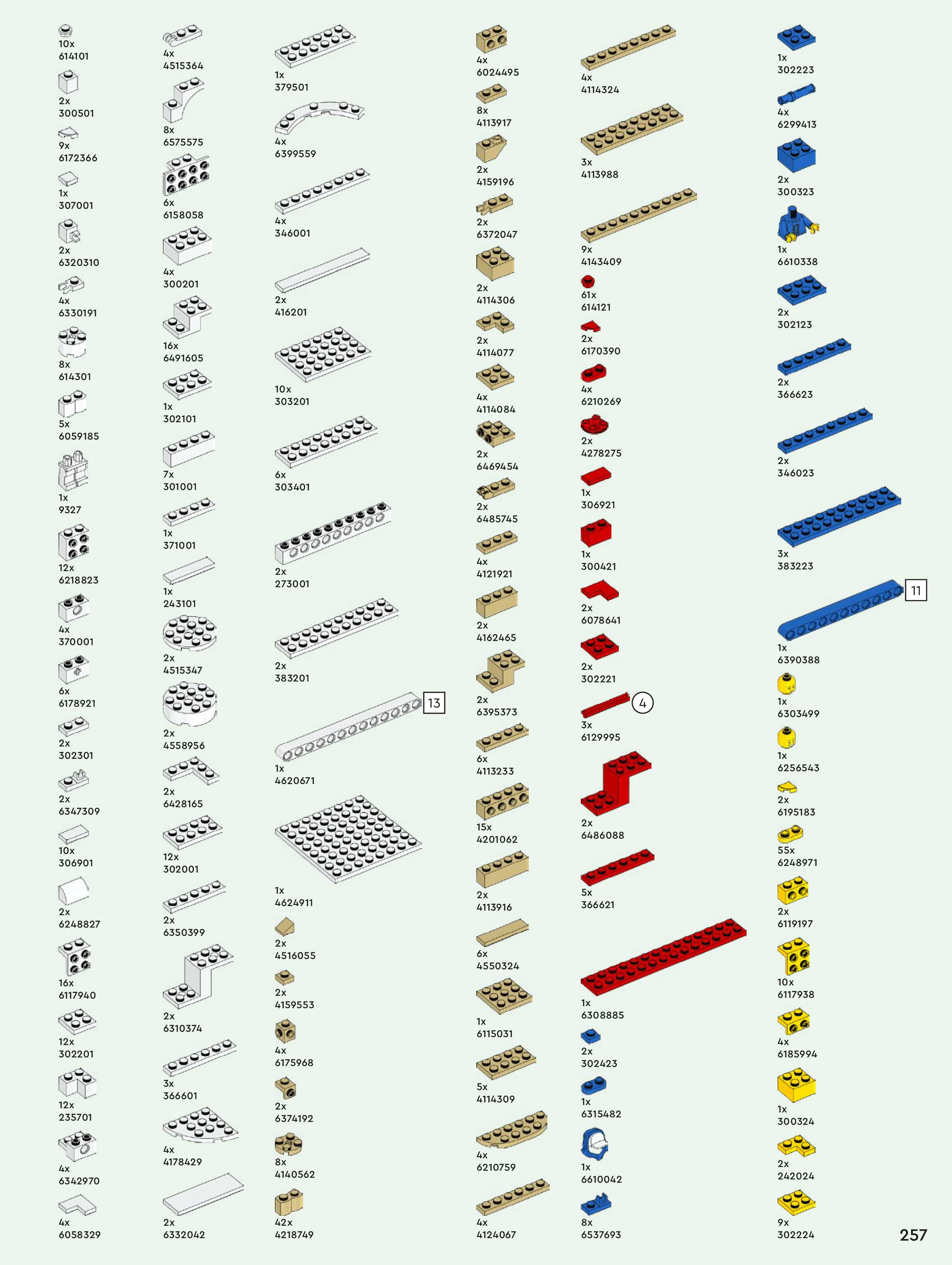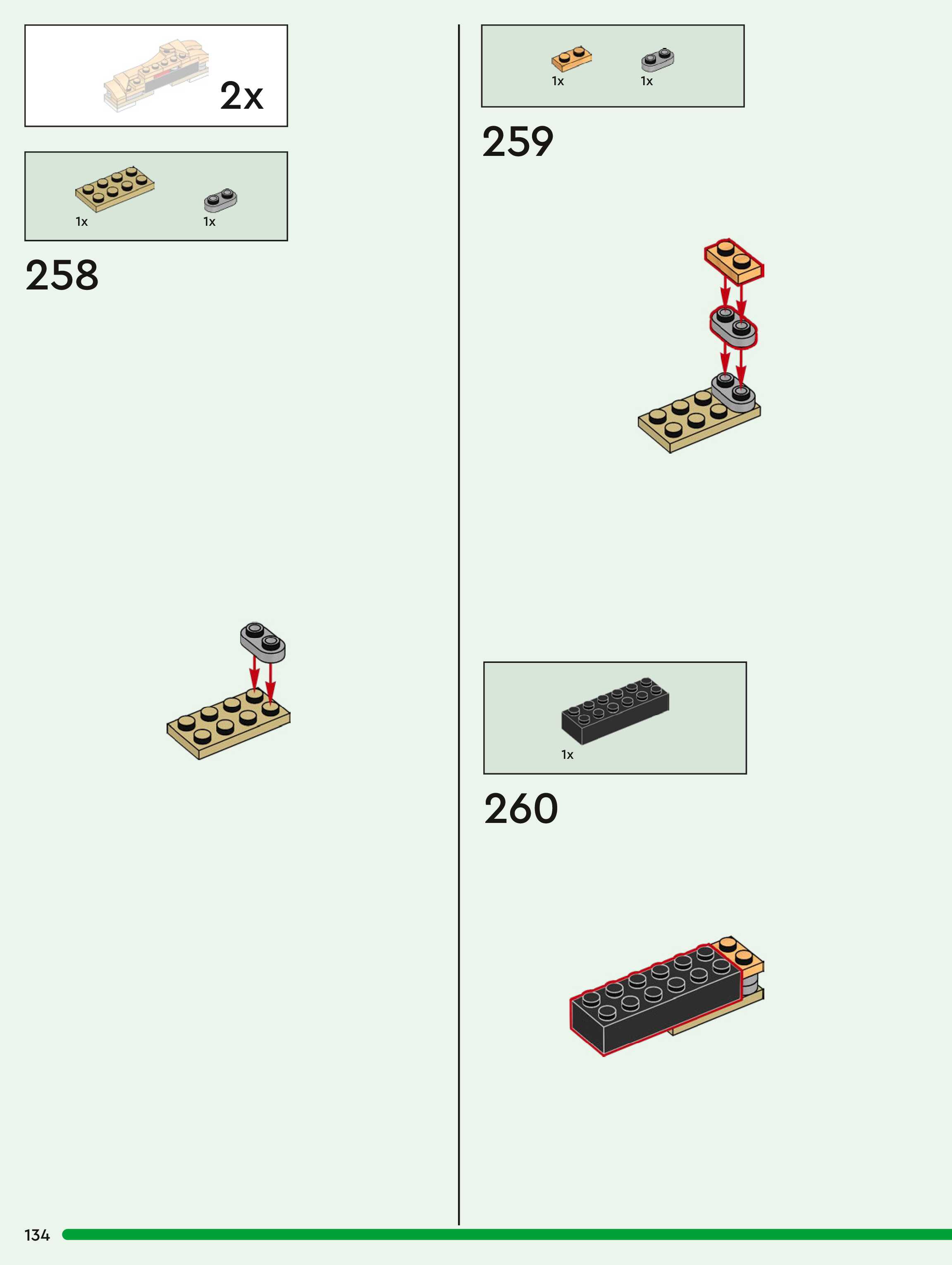 The assembly guide is prepared in a very understandable way for children and adult LEGO enthusiasts. A total of 260 picture galleries are shown, explaining the step-by-step construction stages for 1 different structures.