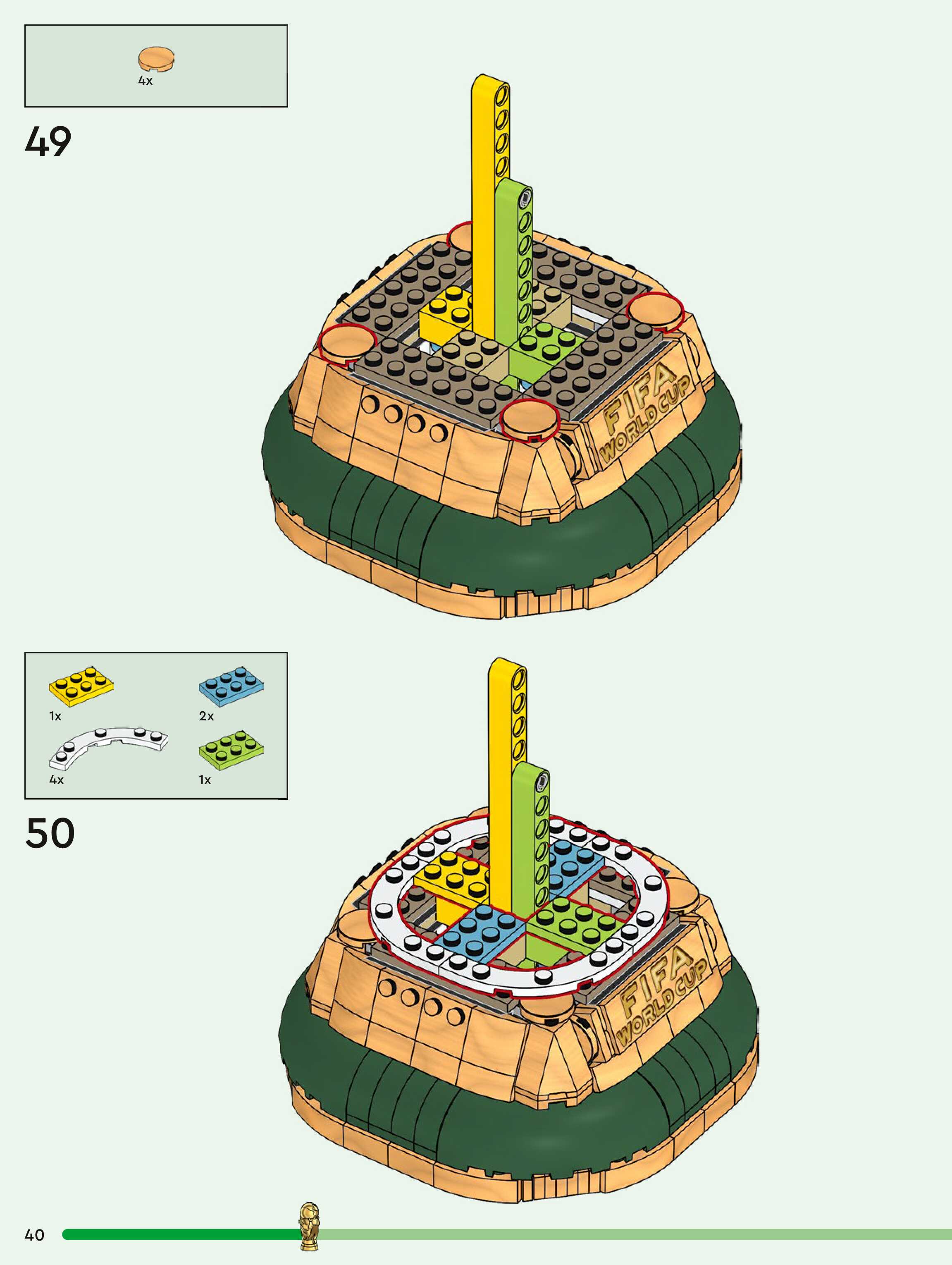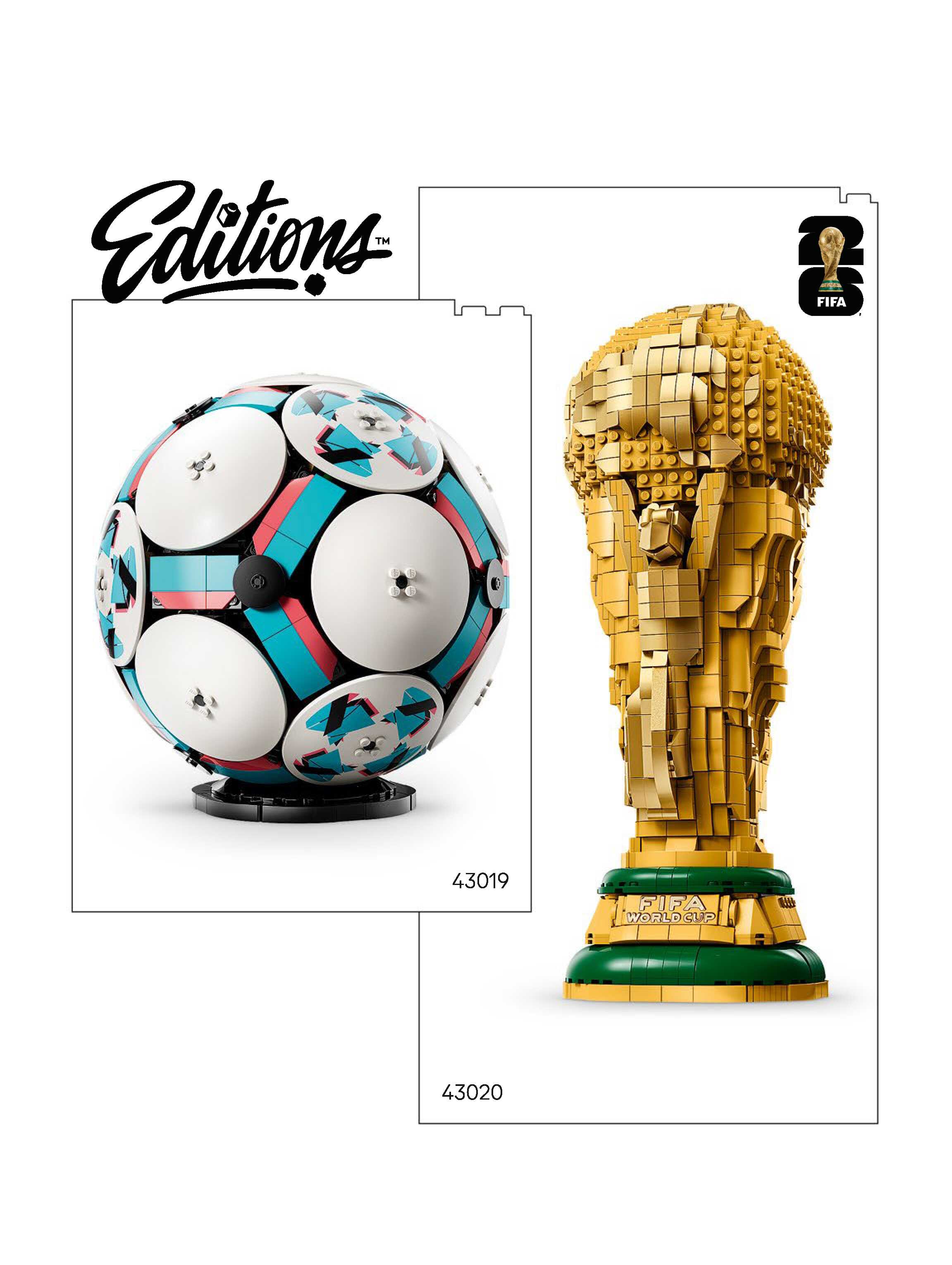 On this page you can find the original construction manual for the LEGO 43020 set. With the assembly manual you can easily learn how to build the FIFA World Cup™ Official Trophy step by step. The set was released in 2026.