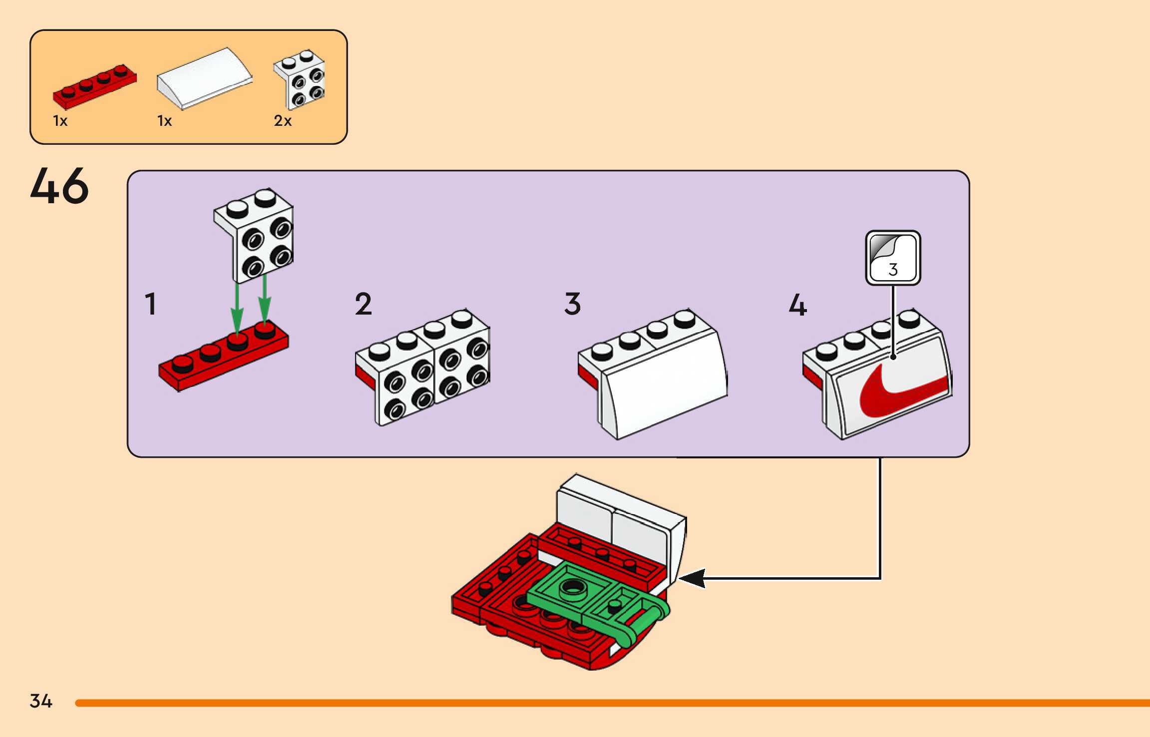 On this page you can find the original construction manual for the LEGO 43021 set. With the assembly manual you can easily learn how to build the Nike Dunk Trickshot step by step. The set was released in 2025.