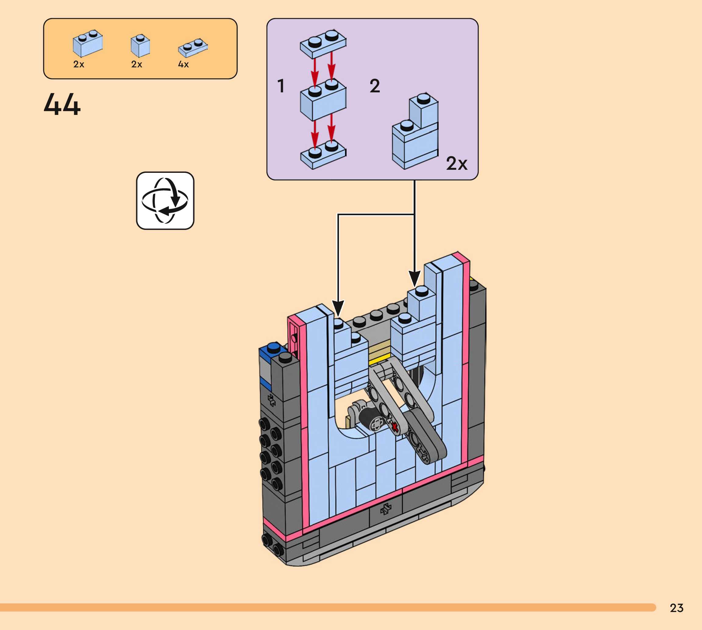 The assembly guide is prepared in a very understandable way for children and adult LEGO enthusiasts. A total of 144 picture galleries are shown, explaining the step-by-step construction stages for 2 different structures.