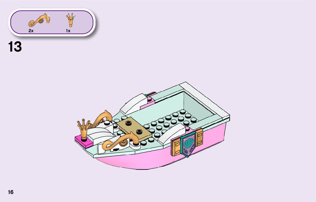 On this page you can find the original construction manual for the LEGO 43191 set. With the assembly manual you can easily learn how to build the 43191 Ariel’s Celebration Boat step by step. The set was released in 2021.