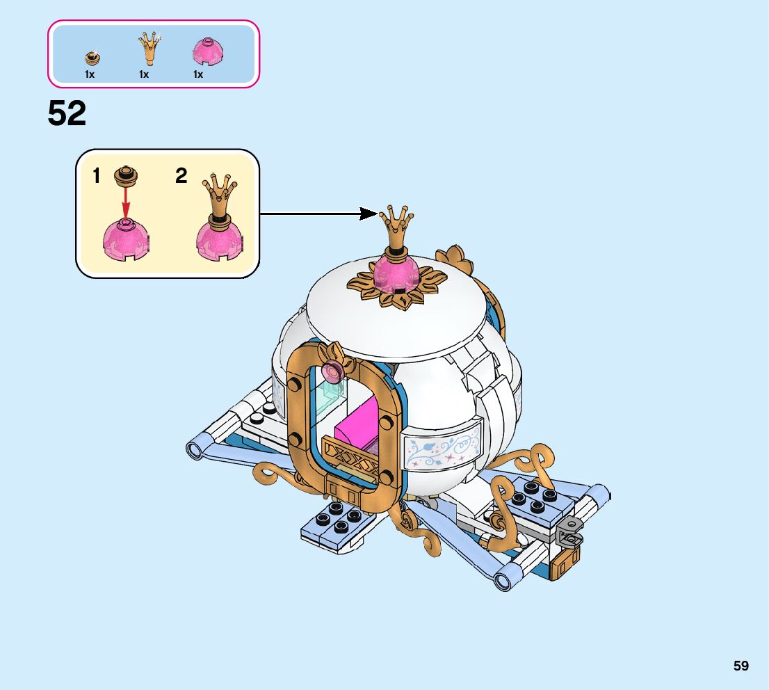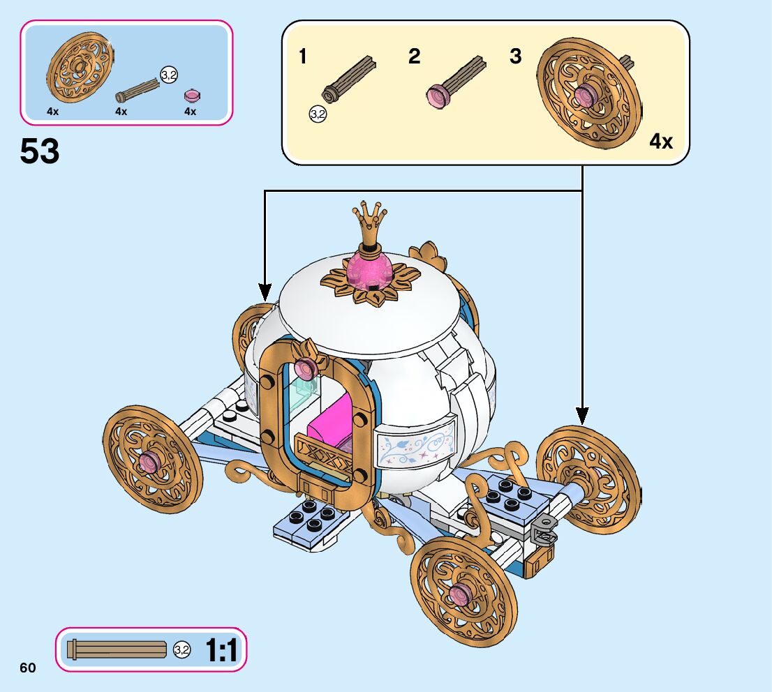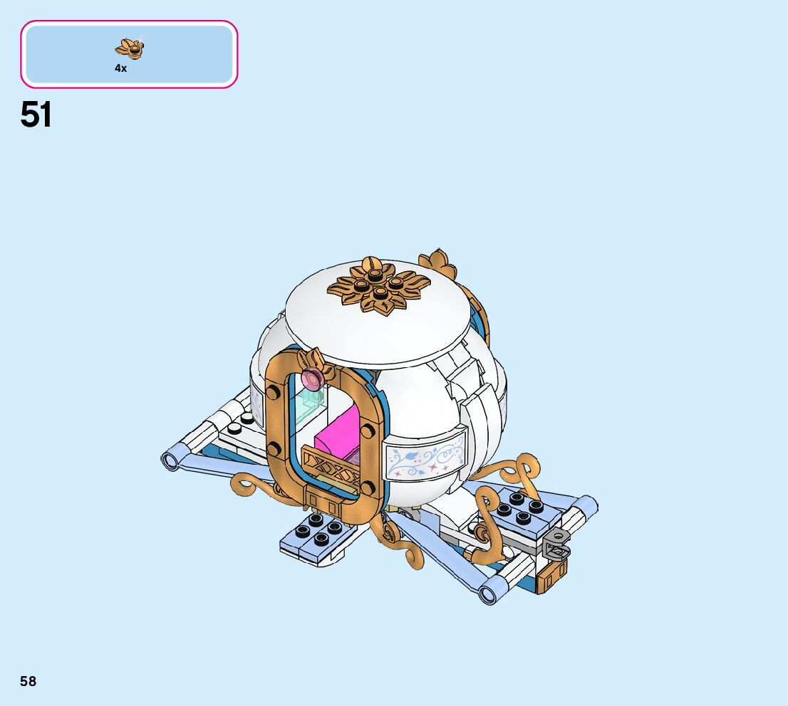 This page shares information about LEGO 43192 Cinderella’s Royal Carriage manual, LEGO 43192 PDF instructions, LEGO 43192 Cinderella’s Royal Carriage building guide online, How to build 43192 Cinderella’s Royal Carriage LEGO.