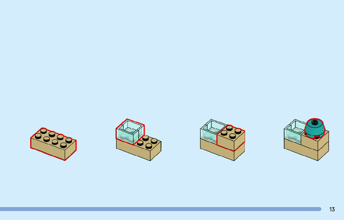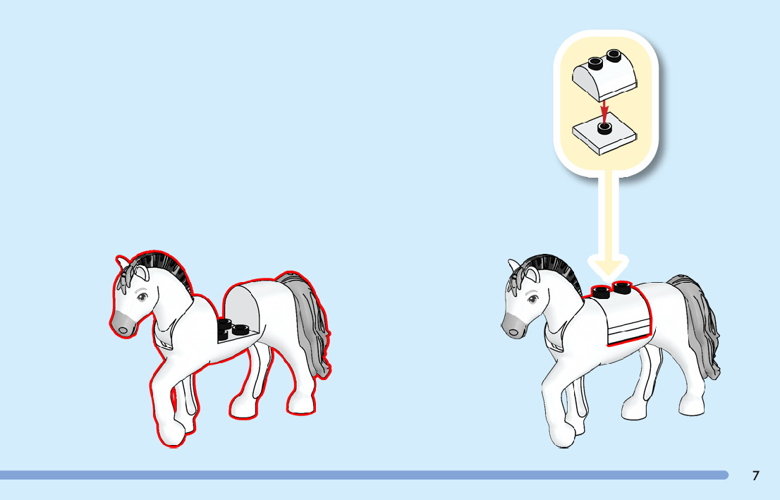 The assembly guide is prepared in a very understandable way for children and adult LEGO enthusiasts. A total of 104 picture galleries are shown, explaining the step-by-step construction stages for 2 different structures.