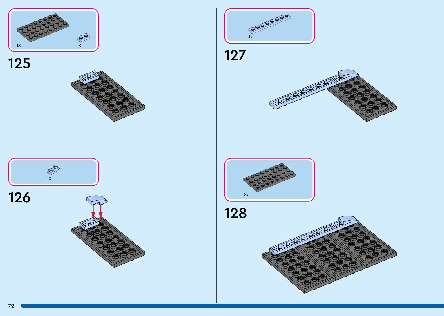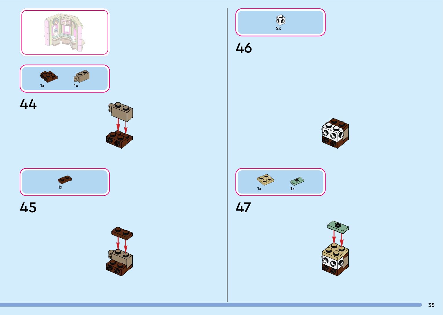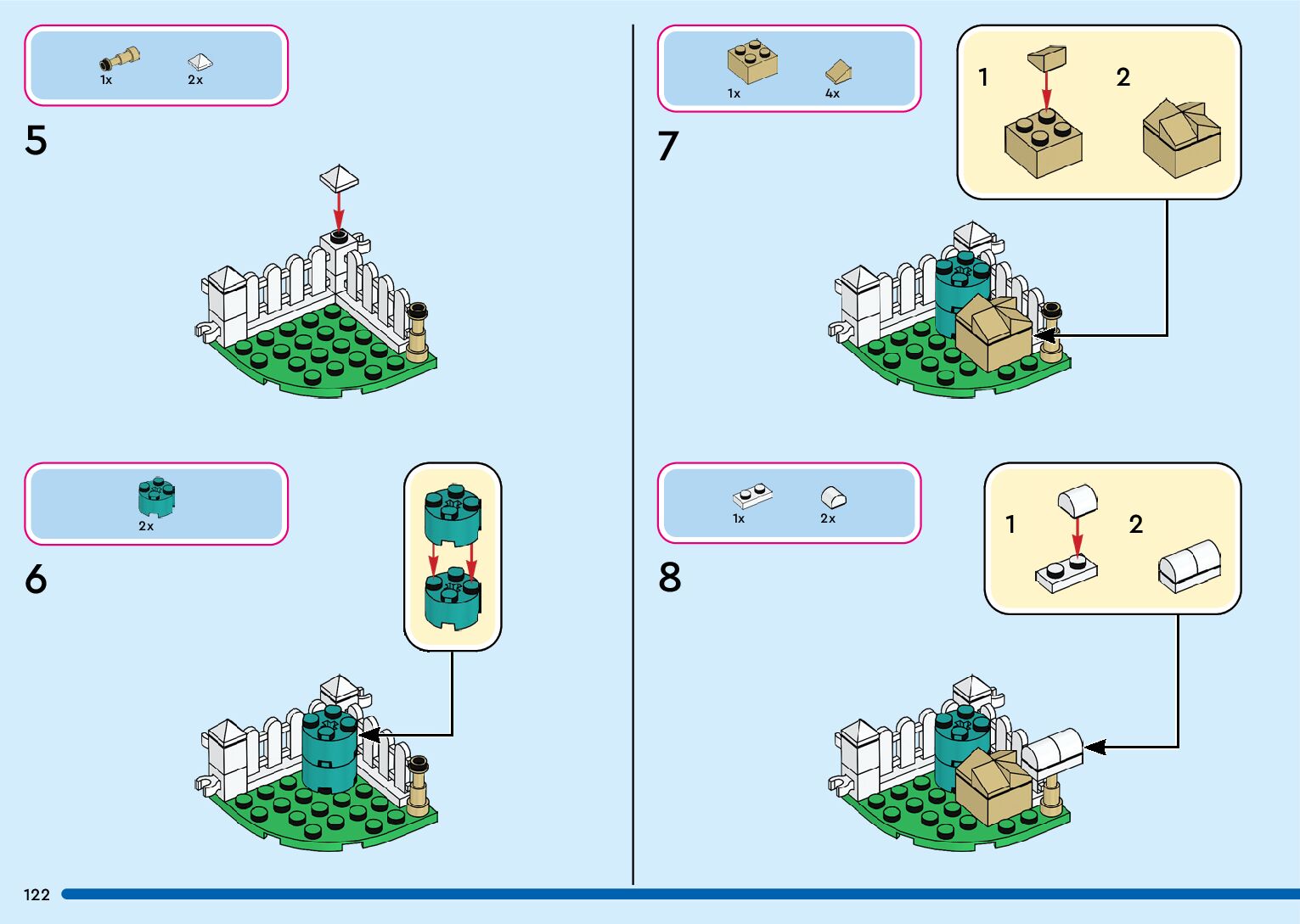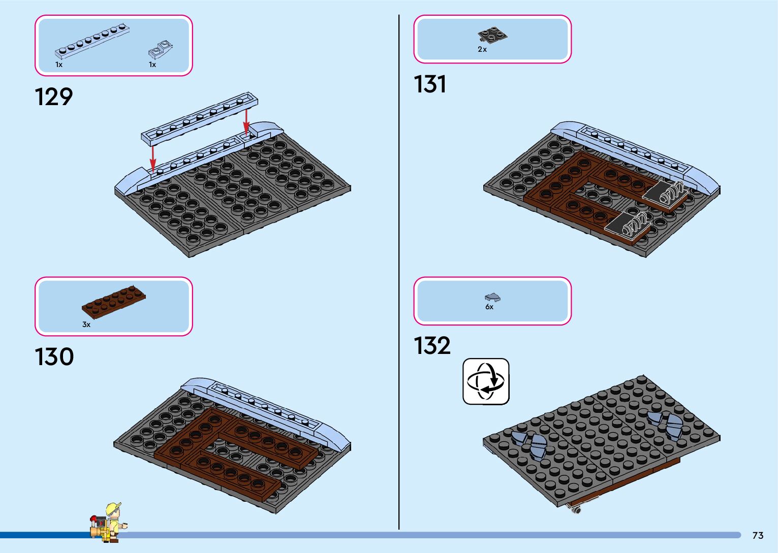 The assembly guide is prepared in a very understandable way for children and adult LEGO enthusiasts. A total of 132 picture galleries are shown, explaining the step-by-step construction stages for 1 different structures.