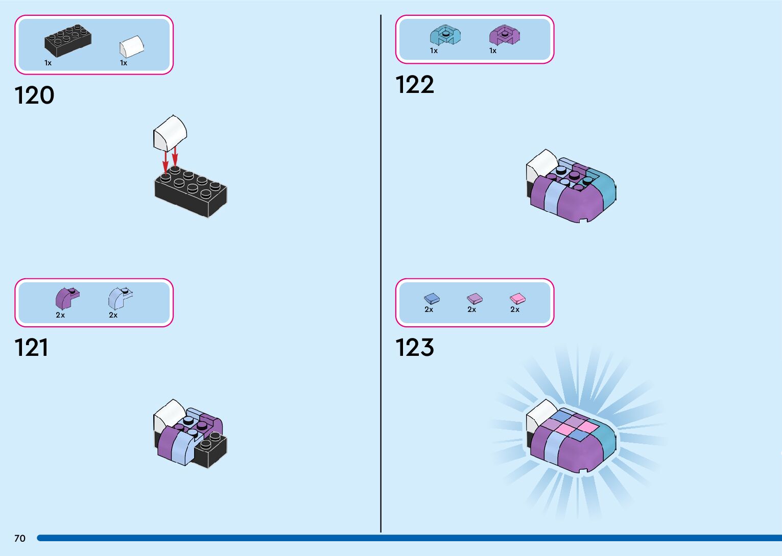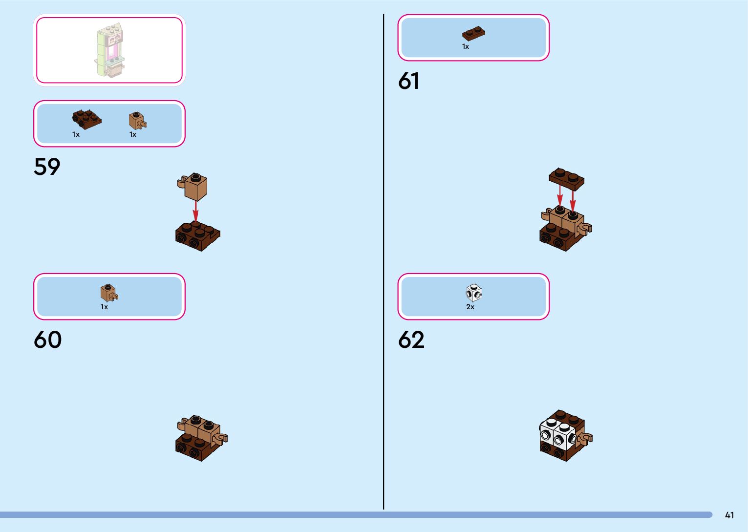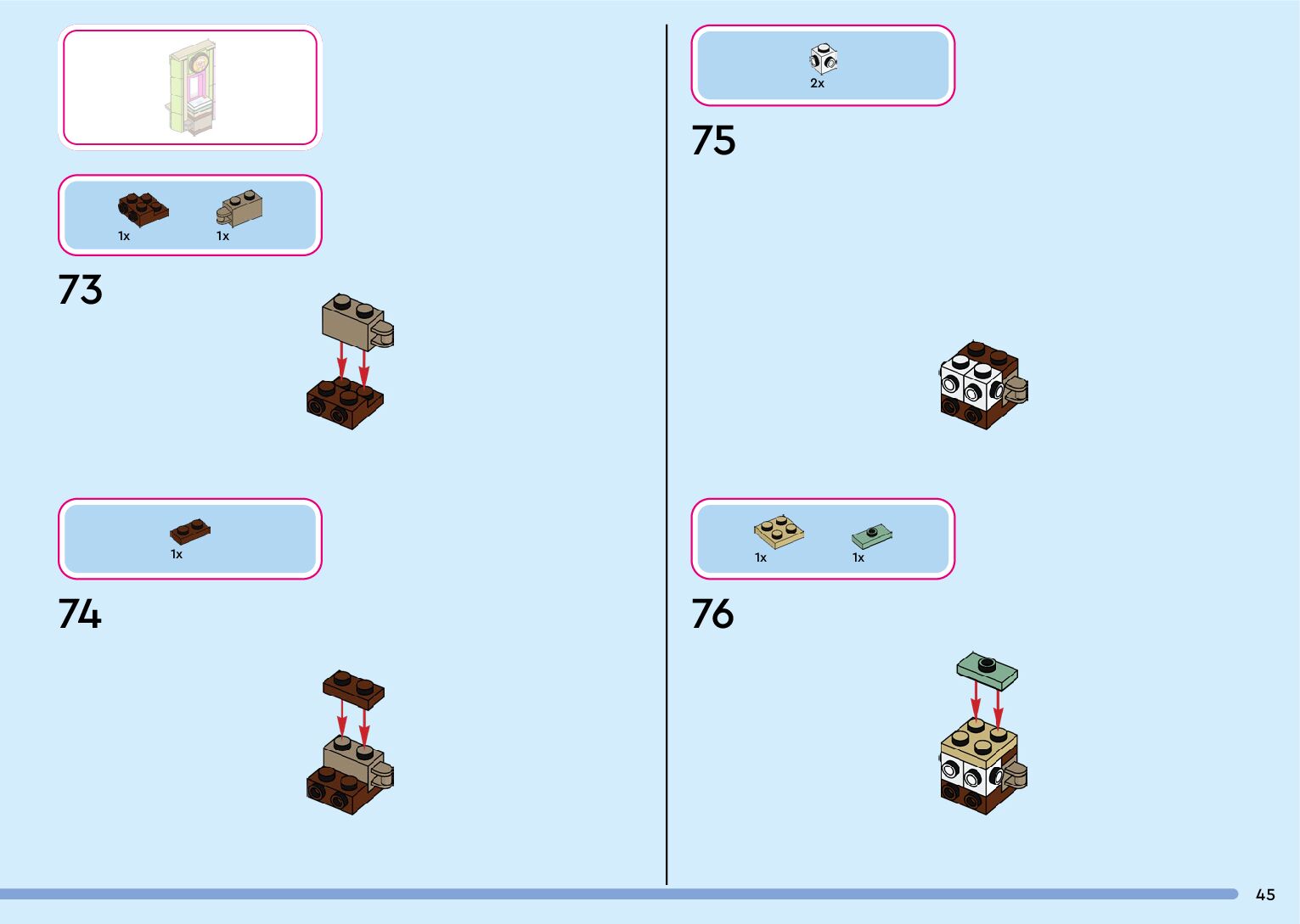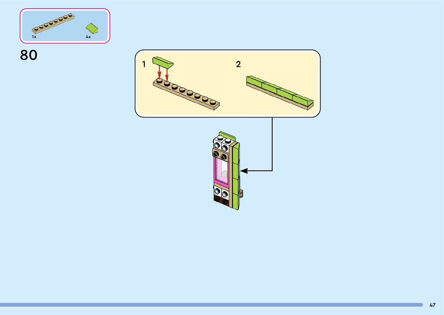 The assembly guide is prepared in a very understandable way for children and adult LEGO enthusiasts. A total of 132 picture galleries are shown, explaining the step-by-step construction stages for 1 different structures.