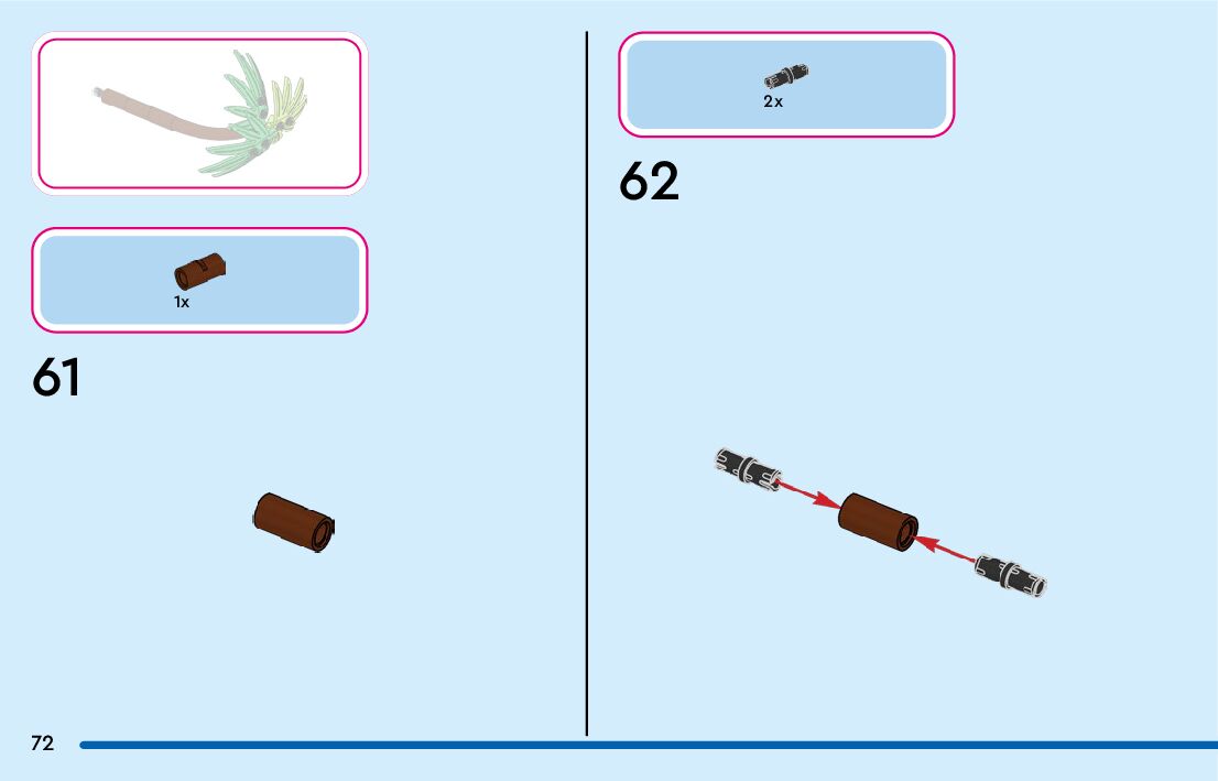 The assembly guide is prepared in a very understandable way for children and adult LEGO enthusiasts. A total of 168 picture galleries are shown, explaining the step-by-step construction stages for 2 different structures.