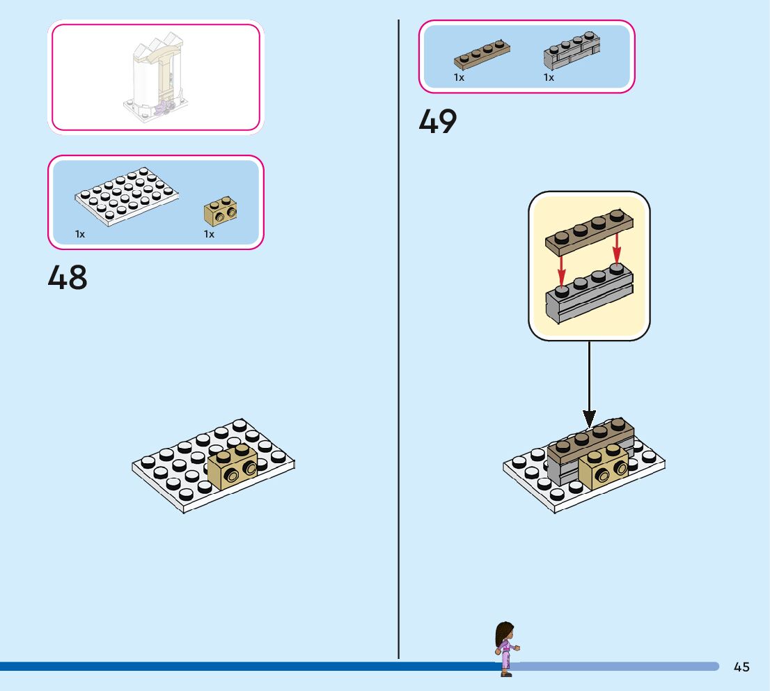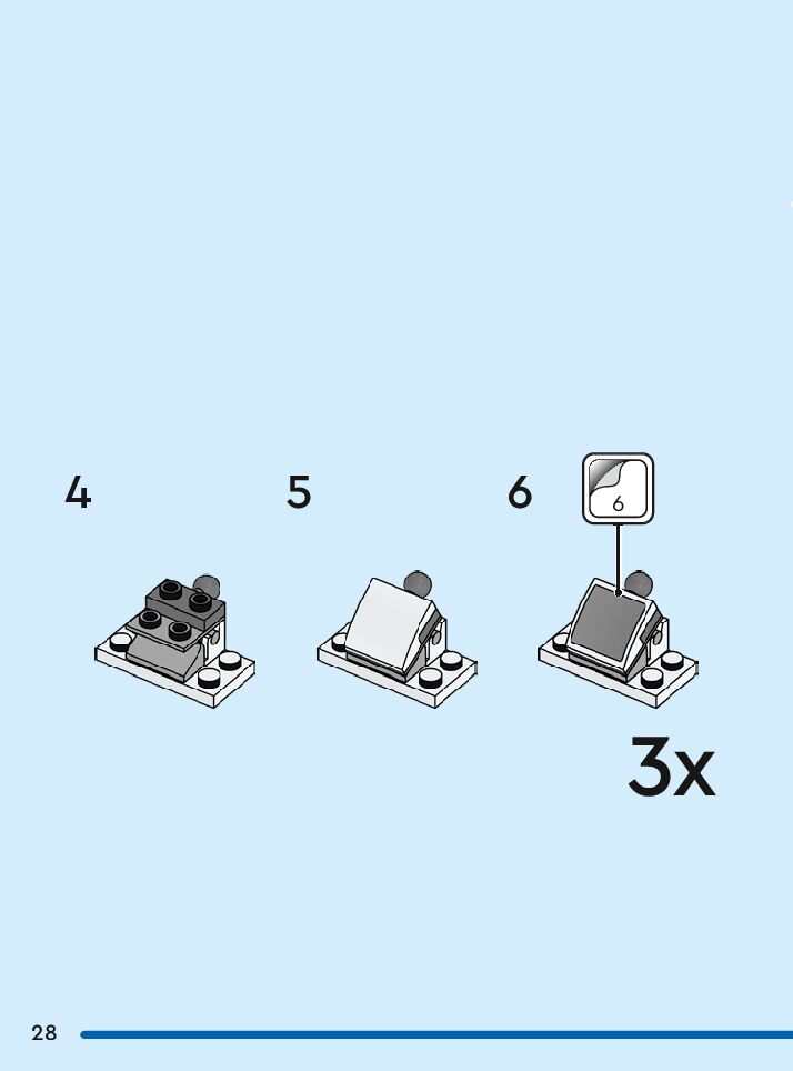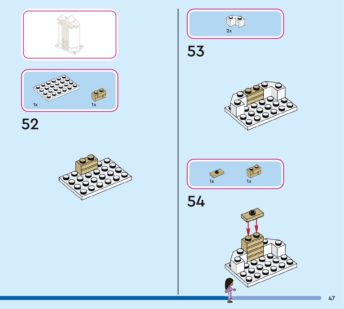 The assembly guide is prepared in a very understandable way for children and adult LEGO enthusiasts. A total of 220 picture galleries are shown, explaining the step-by-step construction stages for 4 different structures.