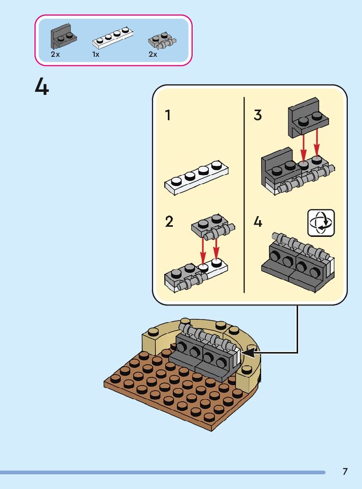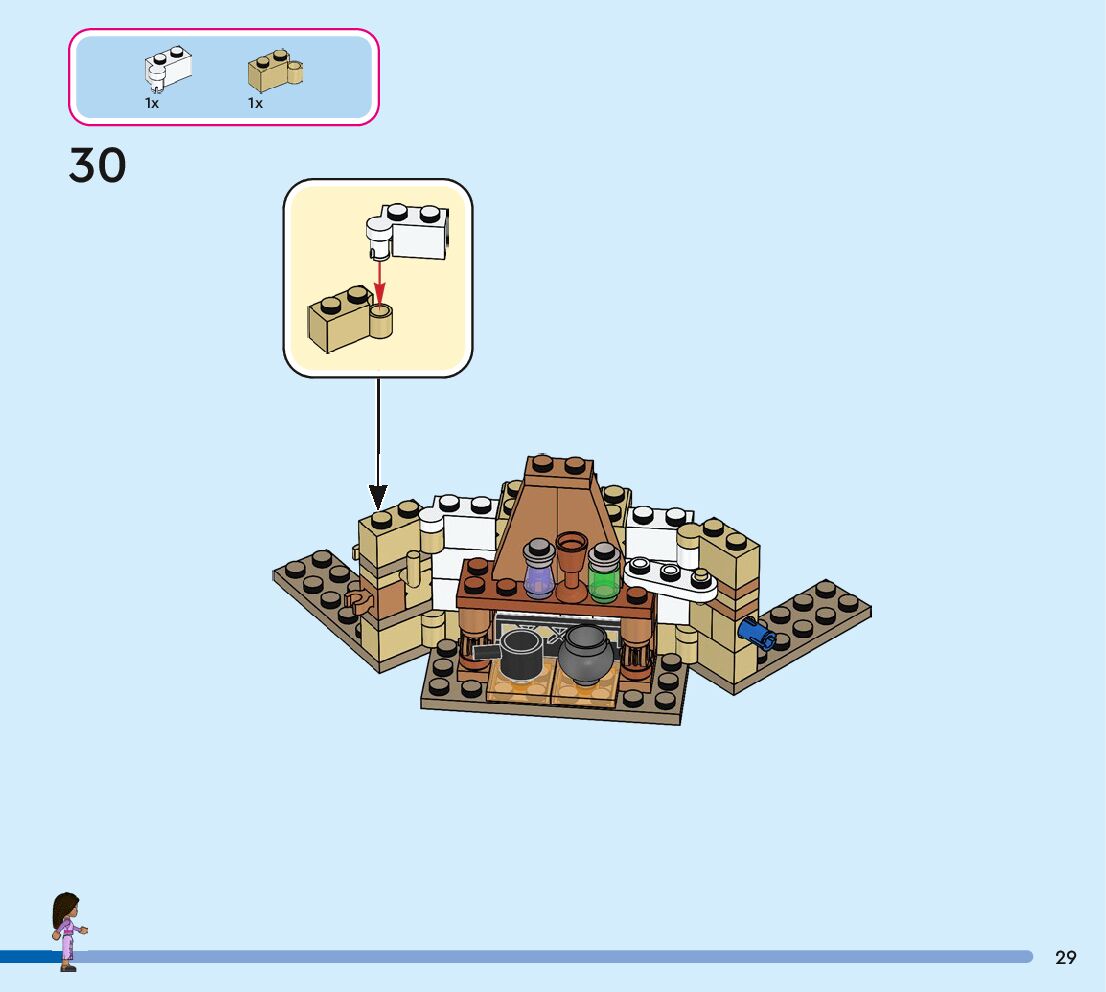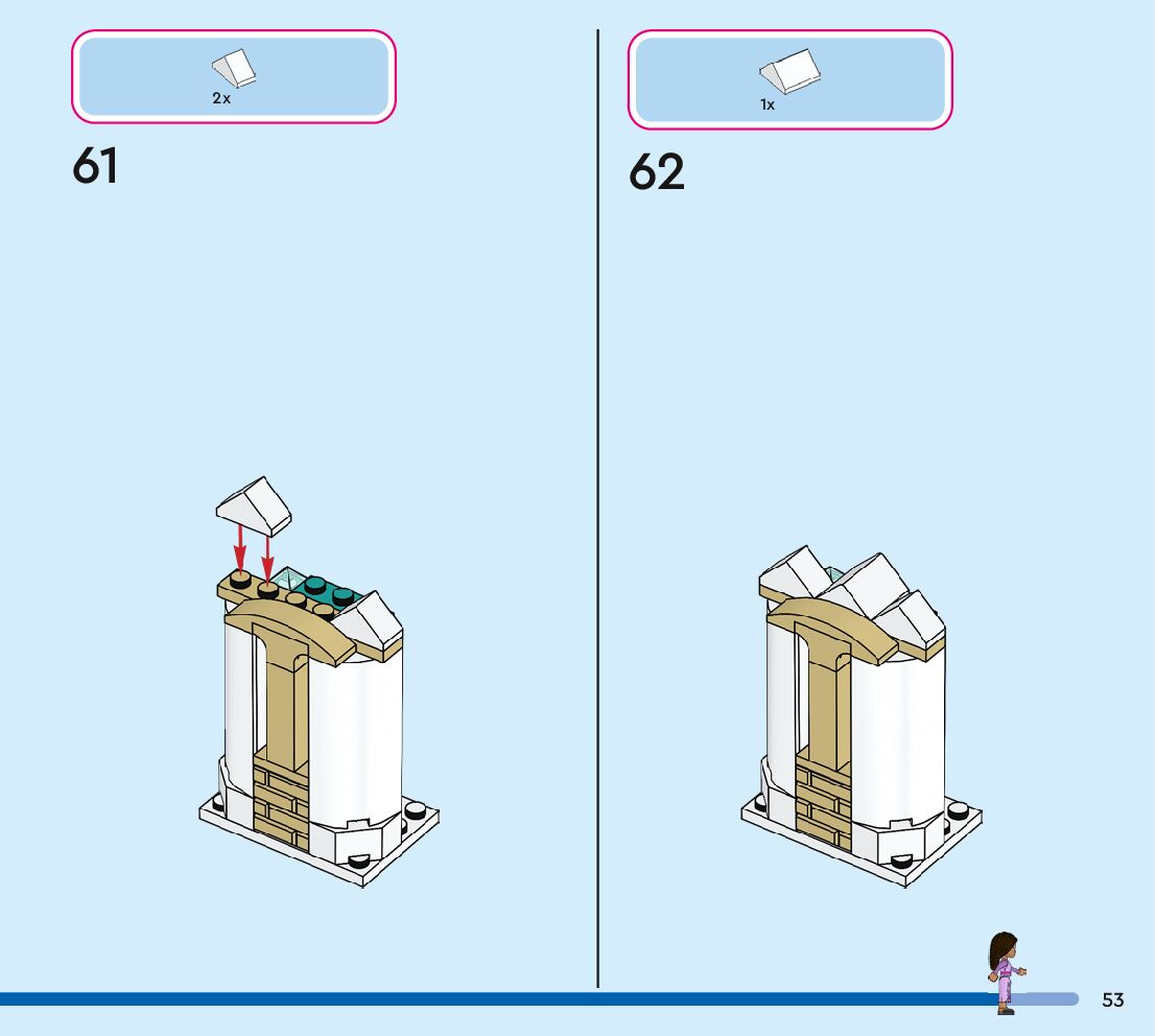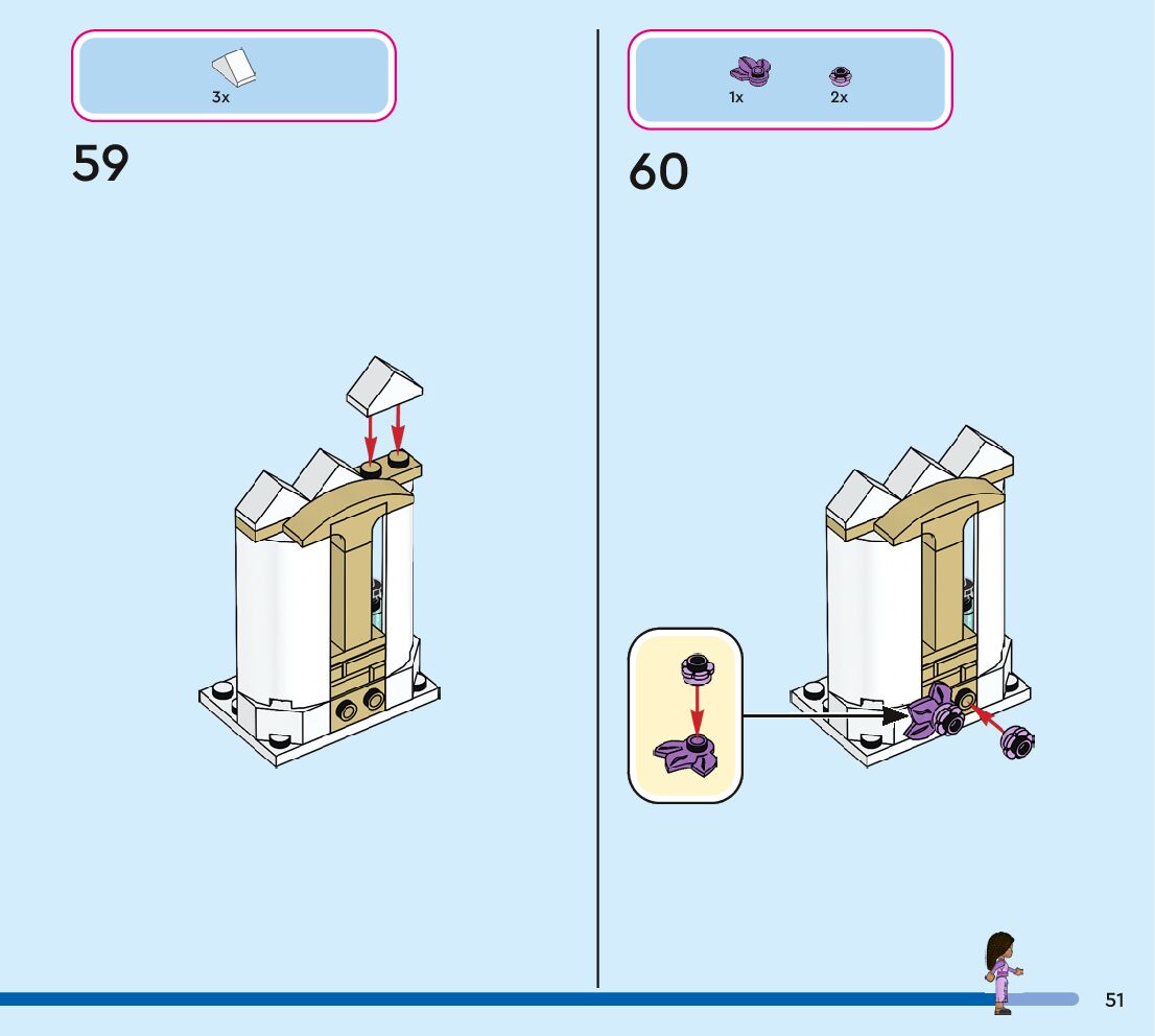 The assembly guide is prepared in a very understandable way for children and adult LEGO enthusiasts. A total of 220 picture galleries are shown, explaining the step-by-step construction stages for 4 different structures.