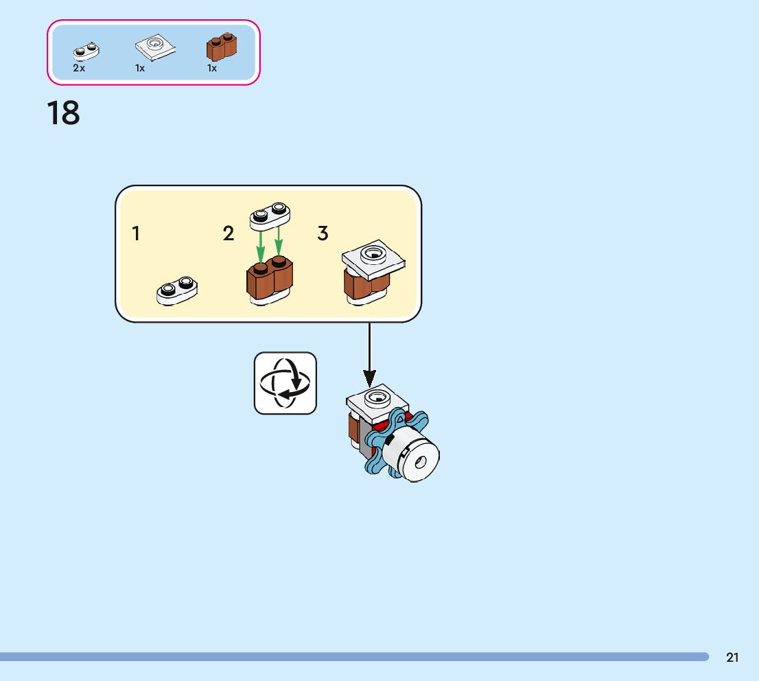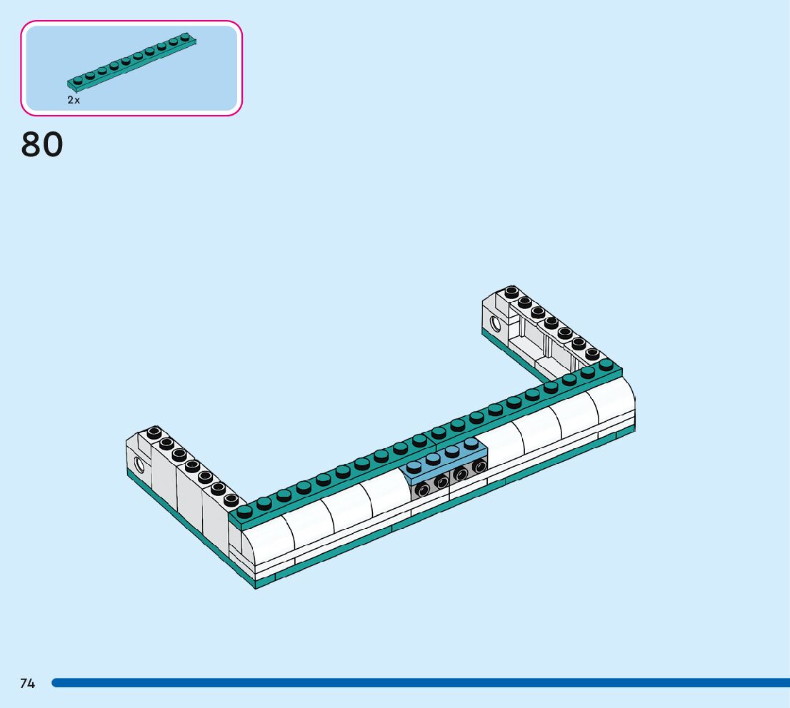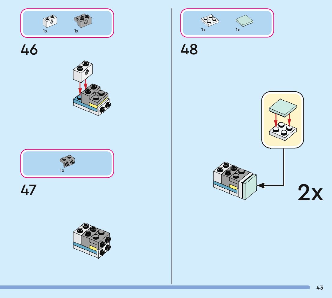 The assembly guide is prepared in a very understandable way for children and adult LEGO enthusiasts. A total of 100 picture galleries are shown, explaining the step-by-step construction stages for 1 different structures.