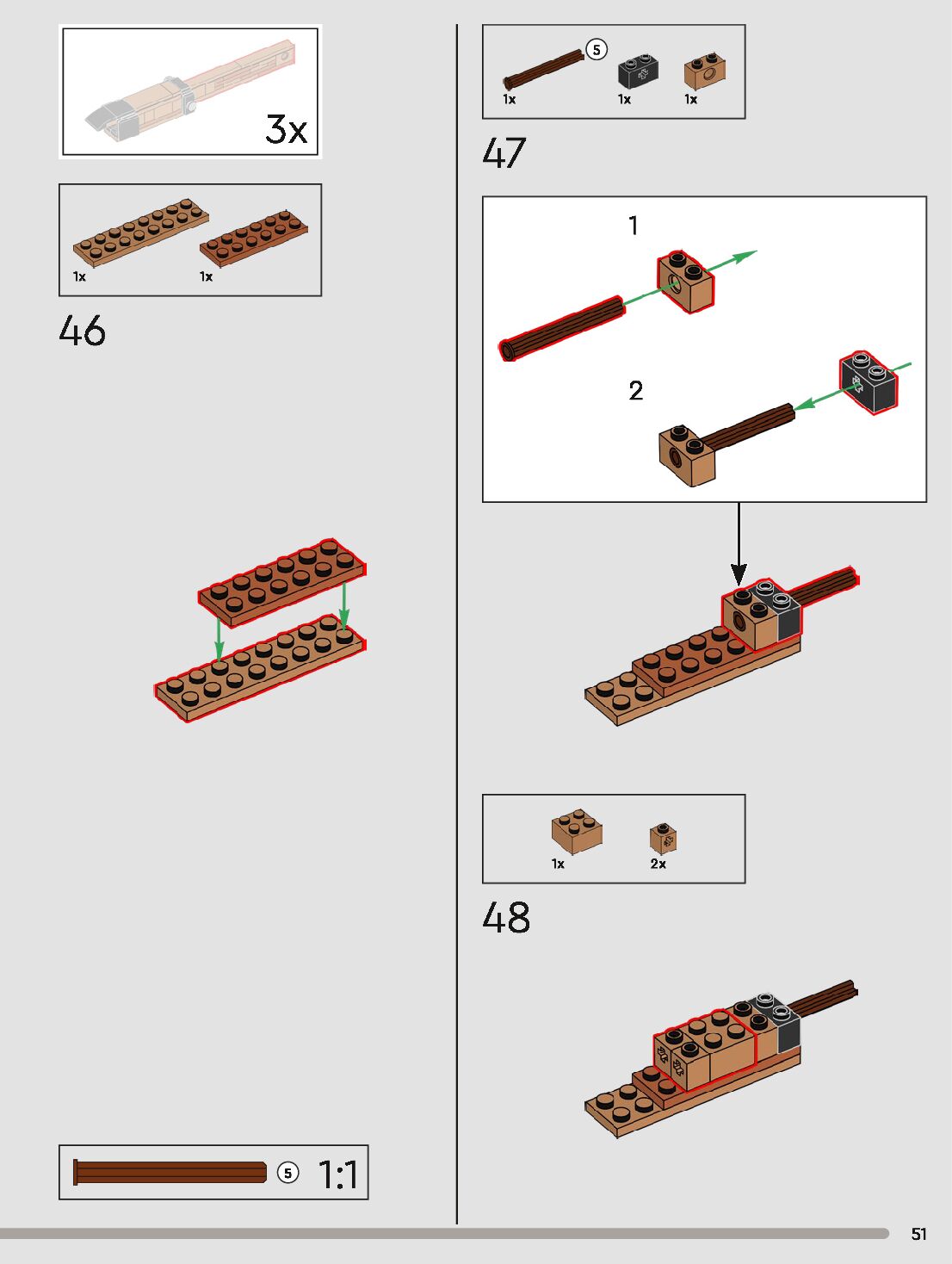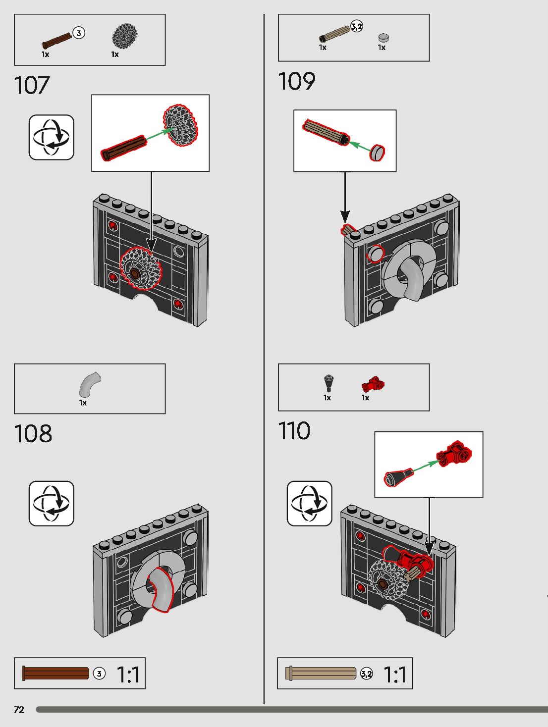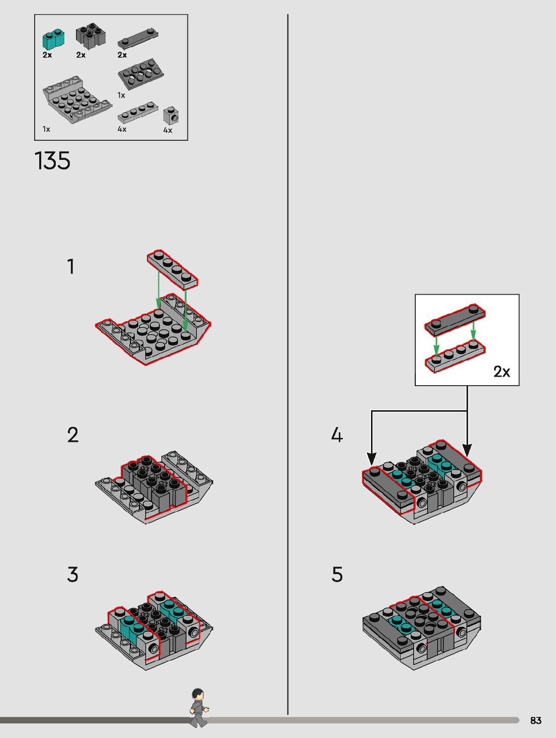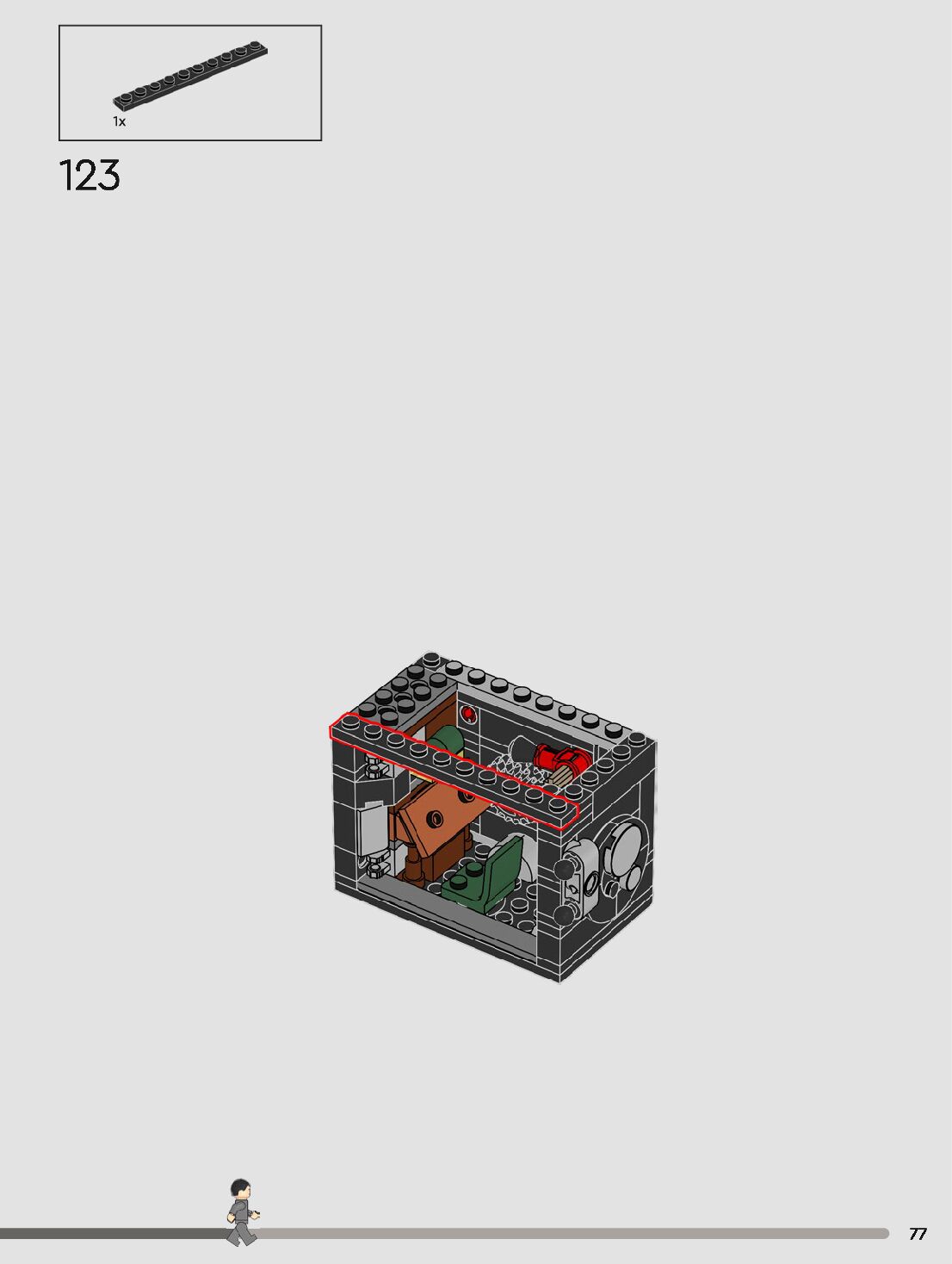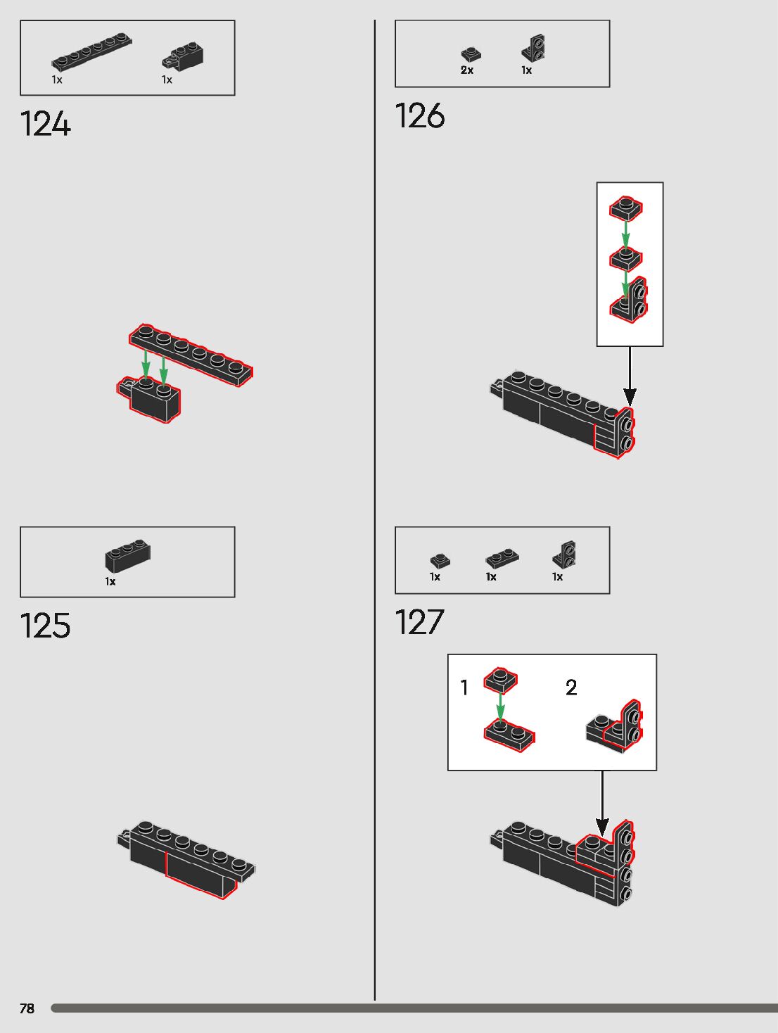 The assembly guide is prepared in a very understandable way for children and adult LEGO enthusiasts. A total of 120 picture galleries are shown, explaining the step-by-step construction stages for 1 different structures.