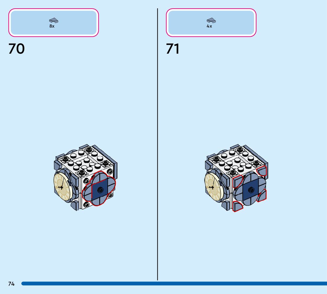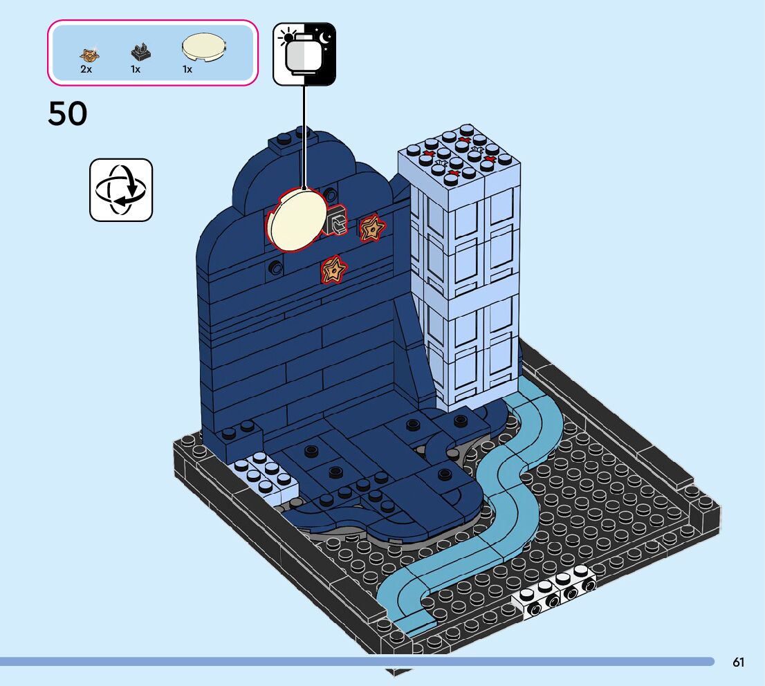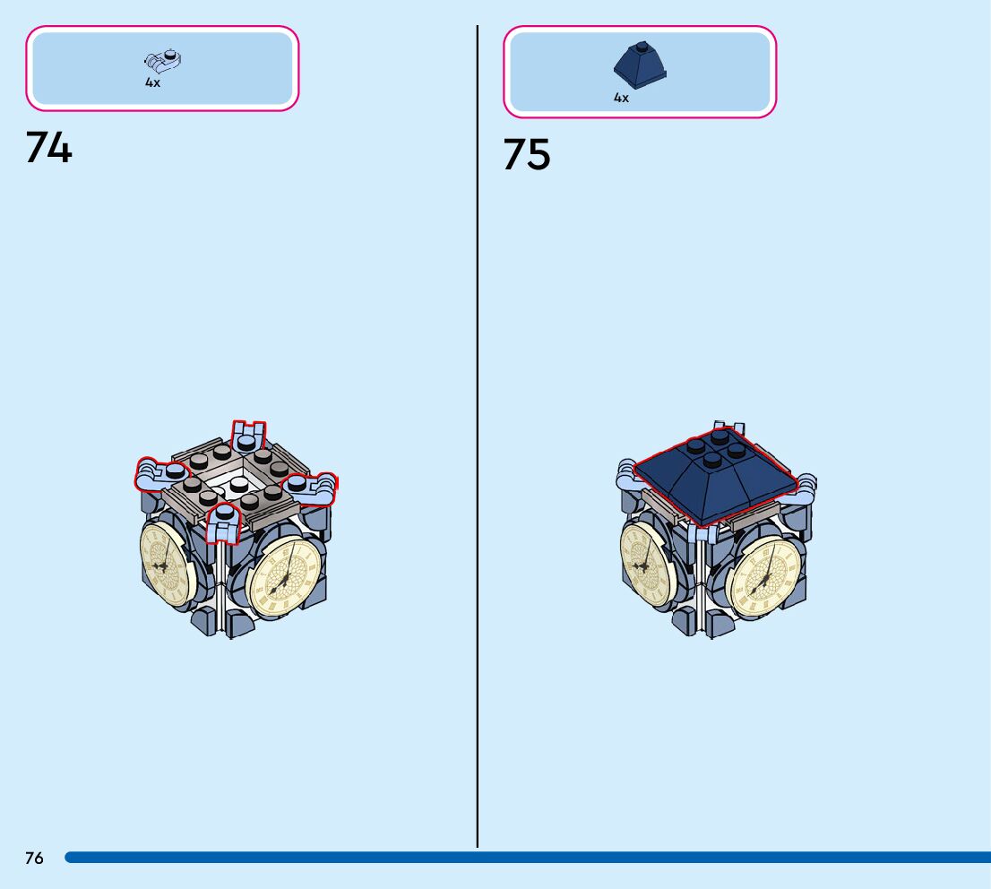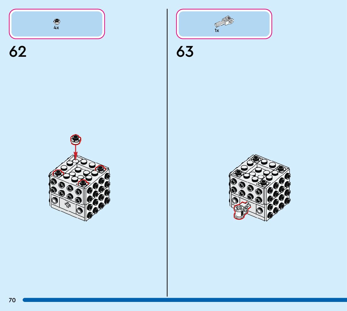 The assembly guide is prepared in a very understandable way for children and adult LEGO enthusiasts. A total of 124 picture galleries are shown, explaining the step-by-step construction stages for 1 different structures.