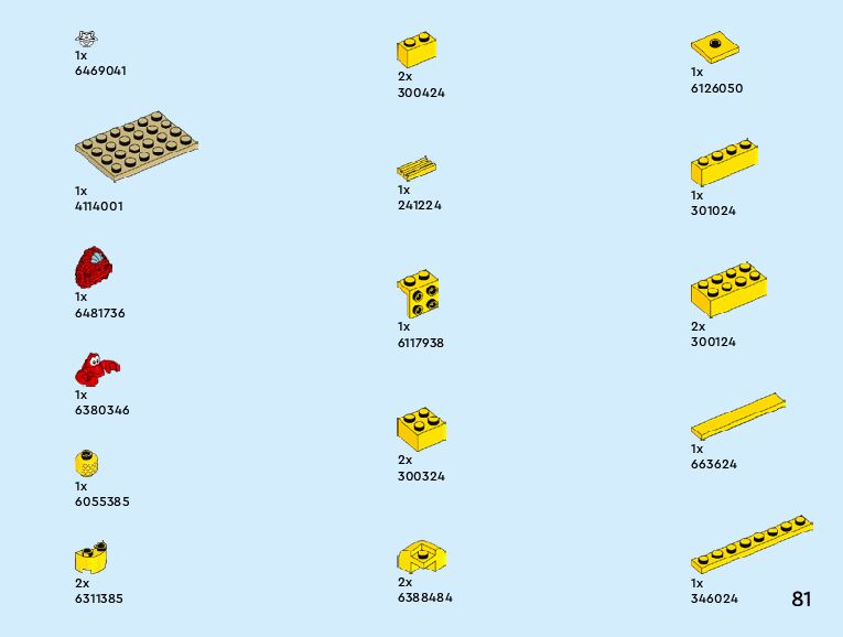 The assembly guide is prepared in a very understandable way for children and adult LEGO enthusiasts. A total of 84 picture galleries are shown, explaining the step-by-step construction stages for 1 different structures.