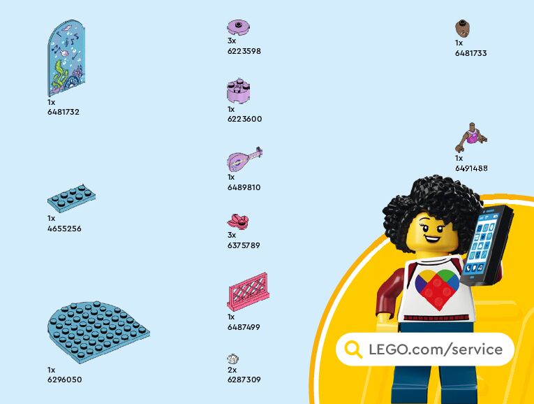 On this page you can find the original construction manual for the LEGO 43235 set. With the assembly manual you can easily learn how to build the 43235 Ariel's Music Stage step by step. The set was released in 2024.