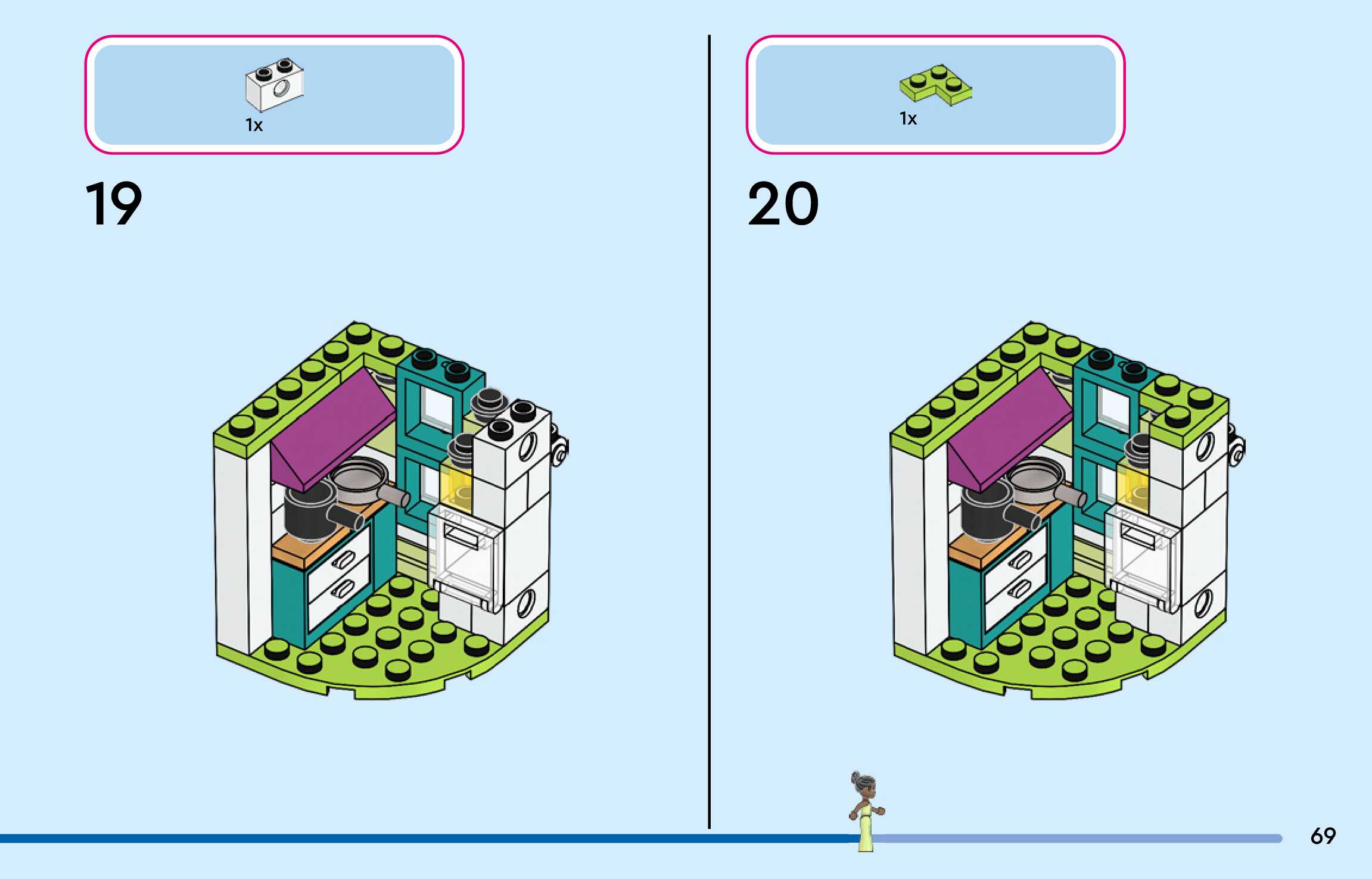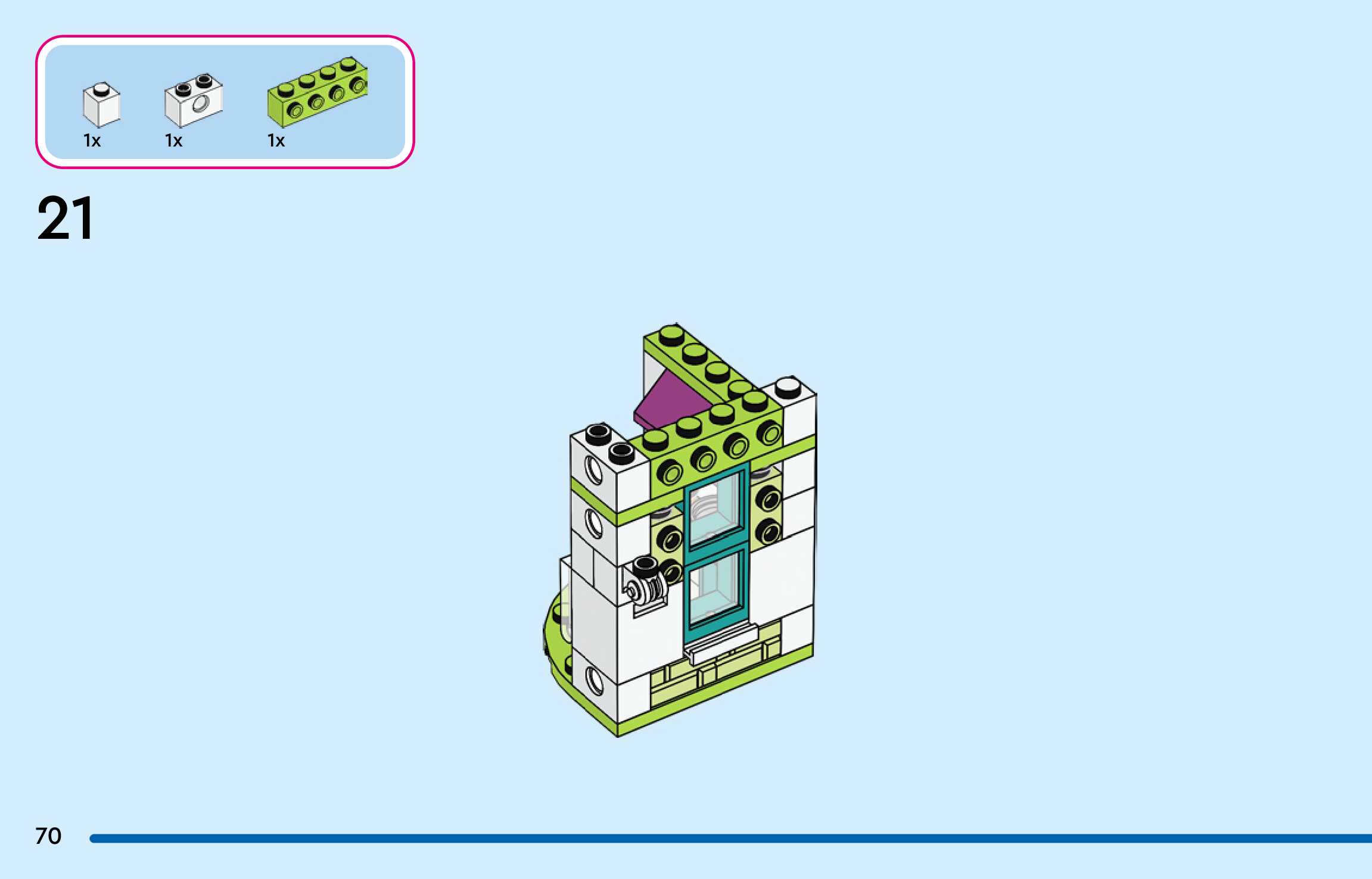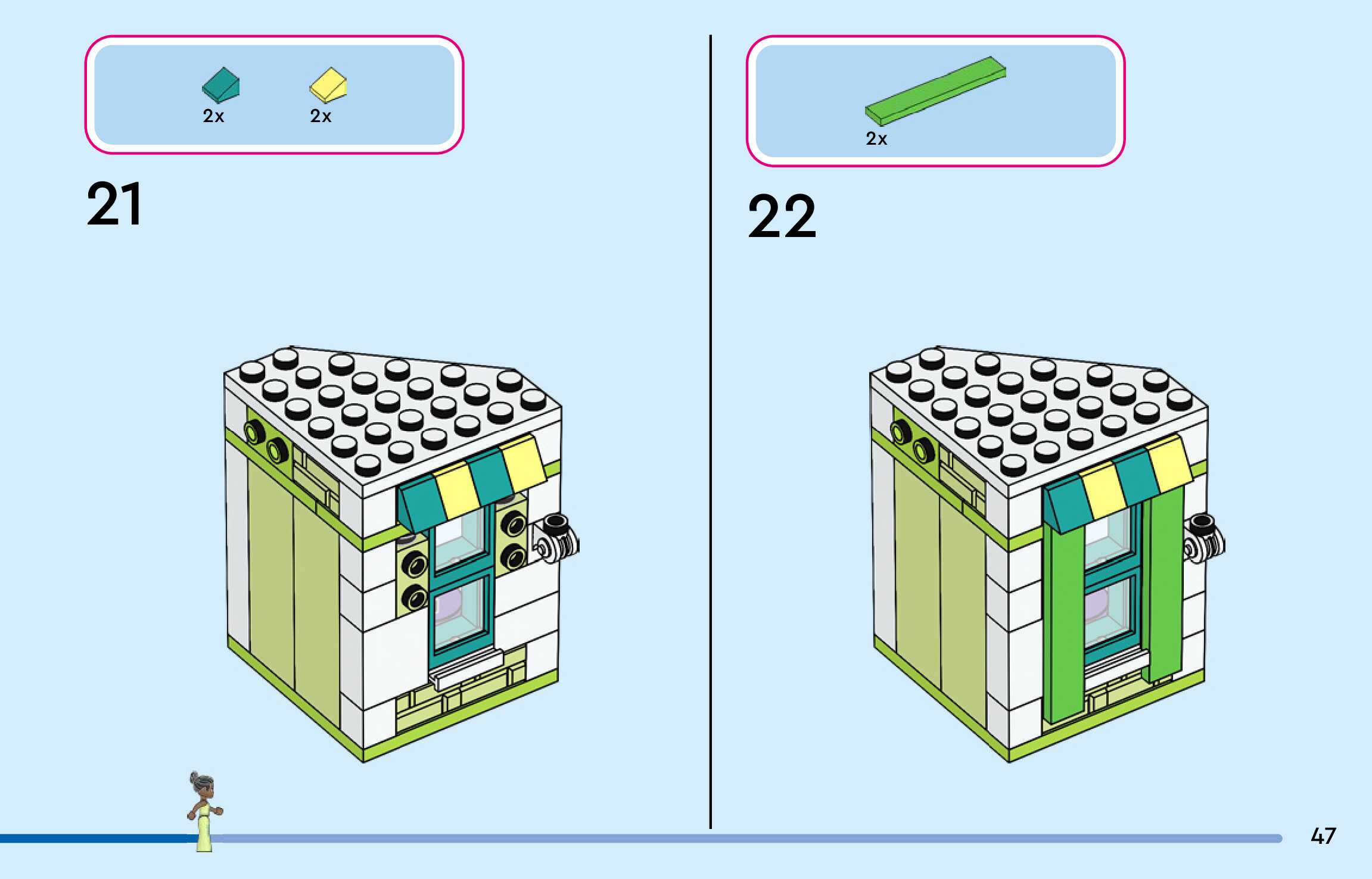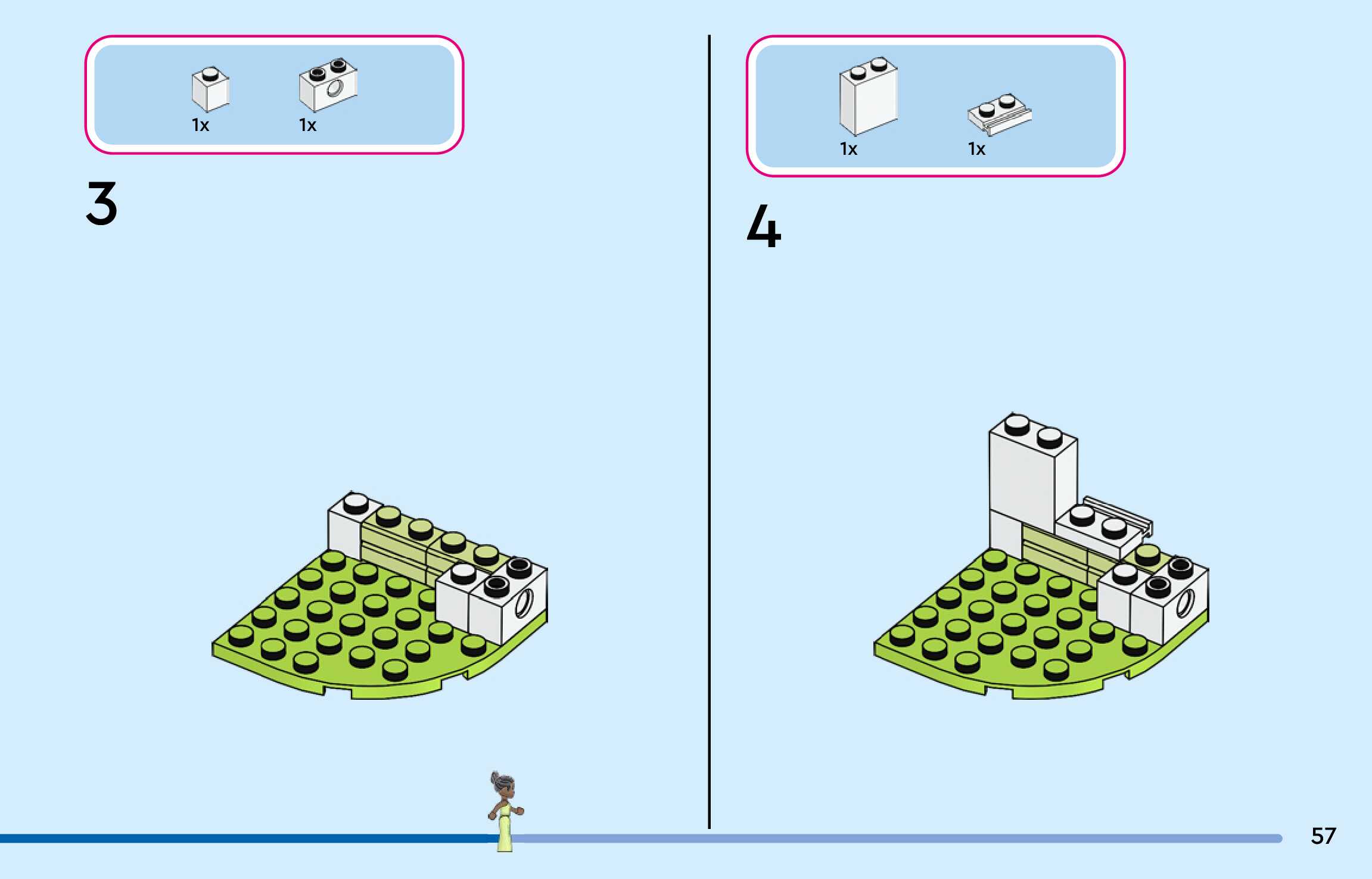 The assembly guide is prepared in a very understandable way for children and adult LEGO enthusiasts. A total of 300 picture galleries are shown, explaining the step-by-step construction stages for 4 different structures.