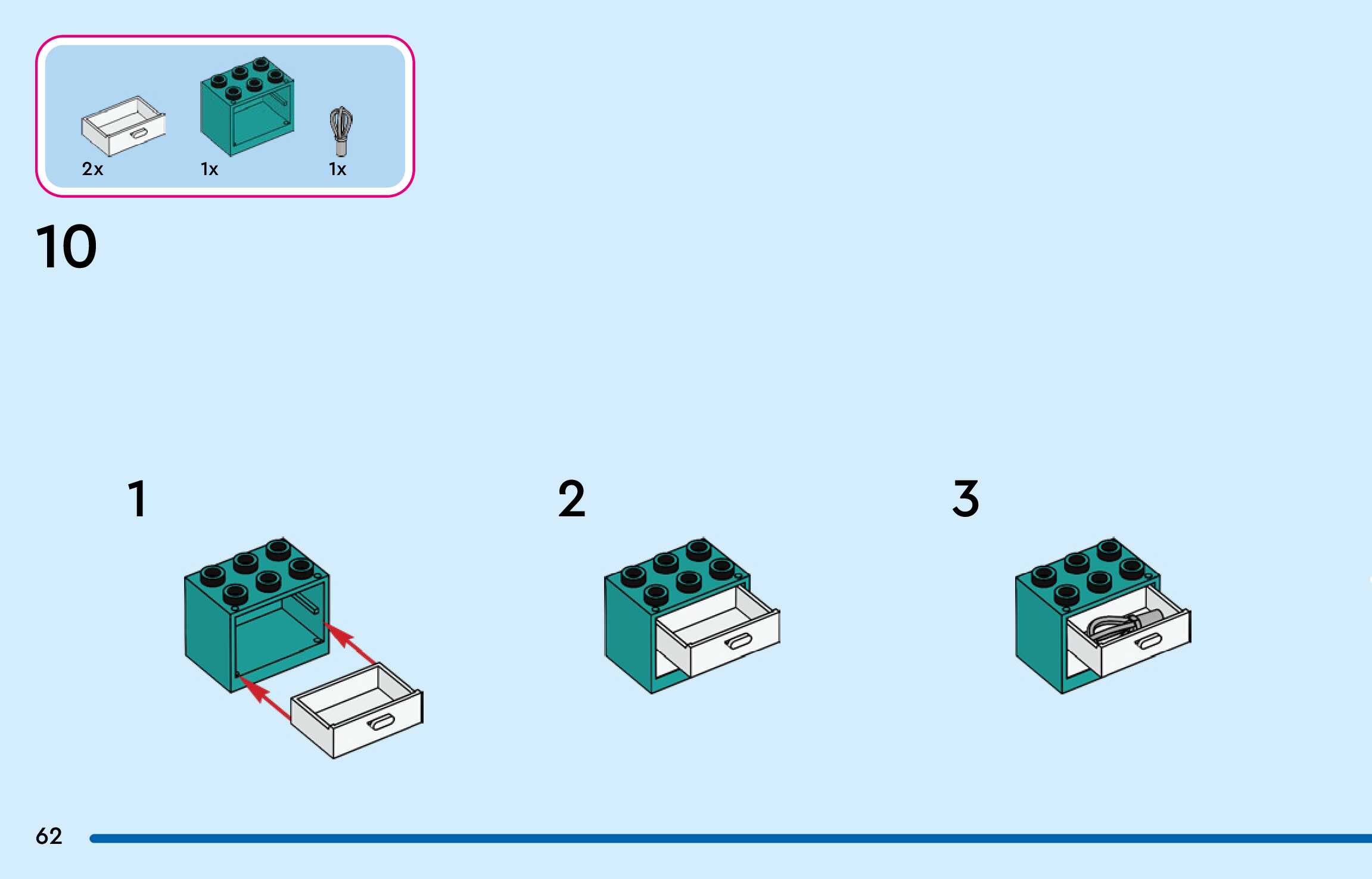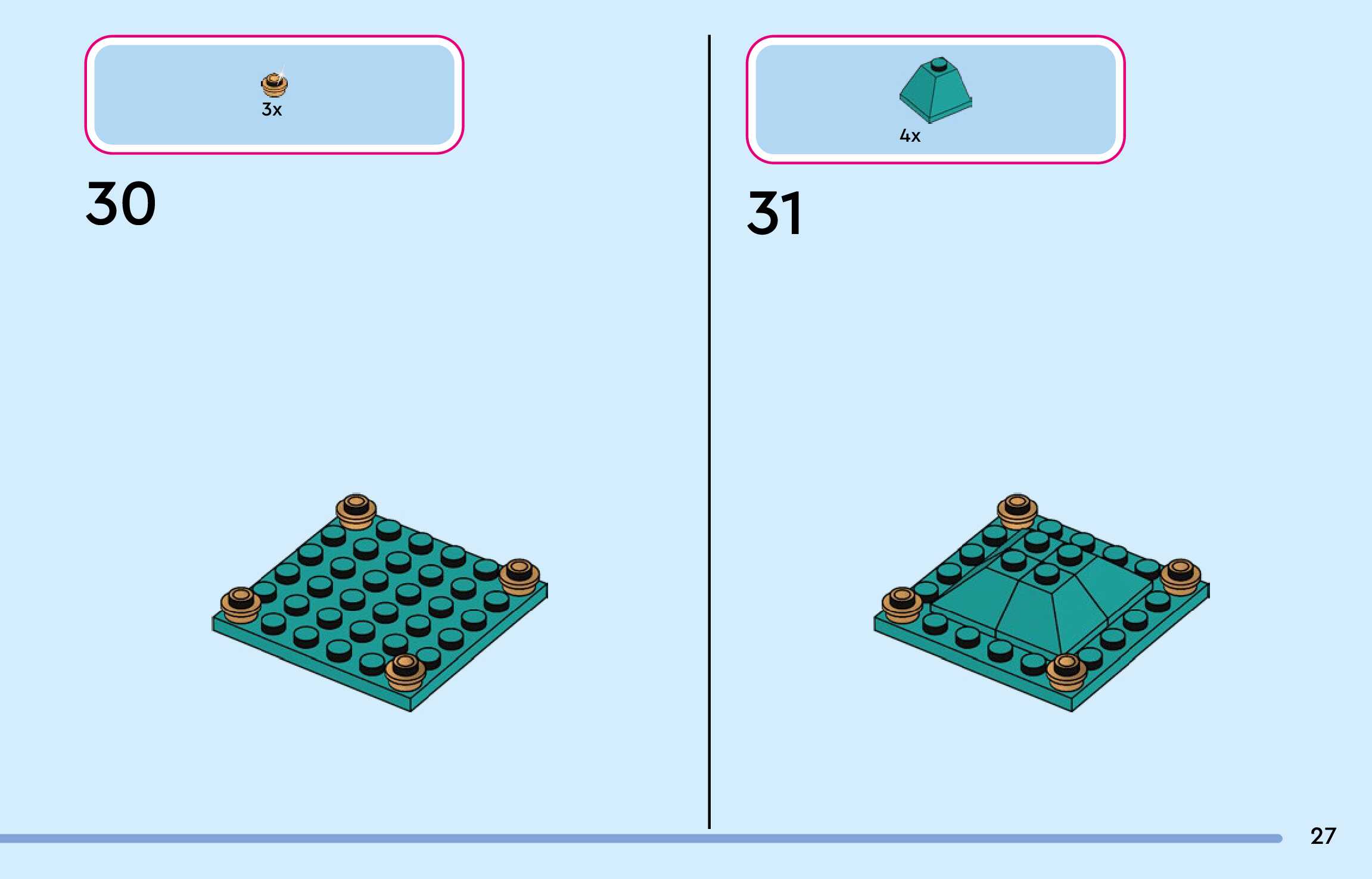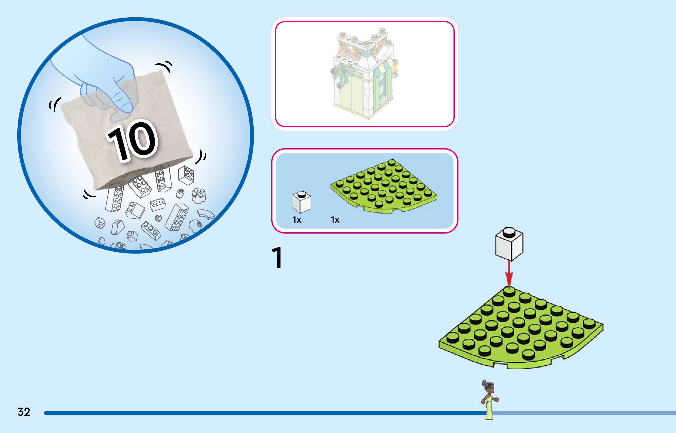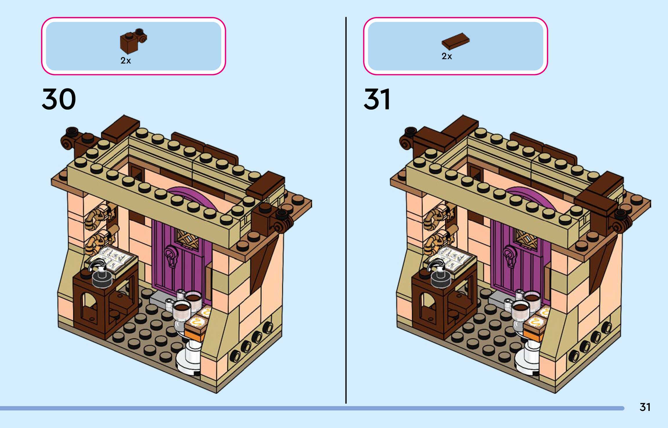 The assembly guide is prepared in a very understandable way for children and adult LEGO enthusiasts. A total of 300 picture galleries are shown, explaining the step-by-step construction stages for 4 different structures.