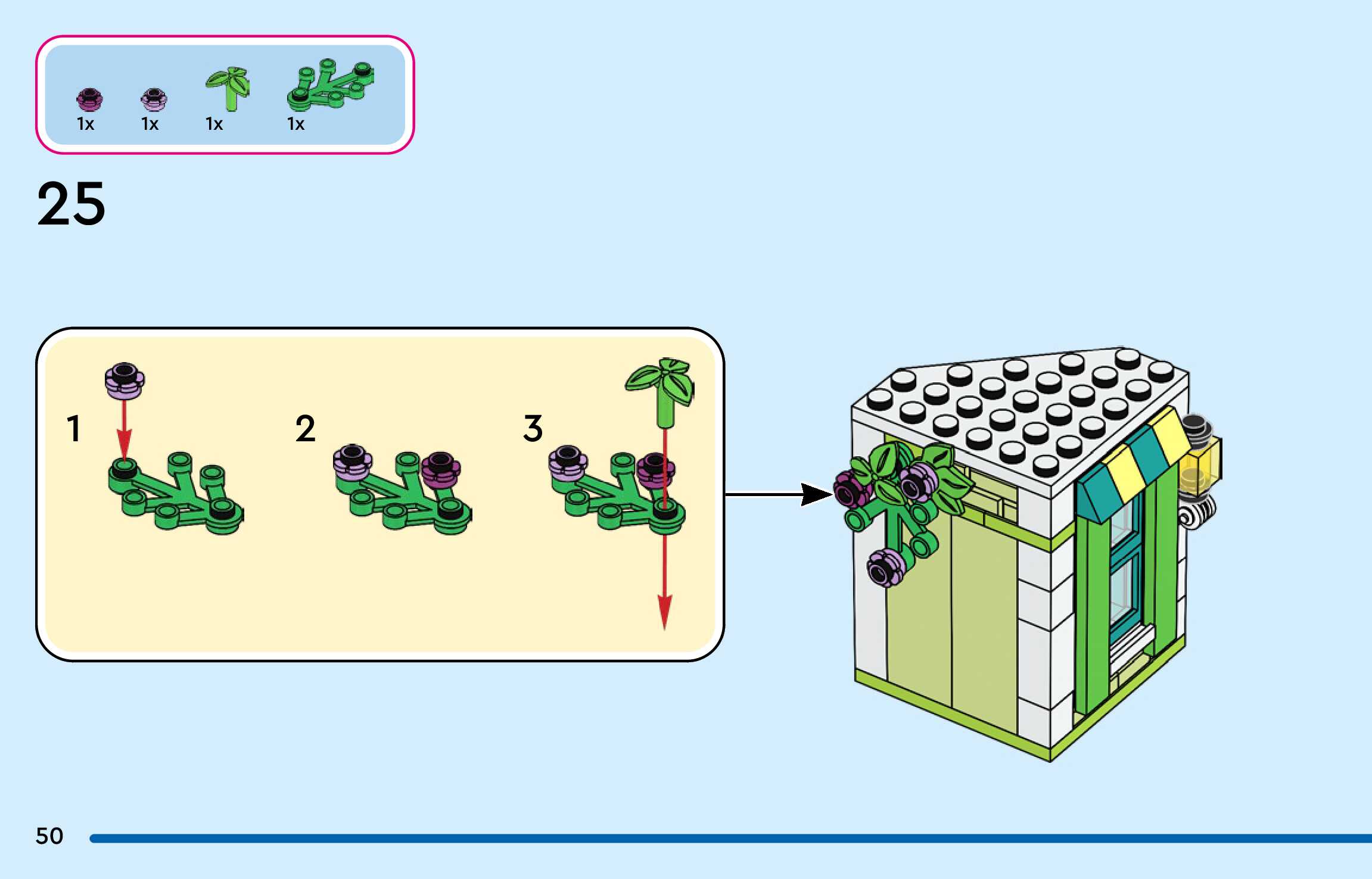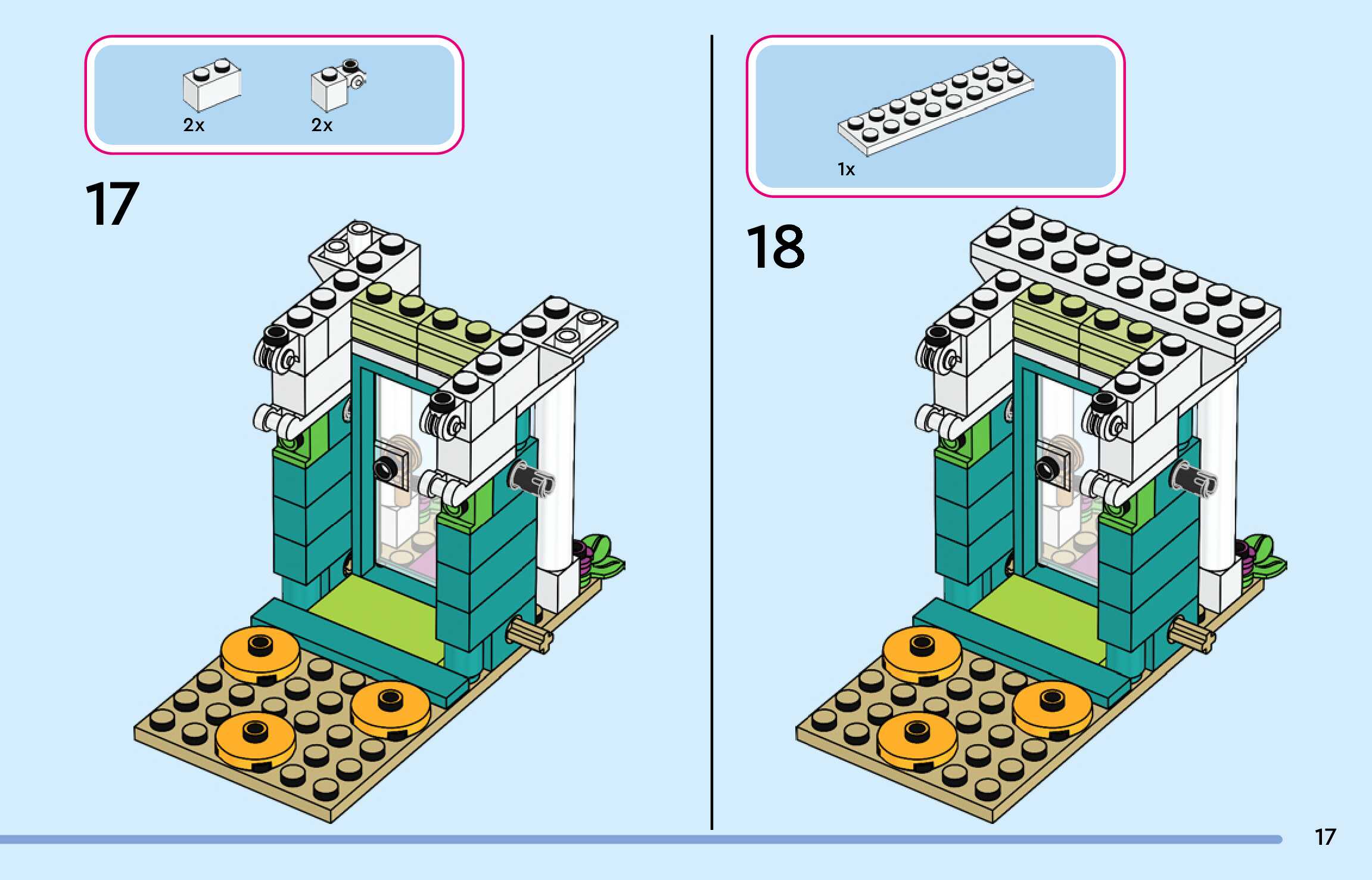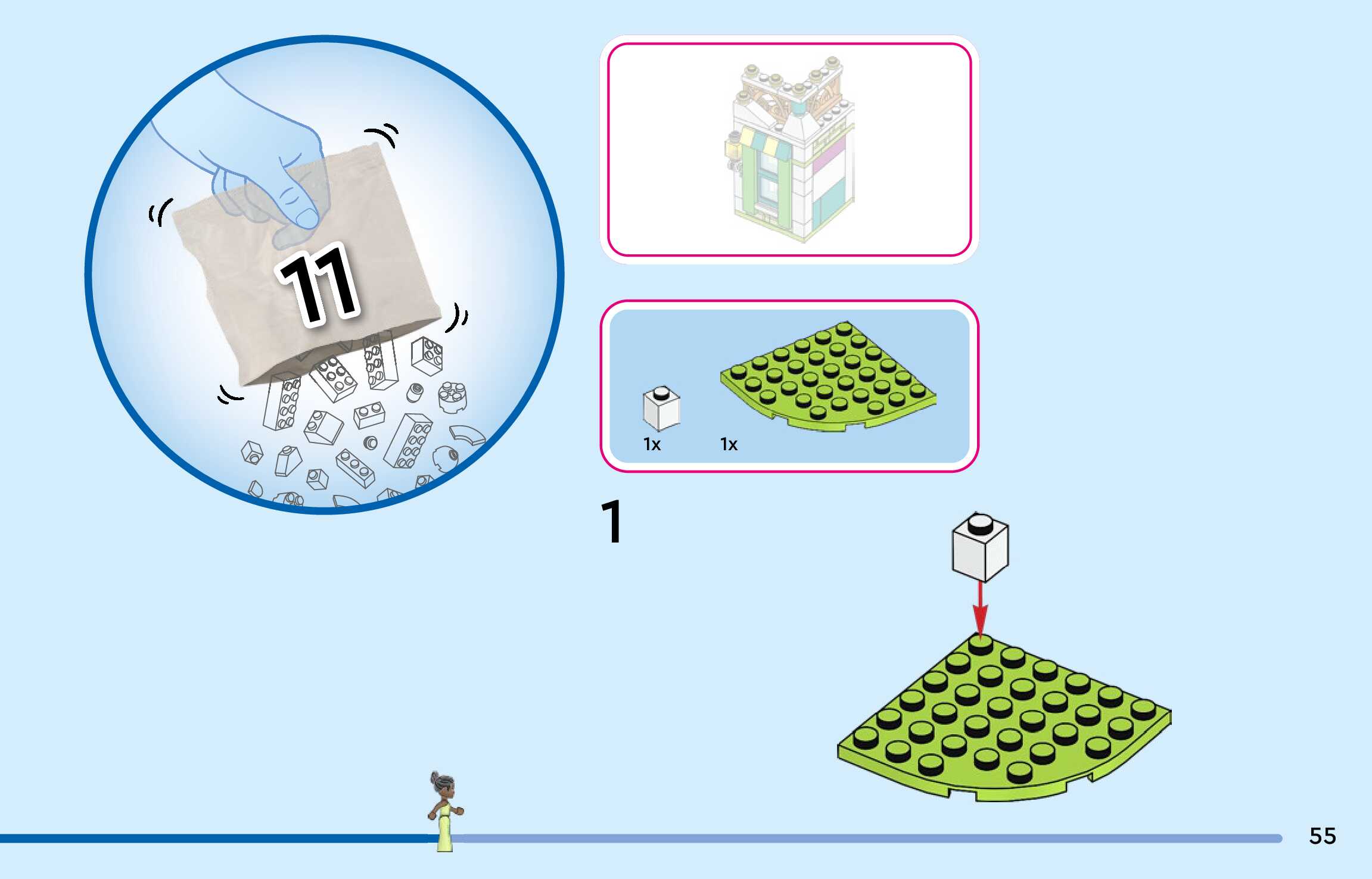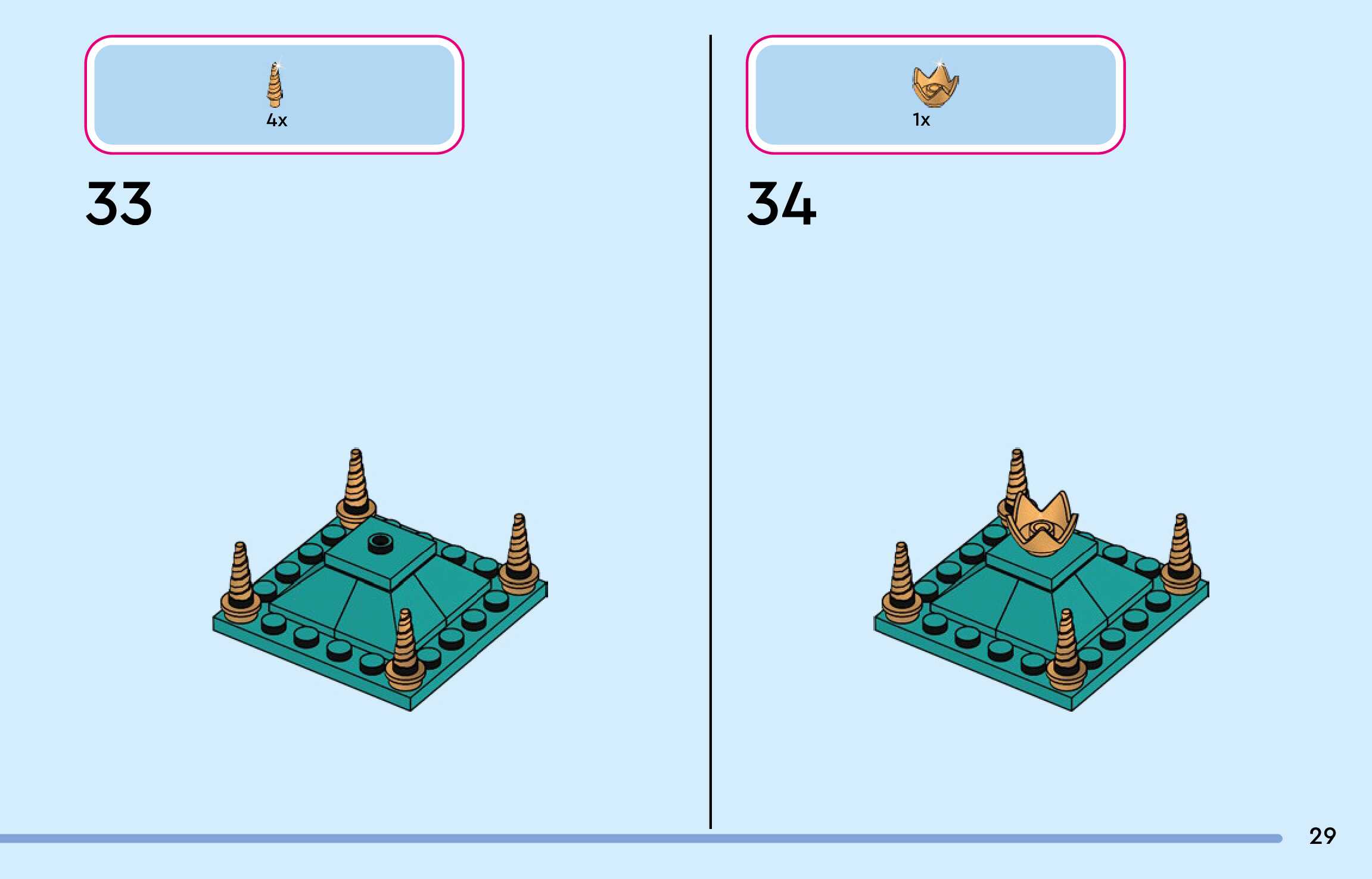The assembly guide is prepared in a very understandable way for children and adult LEGO enthusiasts. A total of 300 picture galleries are shown, explaining the step-by-step construction stages for 4 different structures.