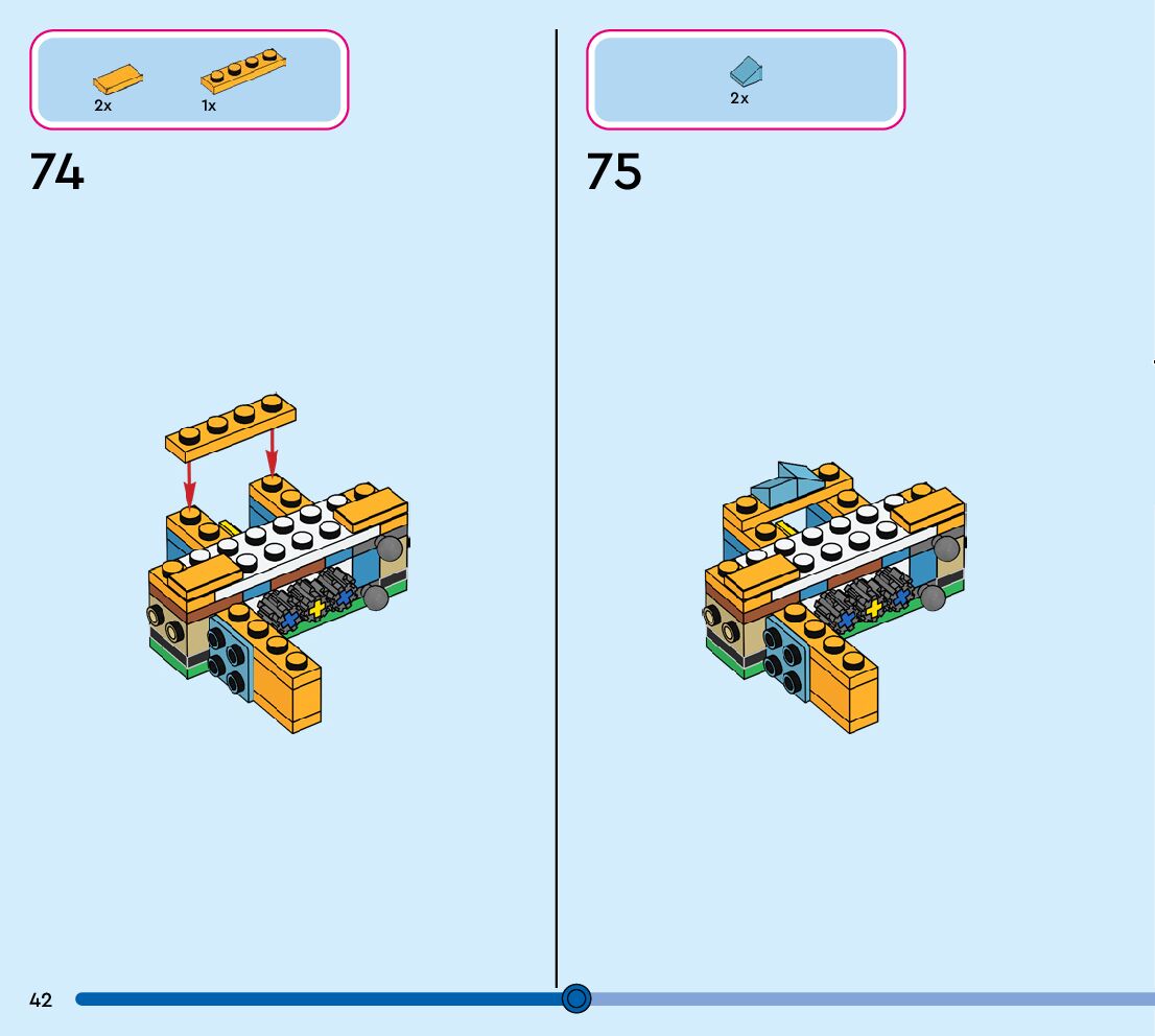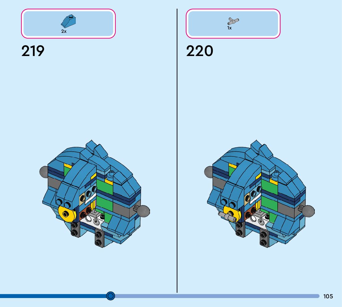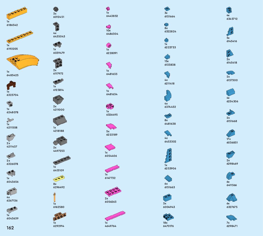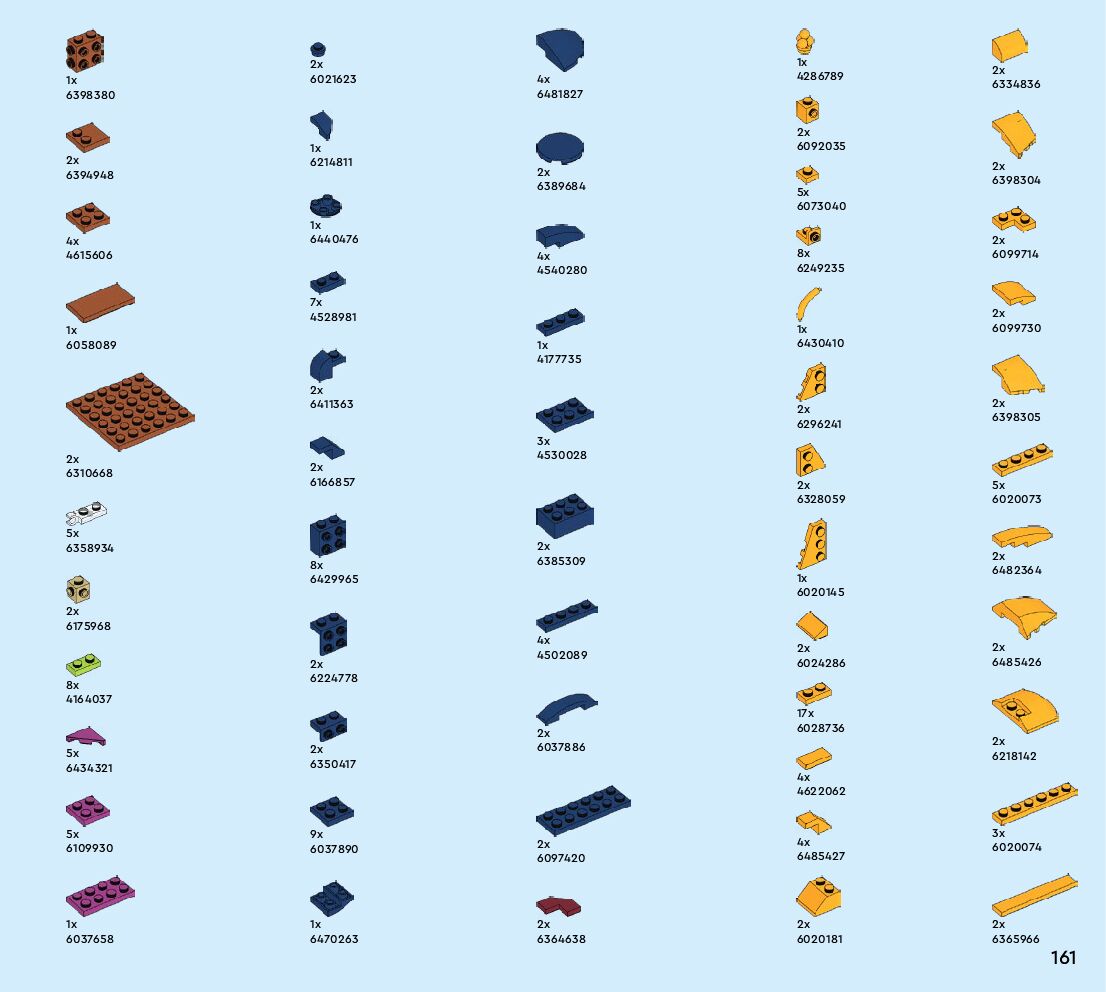 The assembly guide is prepared in a very understandable way for children and adult LEGO enthusiasts. A total of 164 picture galleries are shown, explaining the step-by-step construction stages for 1 different structures.