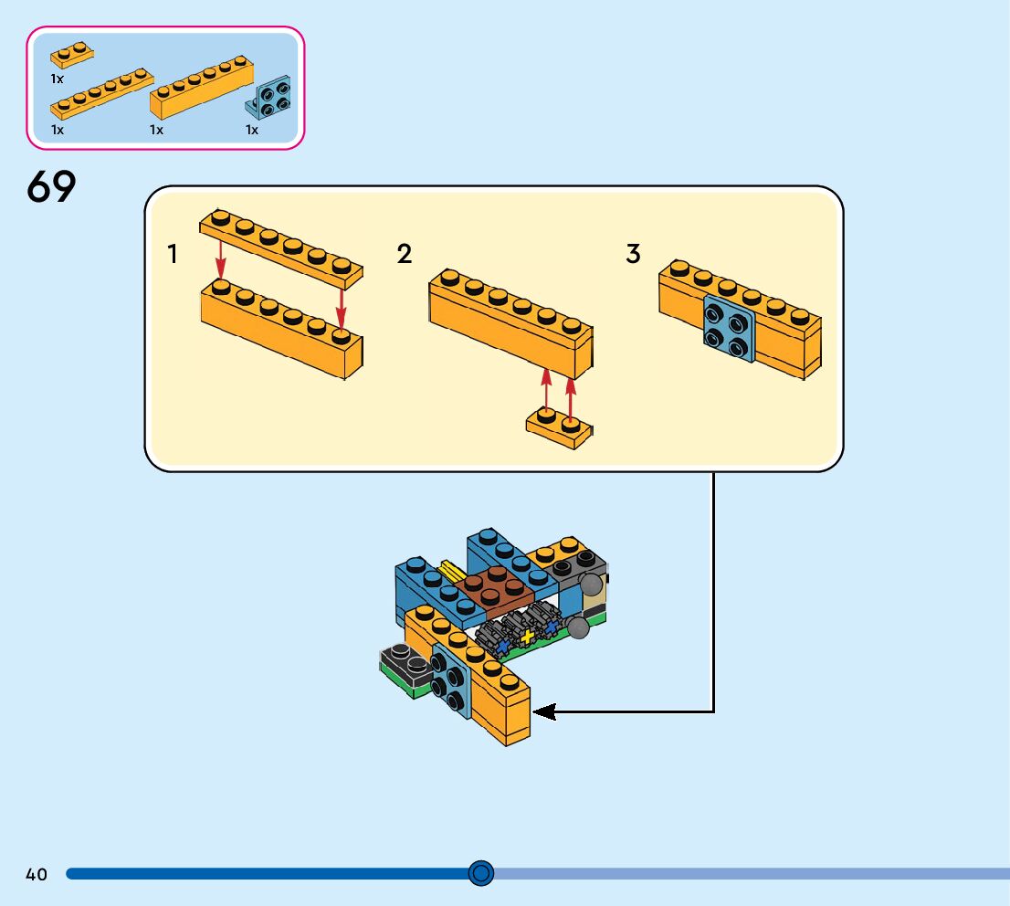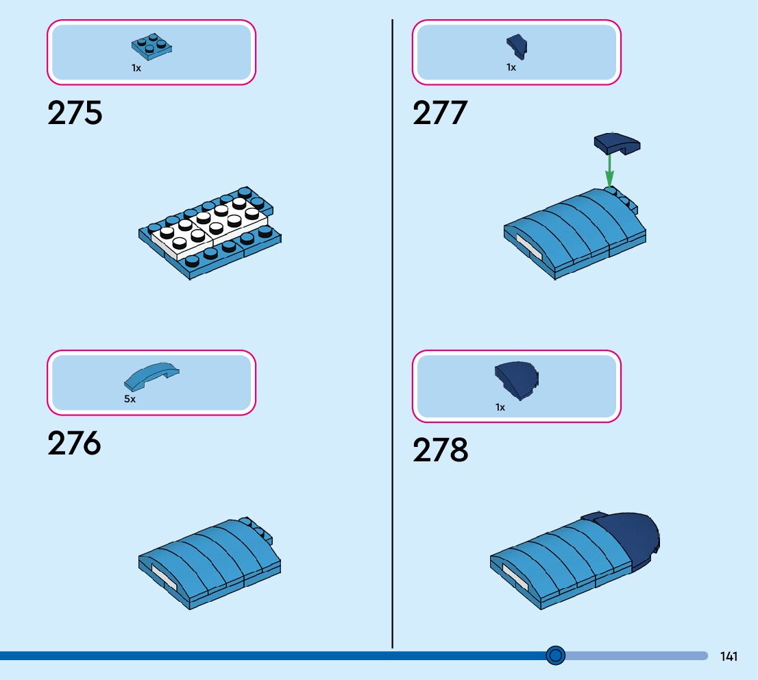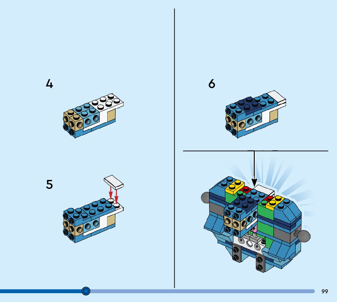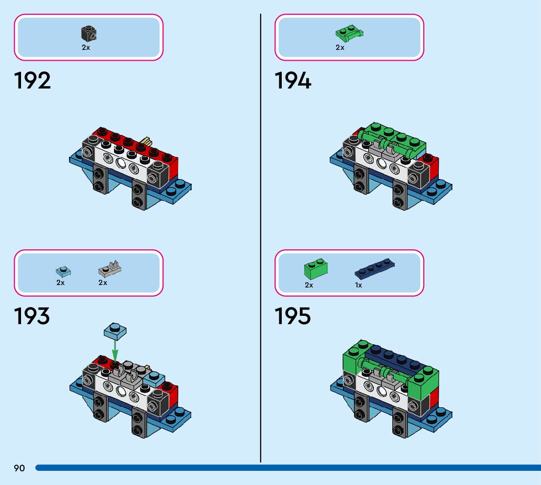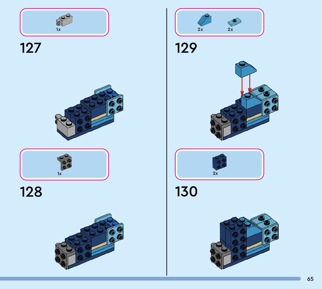 The assembly guide is prepared in a very understandable way for children and adult LEGO enthusiasts. A total of 164 picture galleries are shown, explaining the step-by-step construction stages for 1 different structures.