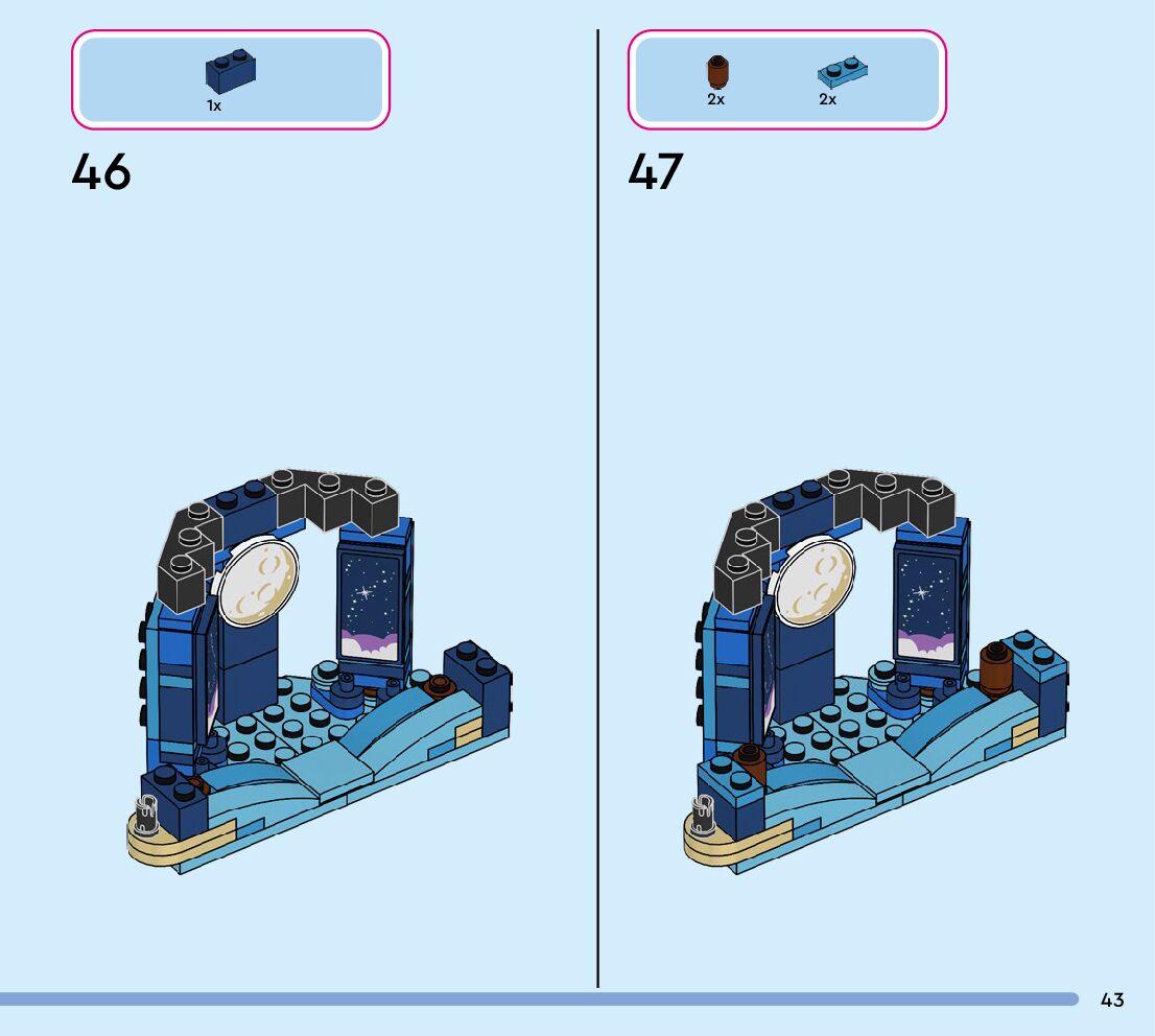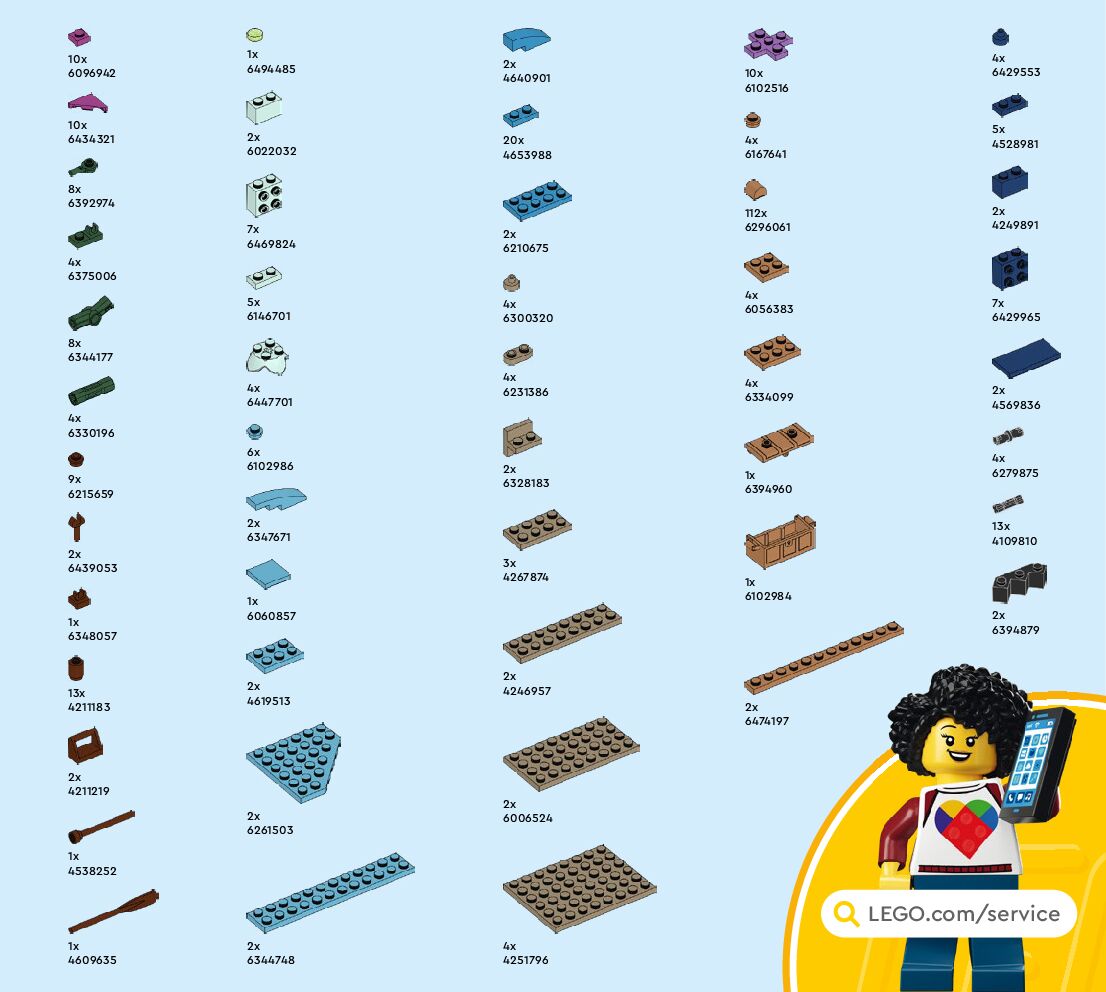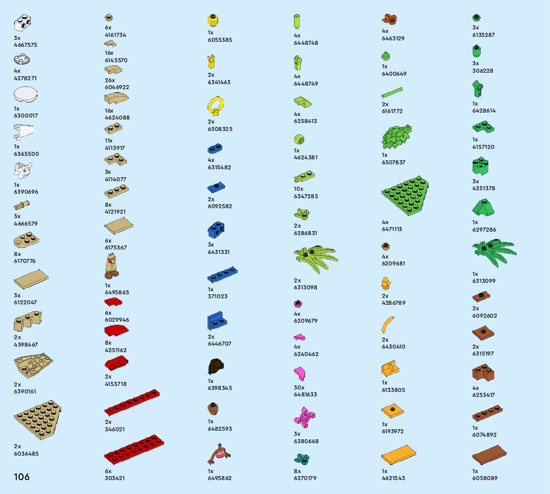 The assembly guide is prepared in a very understandable way for children and adult LEGO enthusiasts. A total of 108 picture galleries are shown, explaining the step-by-step construction stages for 1 different structures.